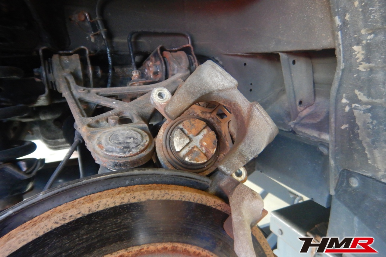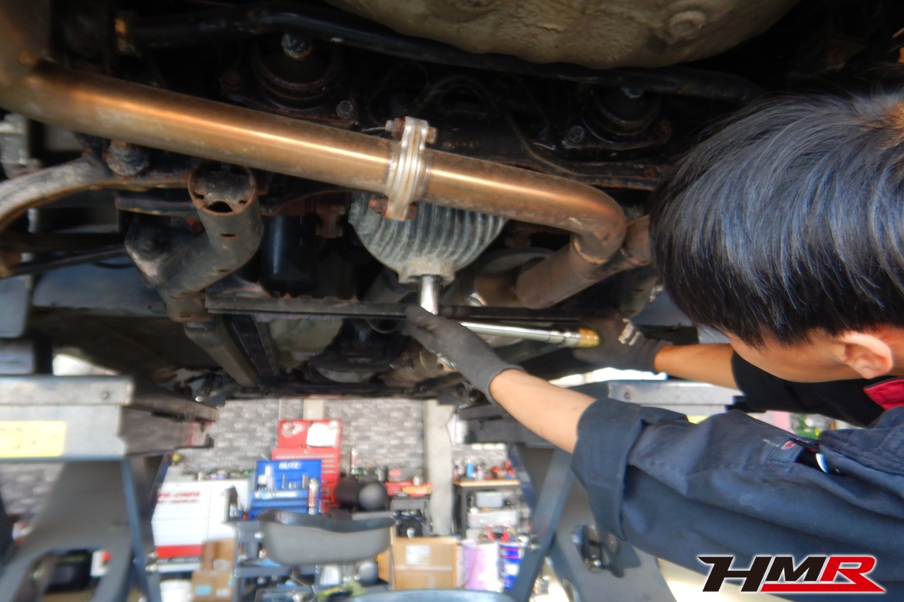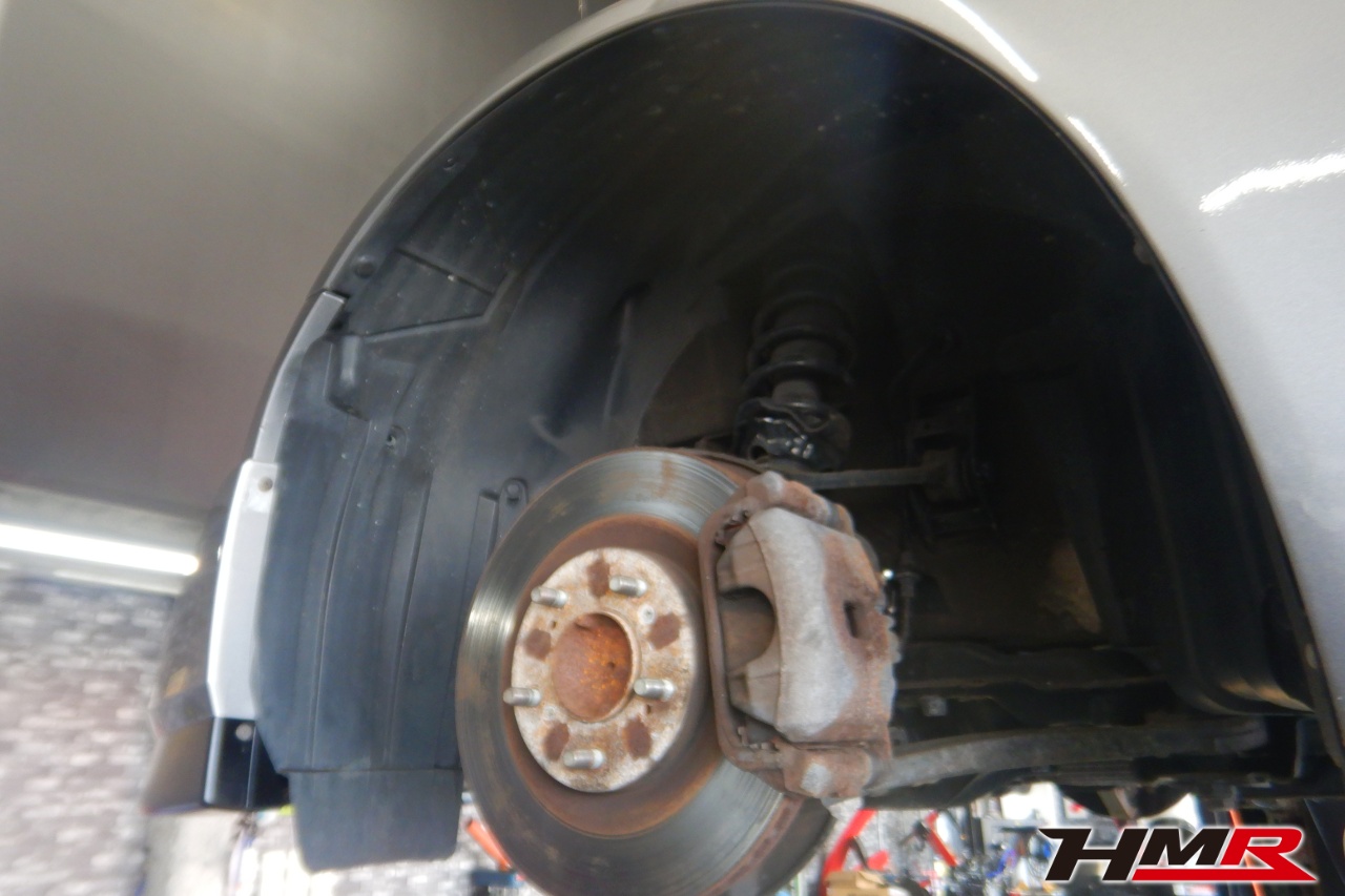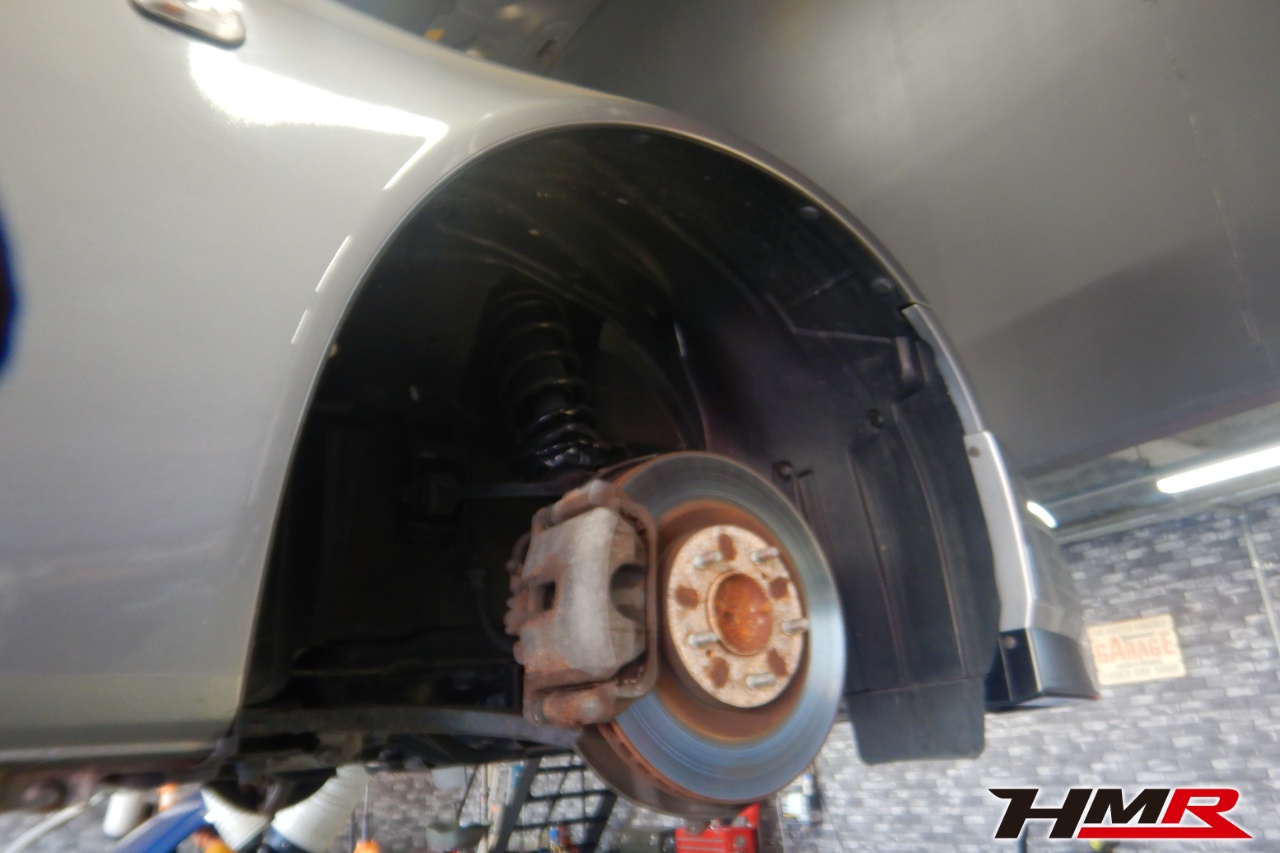 ハブベアリング・ボールジョイント、アーム・リンク類のガタ、ブッシュ・ブーツ類の劣化、エンジン・ミッション・デフからのオイル漏れと各マウント類、タイヤ溝の残量、空気圧の点検を行いました。前後左右スタビリンク交換、左右タイロッドエンドブーツ交換、左右フロントロアアームブーツ交換を行いました。