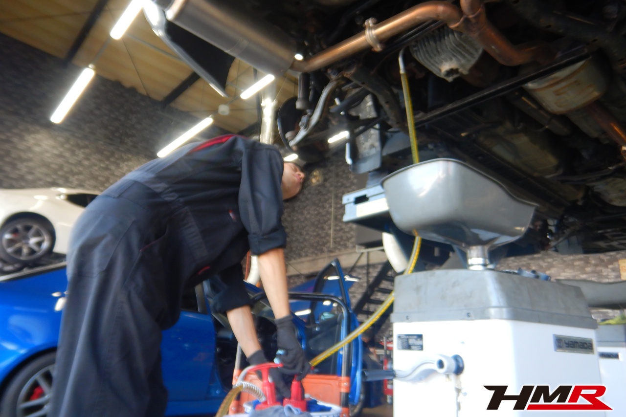 HMR(エイチエムアール)の秋山です。今回は無限マフラー 黒革シート装着のS2000(AP2)タイプSの納車前点検整備を行いました。担当メカニックは手代木です。