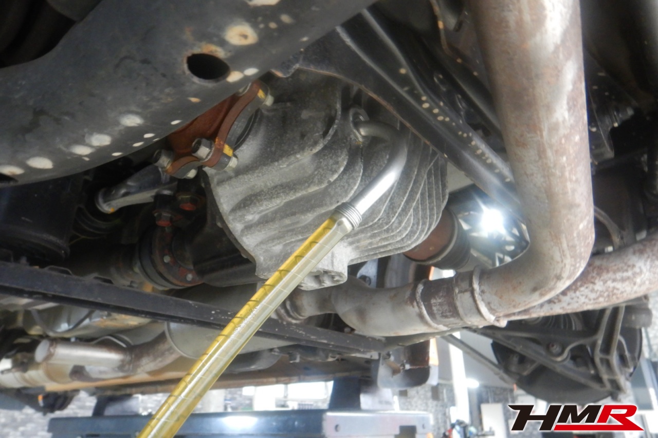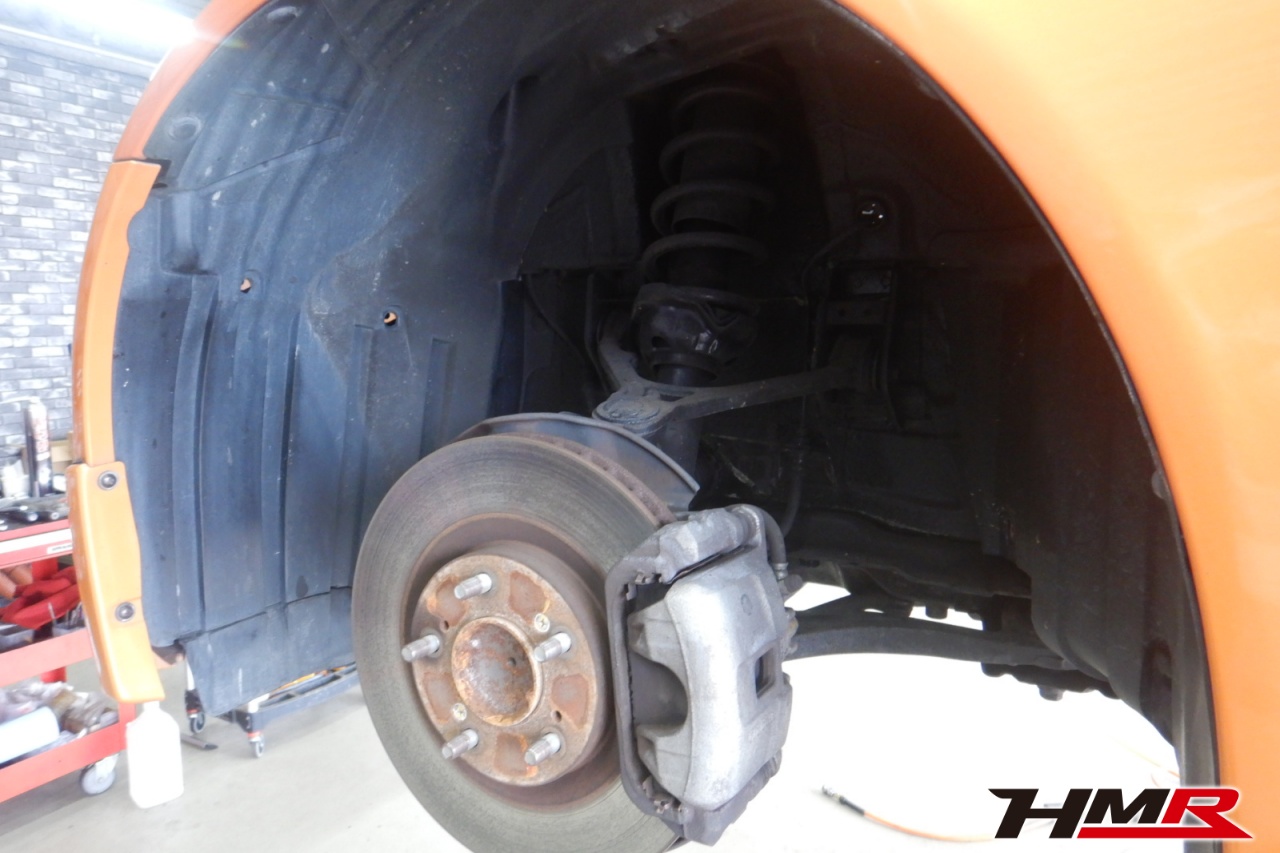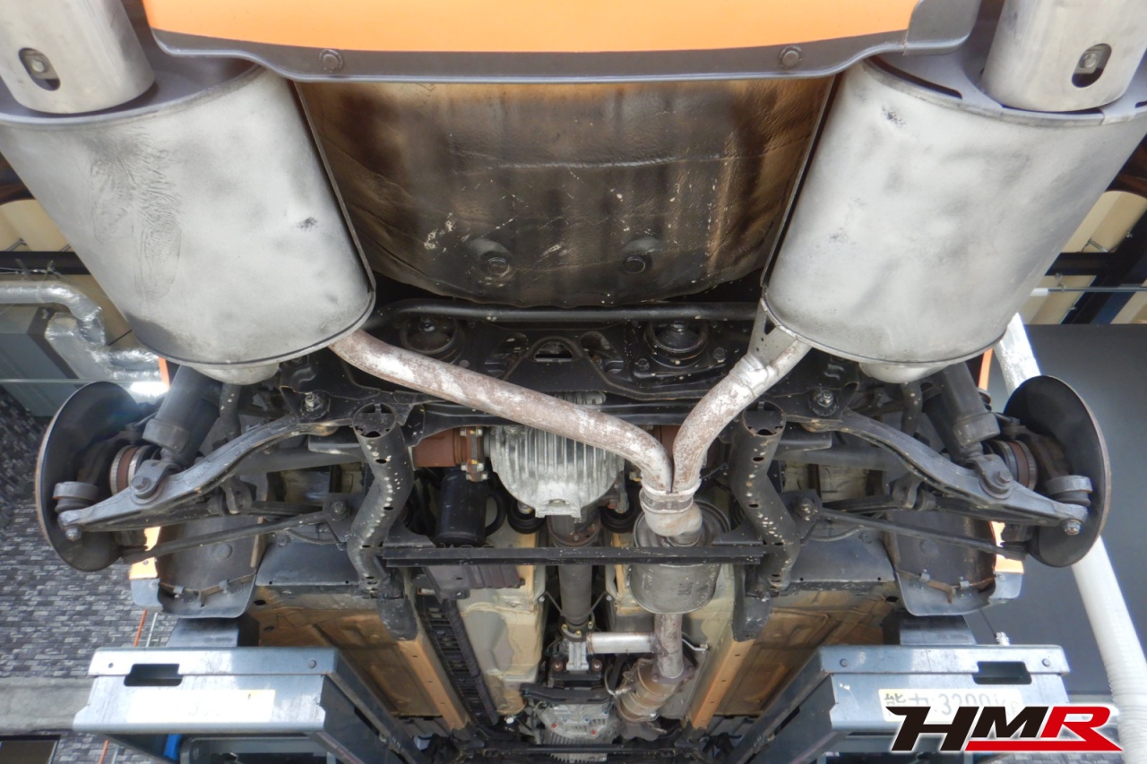 ハブベアリング・ボールジョイント、アーム・リンク類のガタ、ブッシュ・ブーツ類の劣化、エンジン・ミッション・デフからのオイル漏れと各マウント類、タイヤ溝の残量、空気圧の点検を行いました。特に問題ありませんでした。