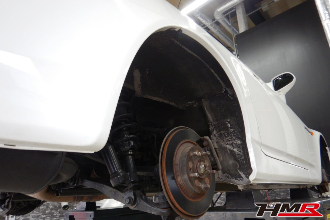 ハブベアリング・ボールジョイント、アーム・リンク類のガタ、ブッシュ・ブーツ類の劣化、エンジン・ミッション・デフからのオイル漏れと各マウント類、タイヤ溝の残量、空気圧の点検しました。前後スタビリンクブーツが切れていましたので交換しました。また左右フロントロアアームブーツにも小さなヒビが見られましたので今後交換することをおすすめします。