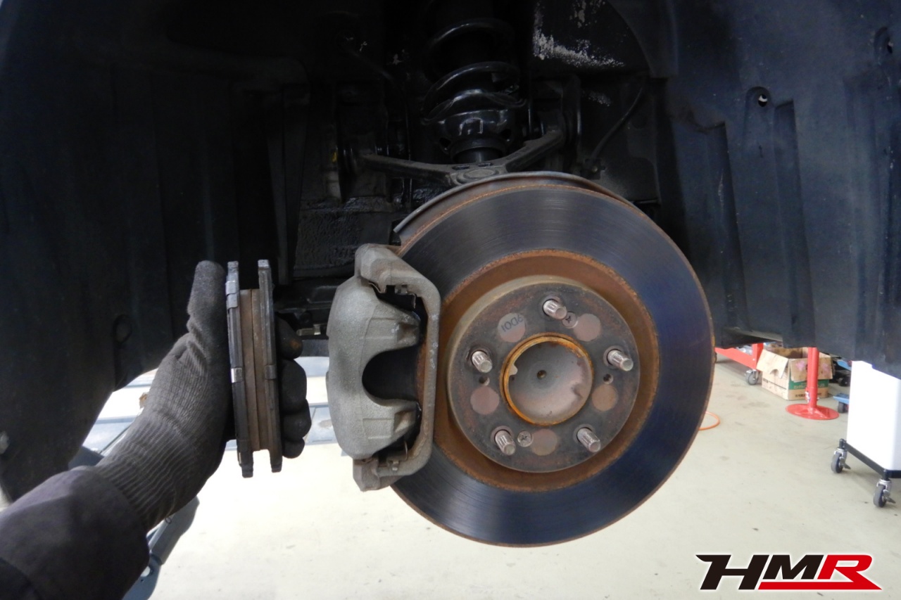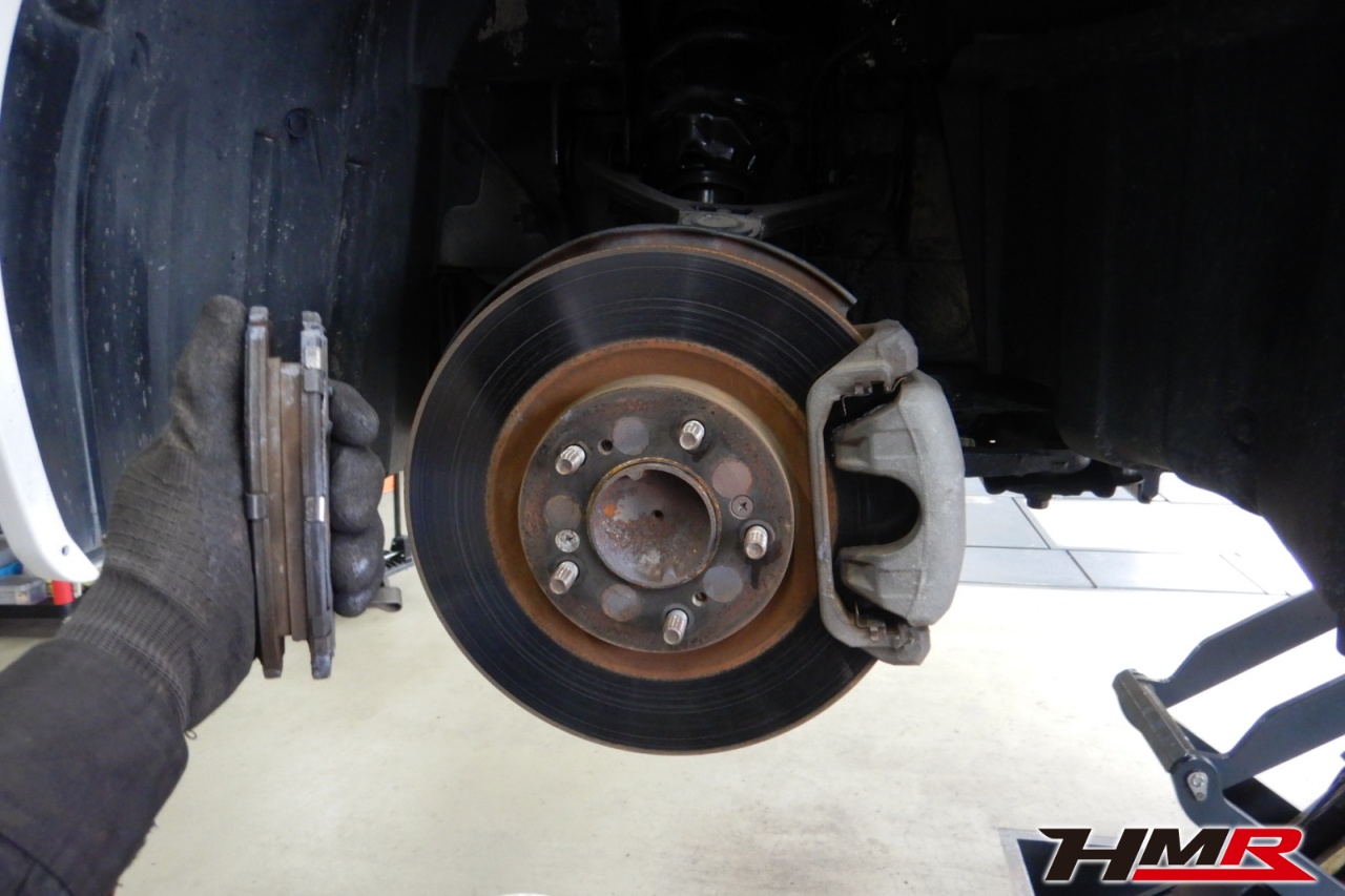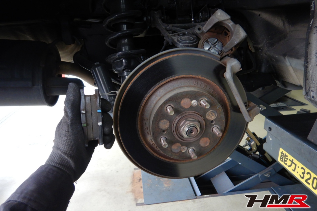 ブレーキキャリパーシール・キャリパーピストン、パッドの残量、ブレーキホースの劣化、ブレーキディスクローターの摩耗をチェックしました。ブレーキパッドの残量はおおよそフロント4.3mm・リア8.1mmでした。