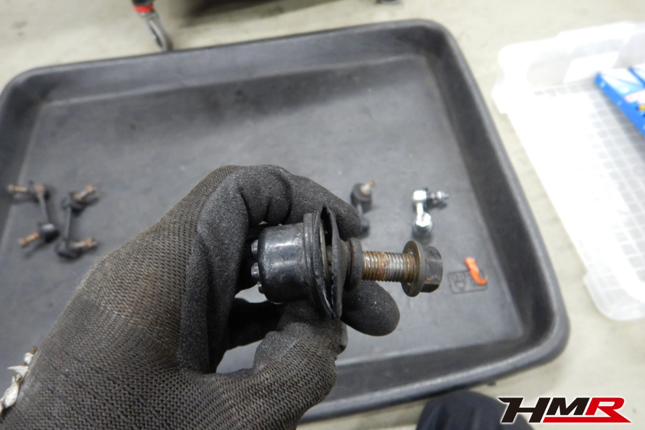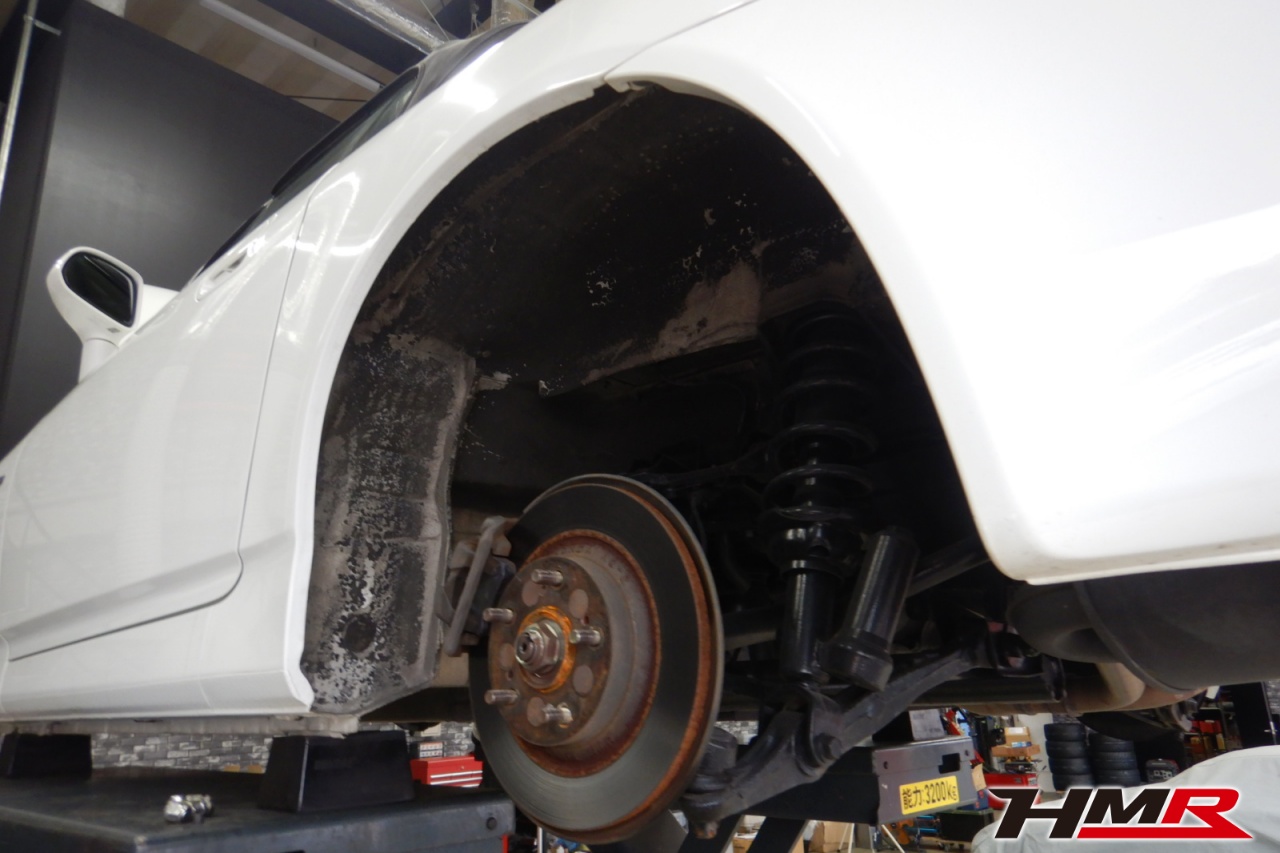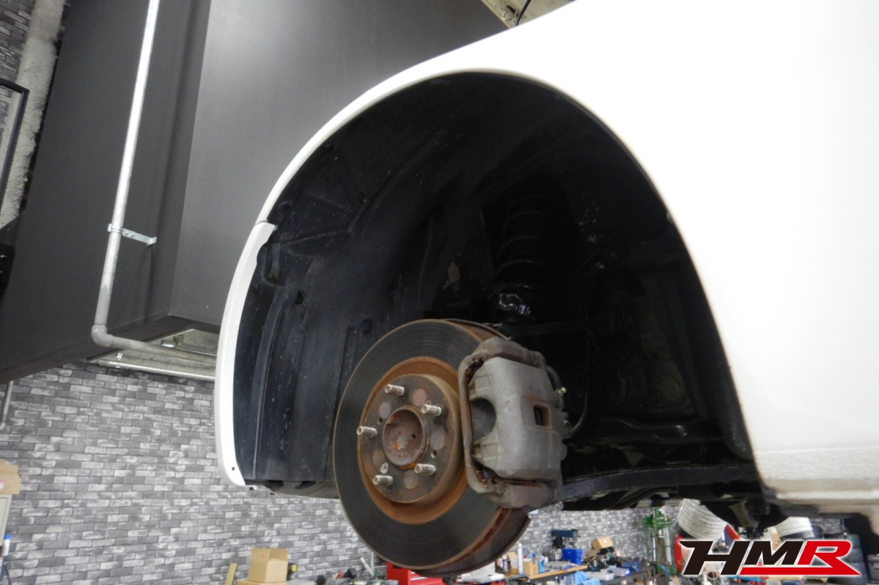 ハブベアリング・ボールジョイント、アーム・リンク類のガタ、ブッシュ・ブーツ類の劣化、エンジン・ミッション・デフからのオイル漏れと各マウント類、タイヤ溝の残量、空気圧の点検しました。前後スタビリンクブーツが切れていましたので交換しました。また左右フロントロアアームブーツにも小さなヒビが見られましたので今後交換することをおすすめします。