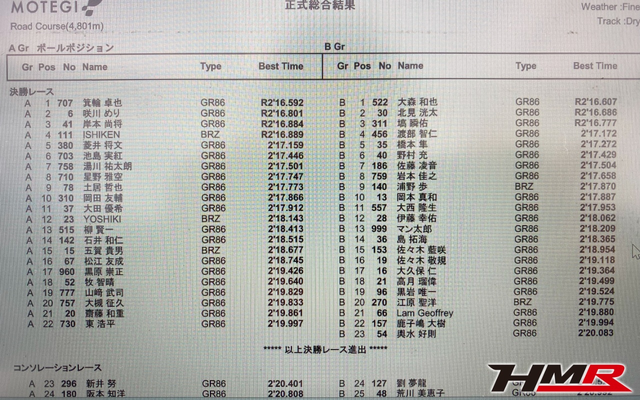 2024 GR86/BRZ ワンメイクレースもてぎラウンドにスポット参戦してきました