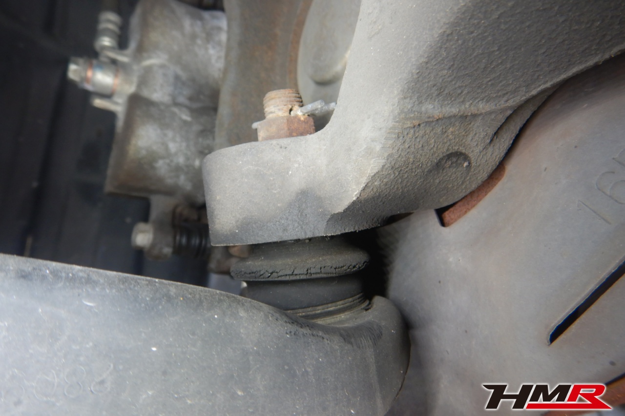 ハブベアリング・ボールジョイント、アーム・リンク類のガタ、ブッシュ・ブーツ類の劣化、エンジン・ミッション・デフからのオイル漏れと各マウント類、タイヤ溝の残量、空気圧の点検を行いました。左側フロントロアアームブーツが切れていましたので交換しました。
