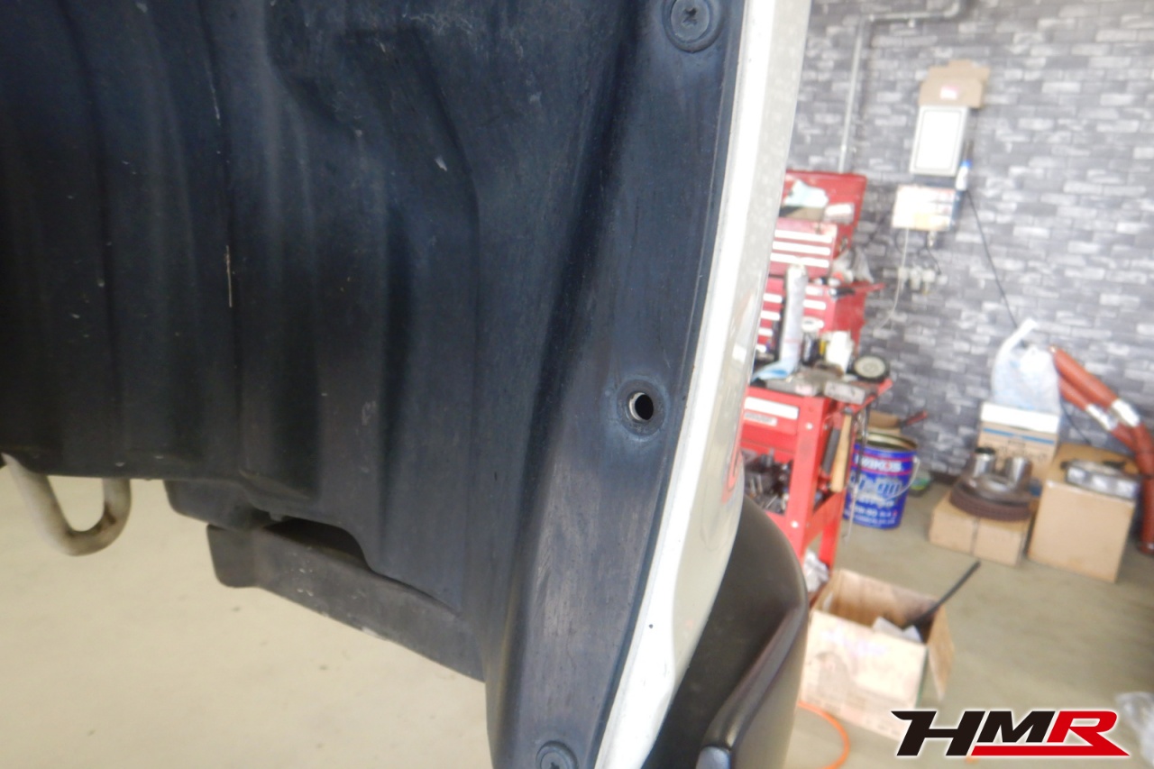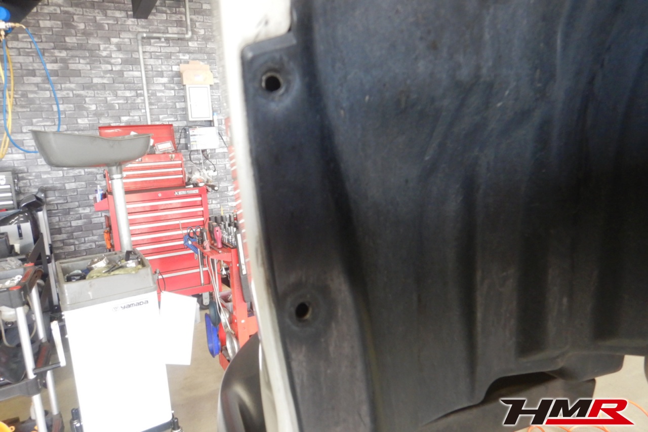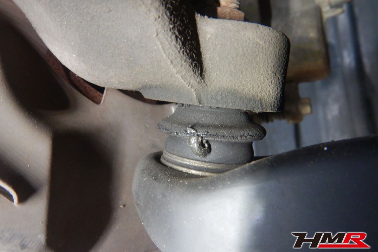 ハブベアリング・ボールジョイント、アーム・リンク類のガタ、ブッシュ・ブーツ類の劣化、エンジン・ミッション・デフからのオイル漏れと各マウント類、タイヤ溝の残量、空気圧の点検を行いました。左側フロントロアアームブーツが切れていましたので交換しました。