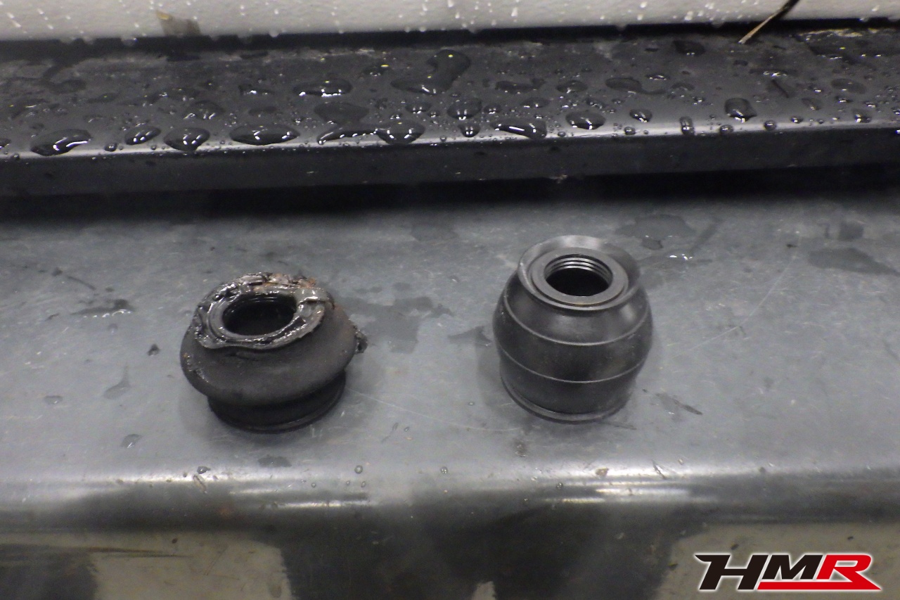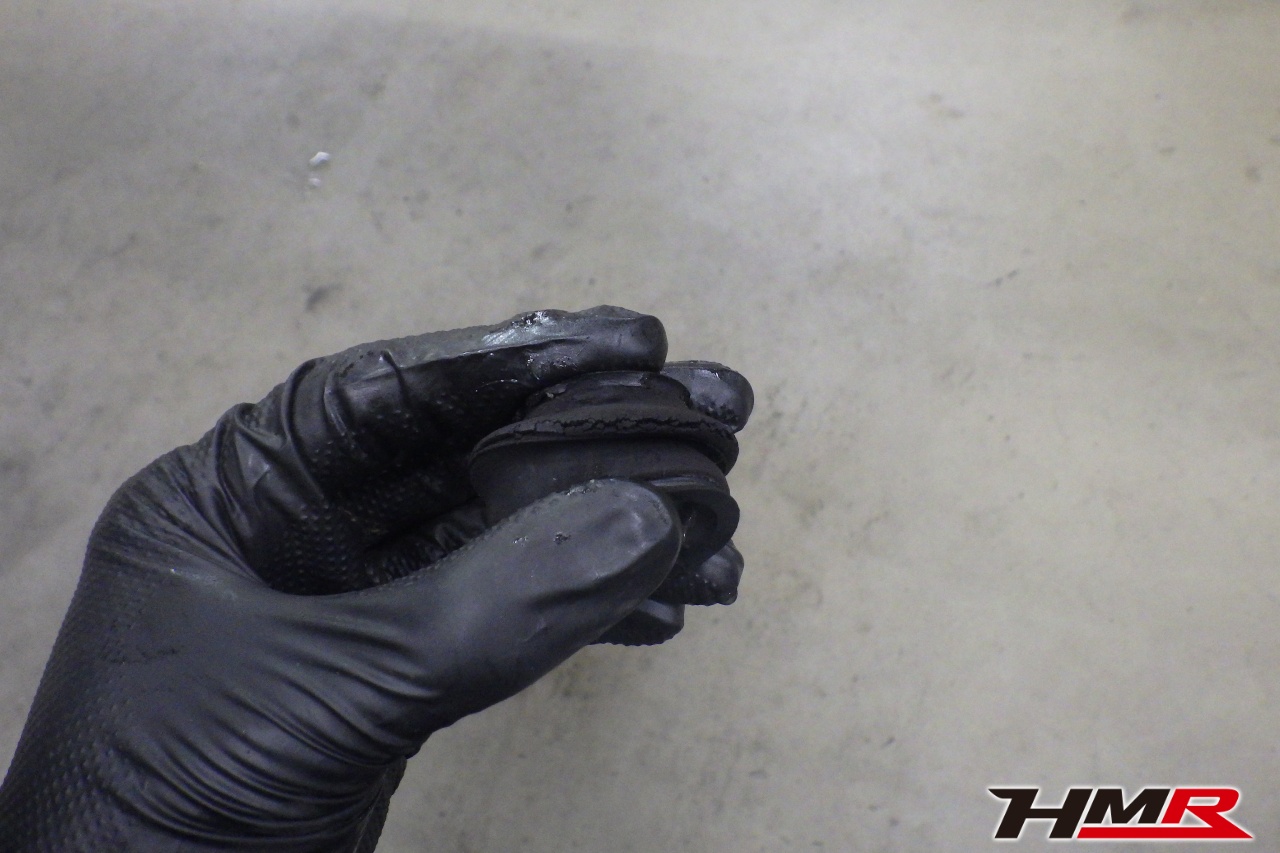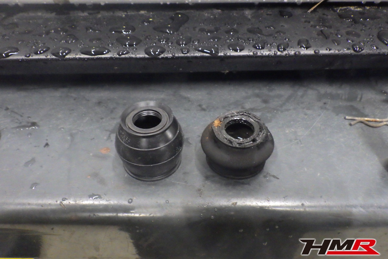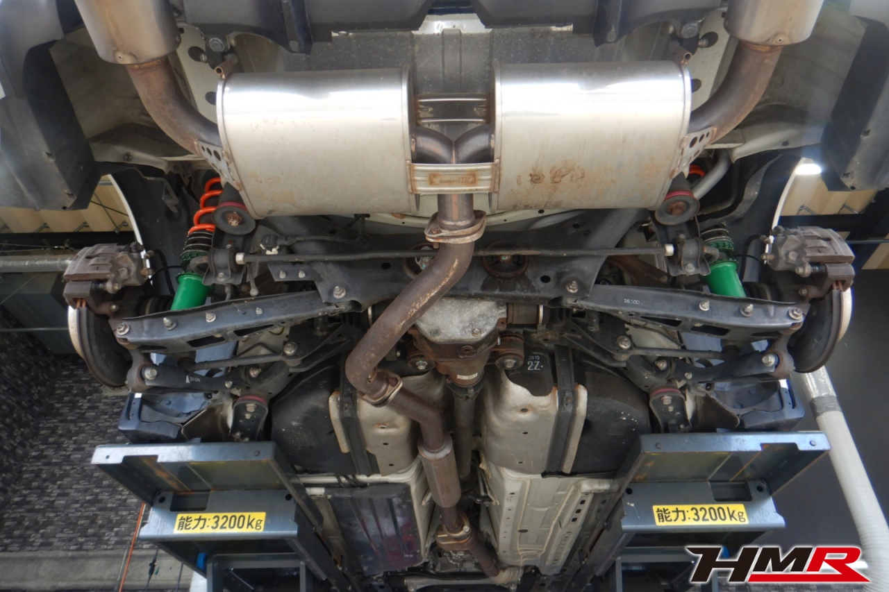 ハブベアリング・ボールジョイント、アーム・リンク類のガタ、ブッシュ・ブーツ類の劣化、エンジン・ミッション・デフからのオイル漏れと各マウント類、タイヤ溝の残量、空気圧の点検を行いました。左側フロントロアアームブーツが切れていましたので交換しました。