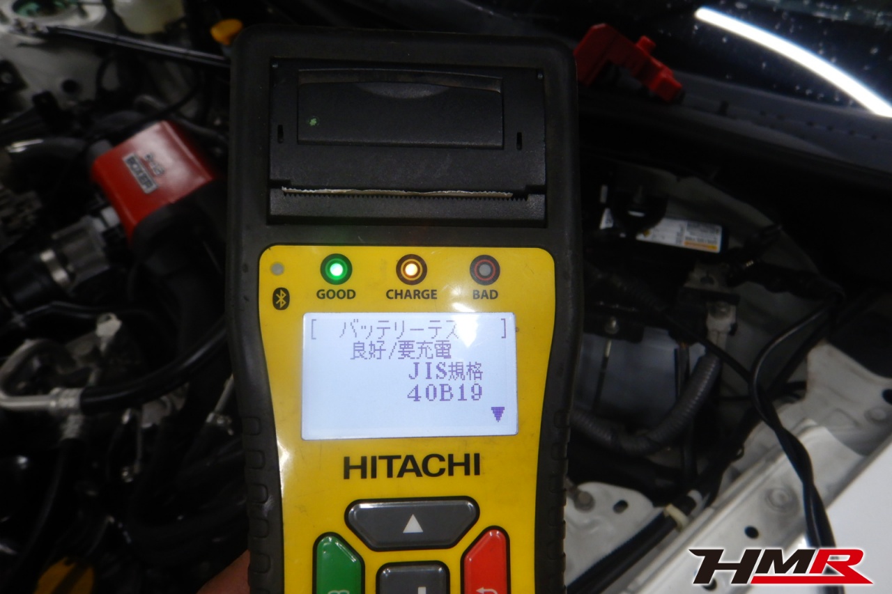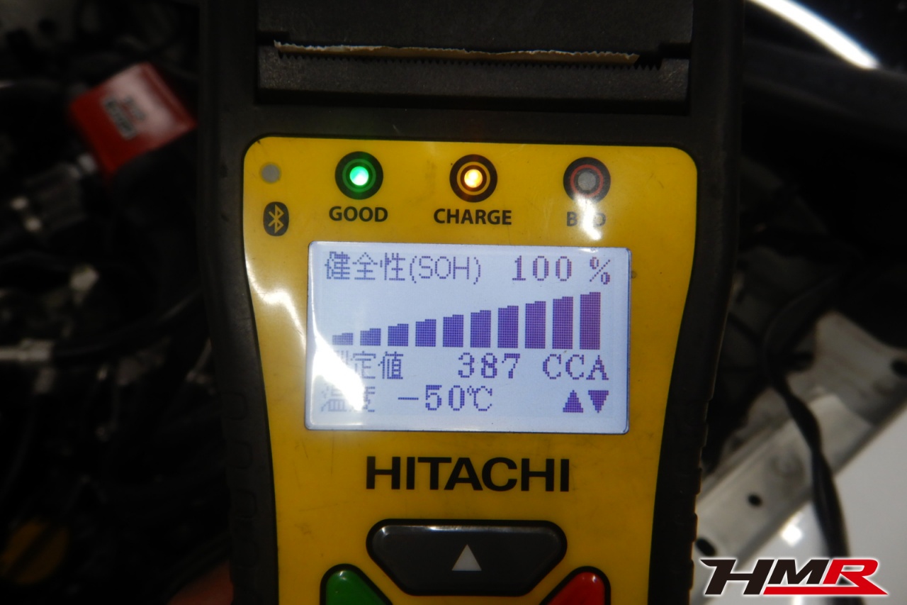 バッテリー、インテークホース、エアクリーナー、補機ベルト、プラグ、ブレーキ・クラッチマスターシリンダー、各部ゴム類の劣化、パッキン類・シール類からのオイル滲み・漏れ、ラジエターの劣化、冷却水漏れ、その他異音などをチェックしました。バッテリーが弱っていましたので充電しました。