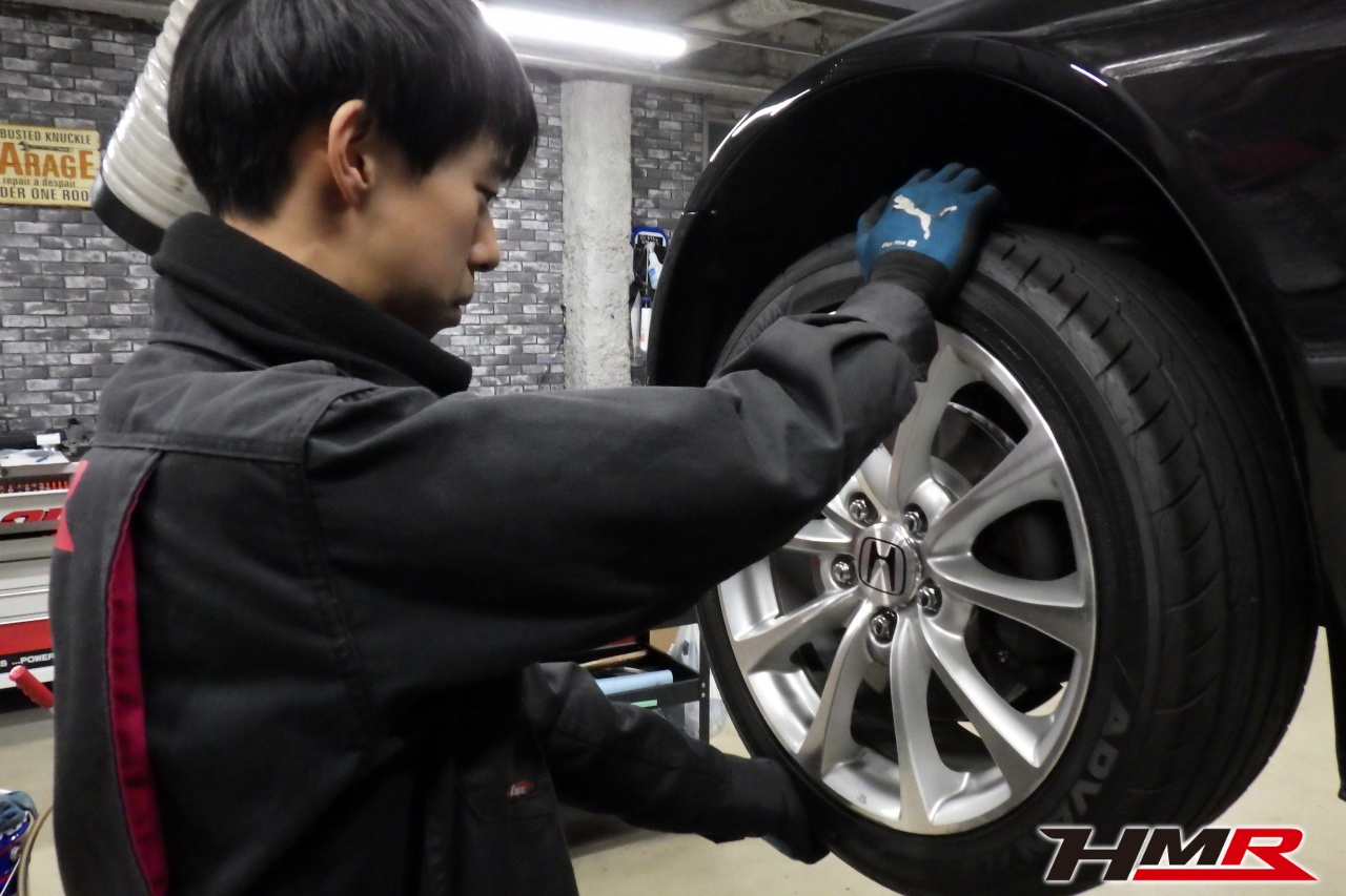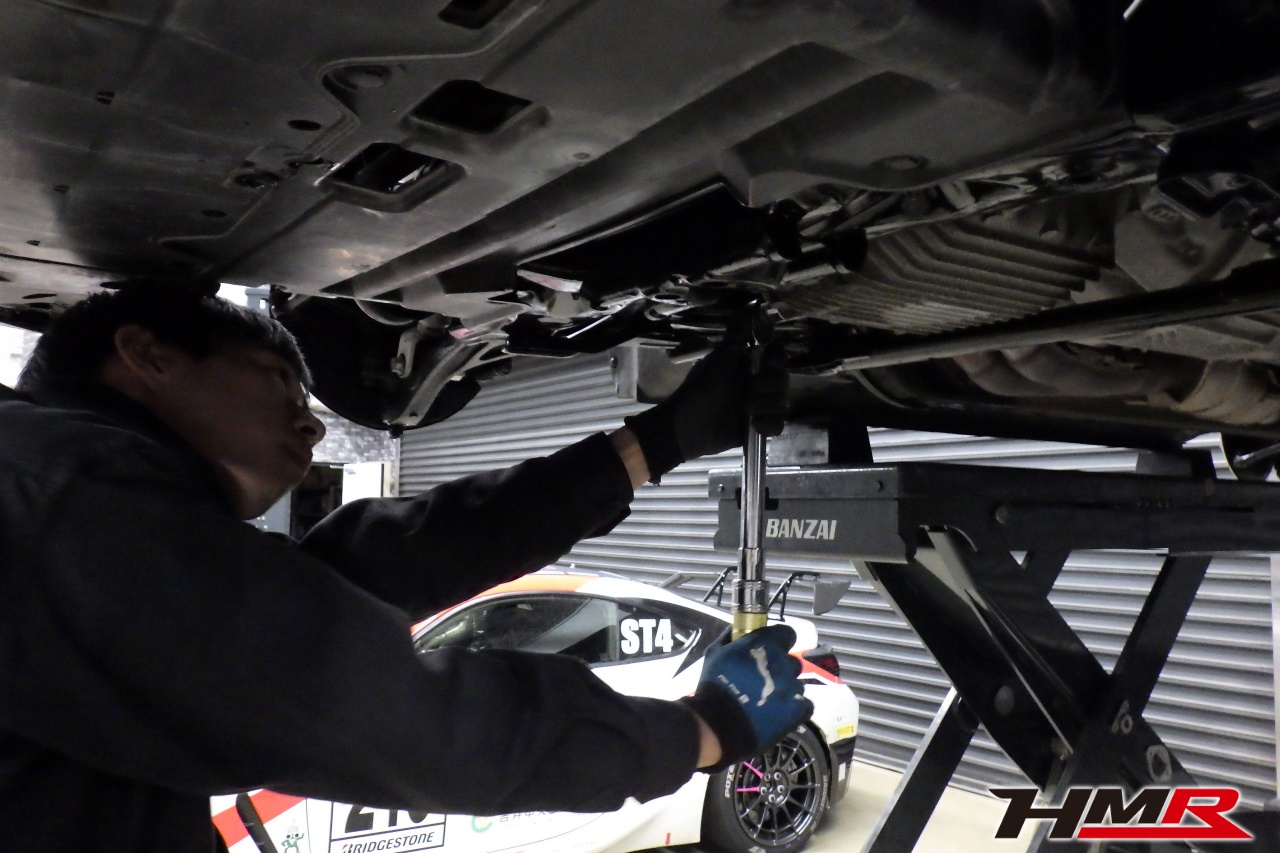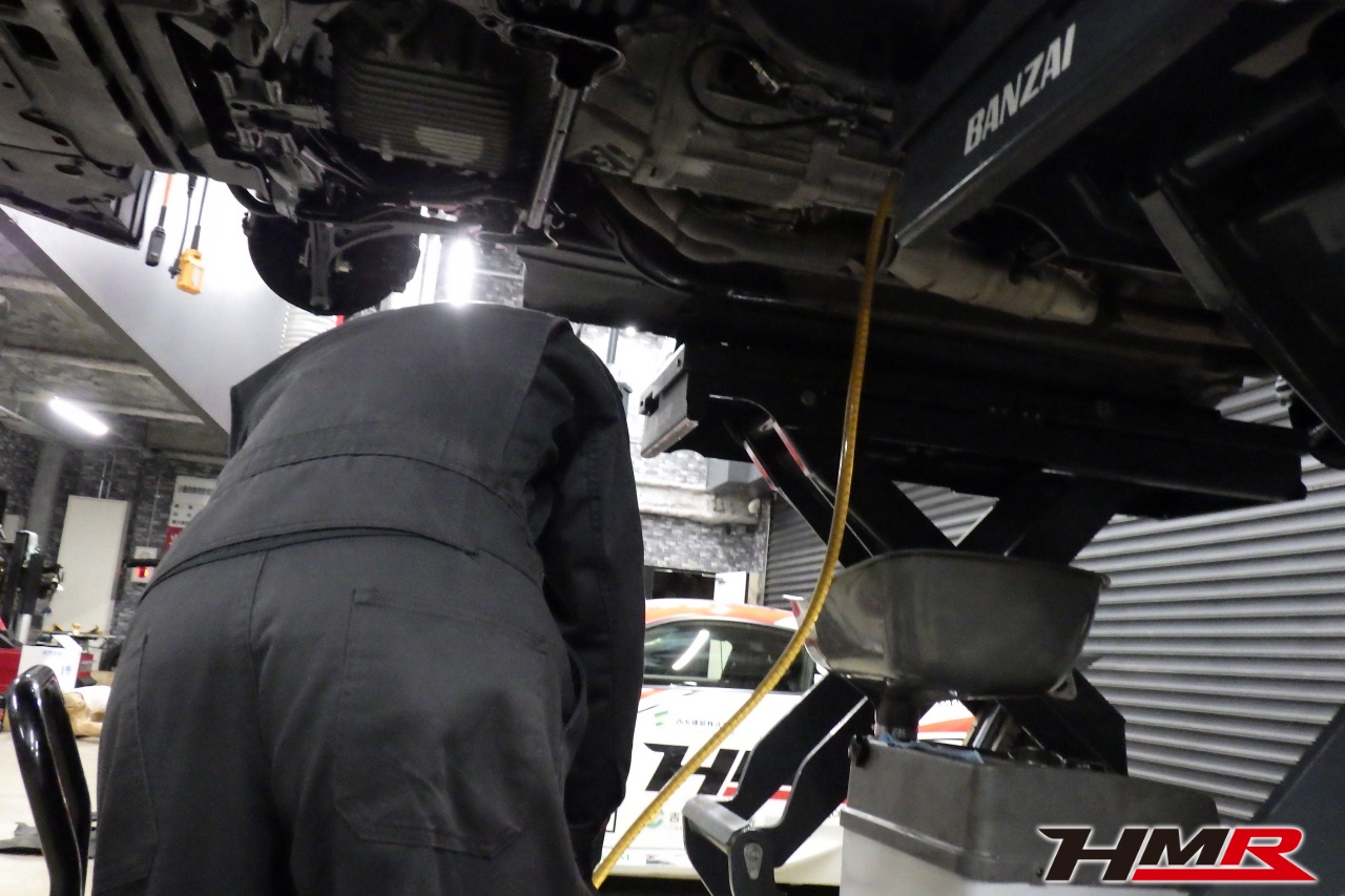 ハブベアリング・ボールジョイント、アーム・リンク類のガタ、ブッシュ・ブーツ類の劣化、エンジン・ミッション・デフからのオイル漏れと各マウント類、タイヤ溝の残量、空気圧の点検を行いました。特に問題ありませんでした。