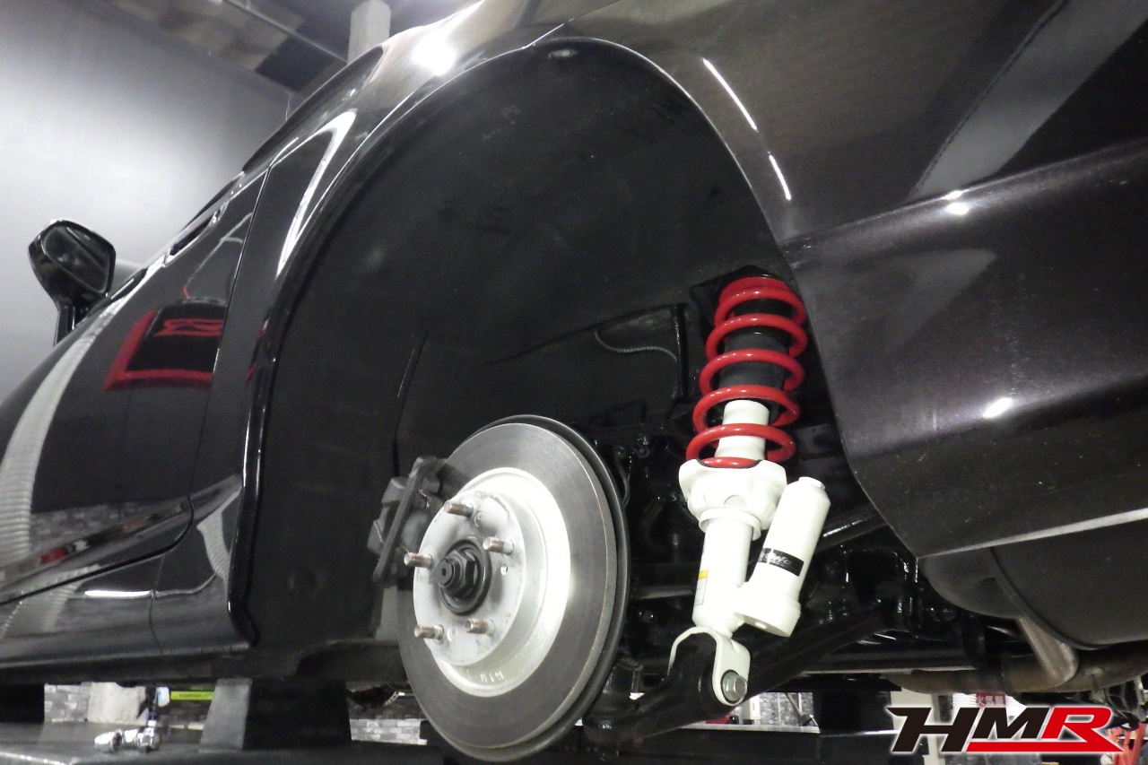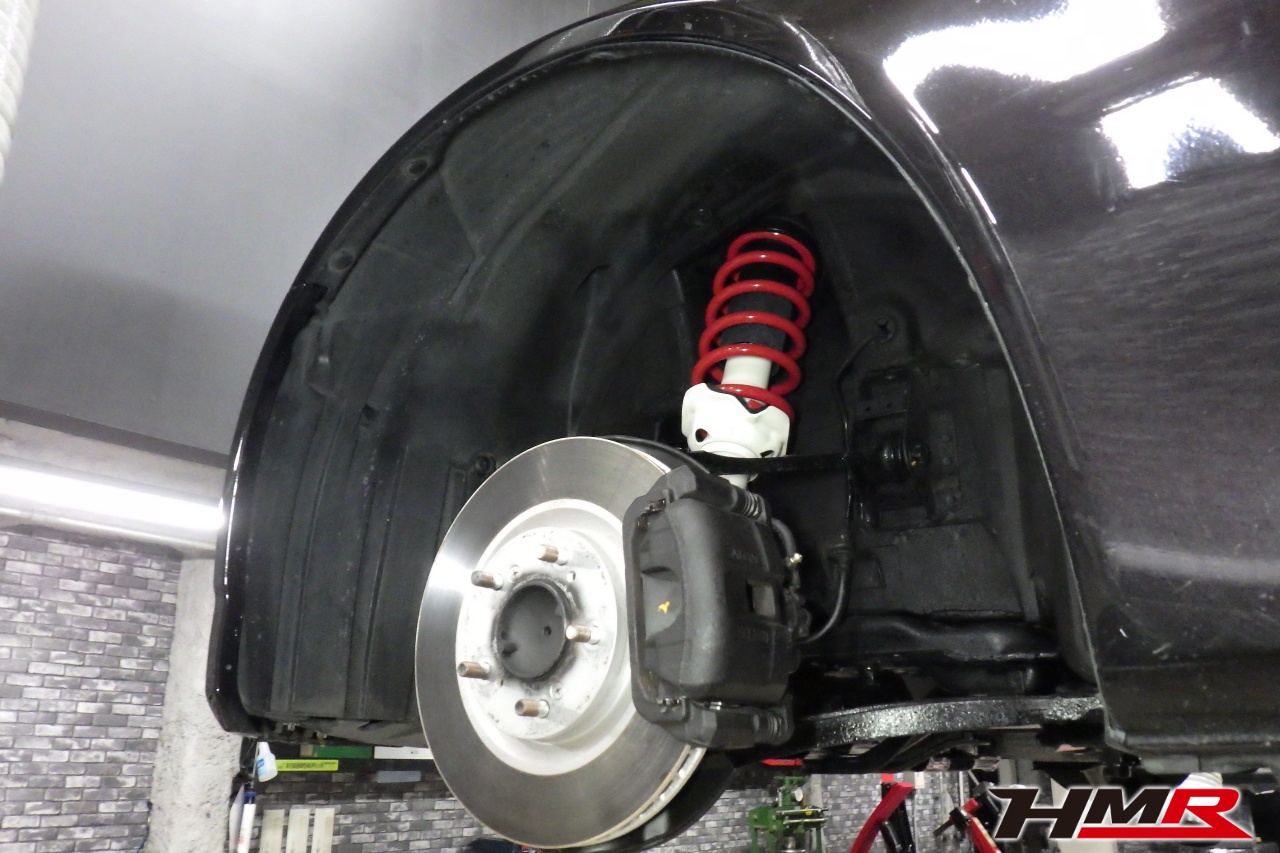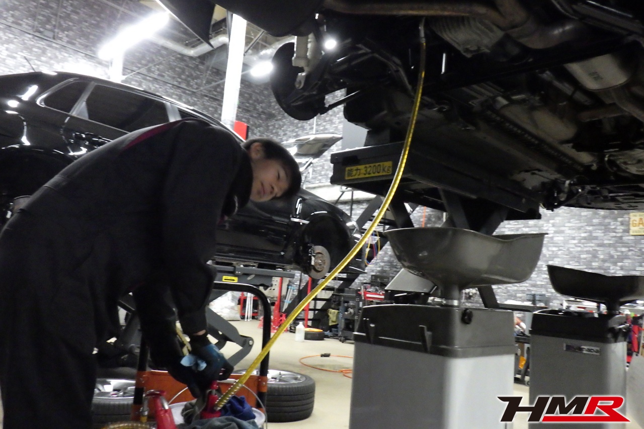 ハブベアリング・ボールジョイント、アーム・リンク類のガタ、ブッシュ・ブーツ類の劣化、エンジン・ミッション・デフからのオイル漏れと各マウント類、タイヤ溝の残量、空気圧の点検を行いました。特に問題ありませんでした。