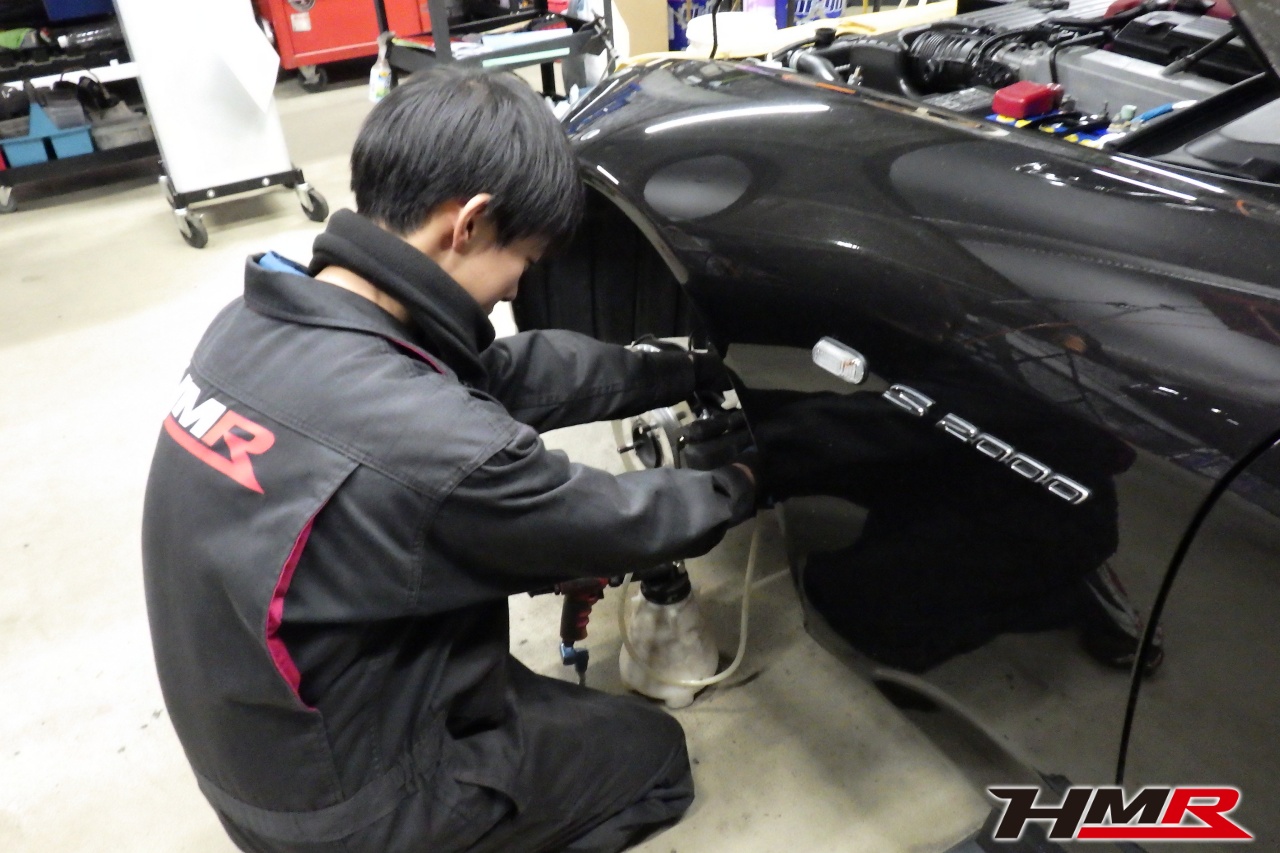 HMR(エイチエムアール)の秋山です。今回はModuloサス 社外ブラウン幌 ETC装備のS2000(AP2)の納車前点検整備を行いました。担当メカニックは手代木です。