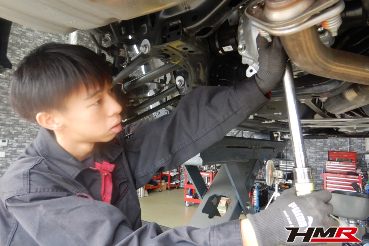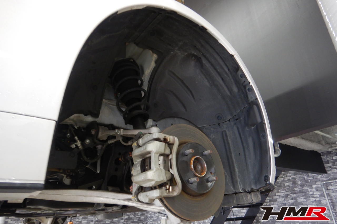 ハブベアリング・ボールジョイント、アーム・リンク類のガタ、ブッシュ・ブーツ類の劣化、エンジン・ミッション・デフからのオイル漏れと各マウント類、タイヤ溝の残量、空気圧の点検しました。特に問題ありませんでした。