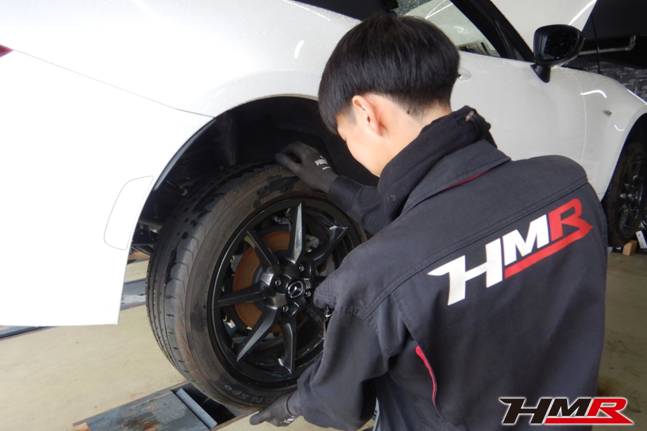 HMR(エイチエムアール)の秋山です。今回は6MT 1オーナー ノーマル ETC装備のロードスター(ND5RC)の納車前点検整備を行いました。担当メカニックは手代木です。