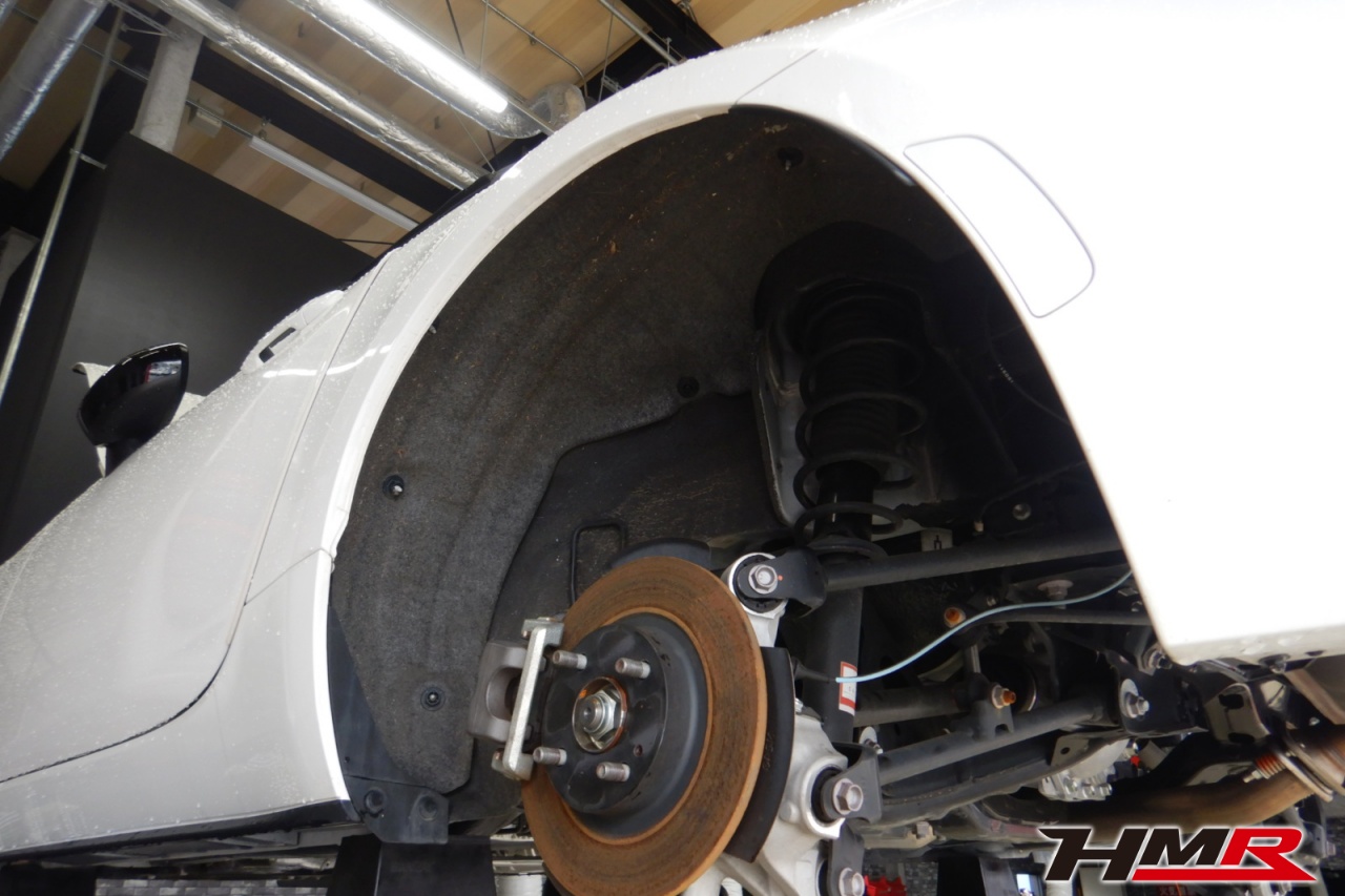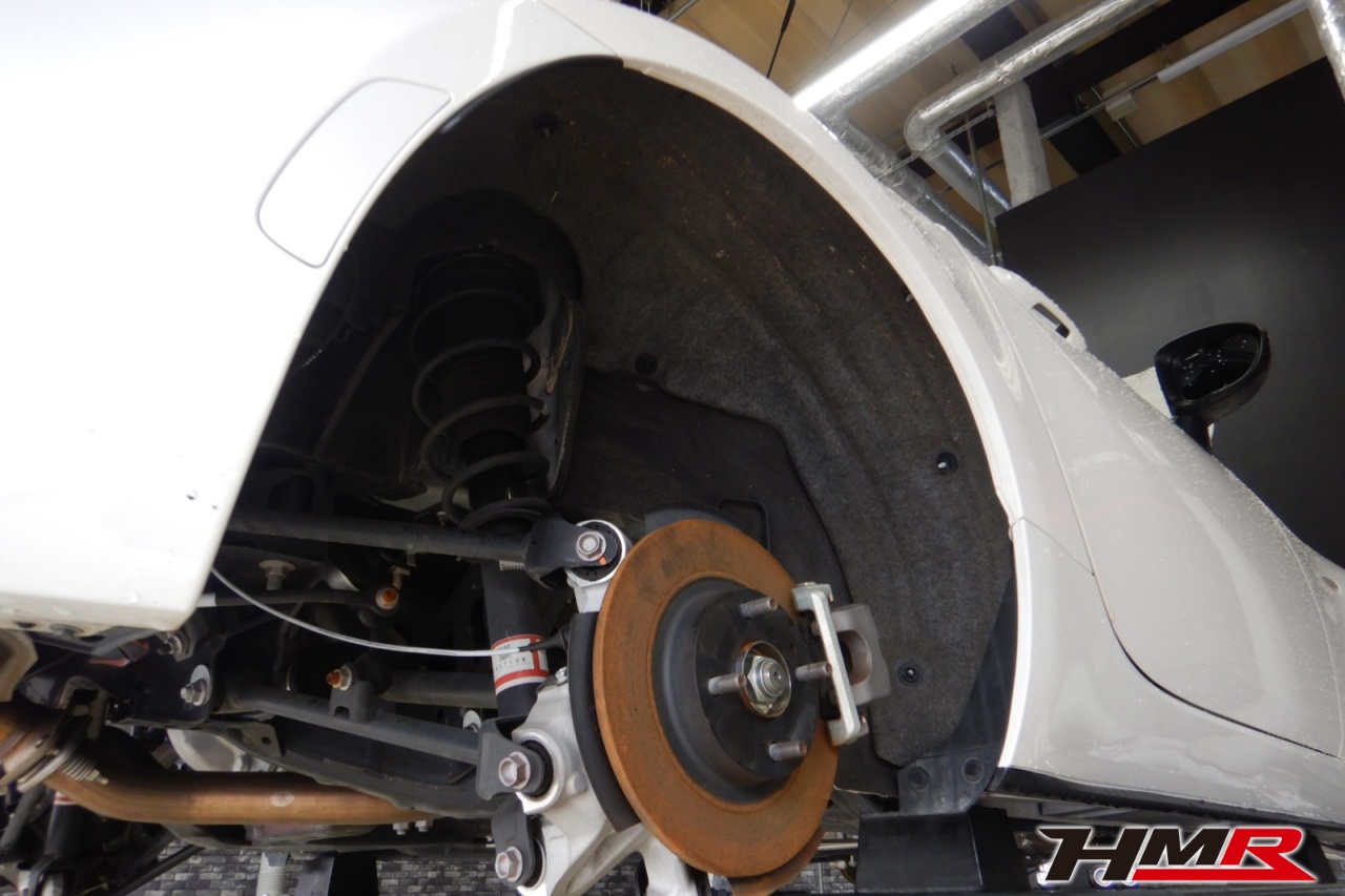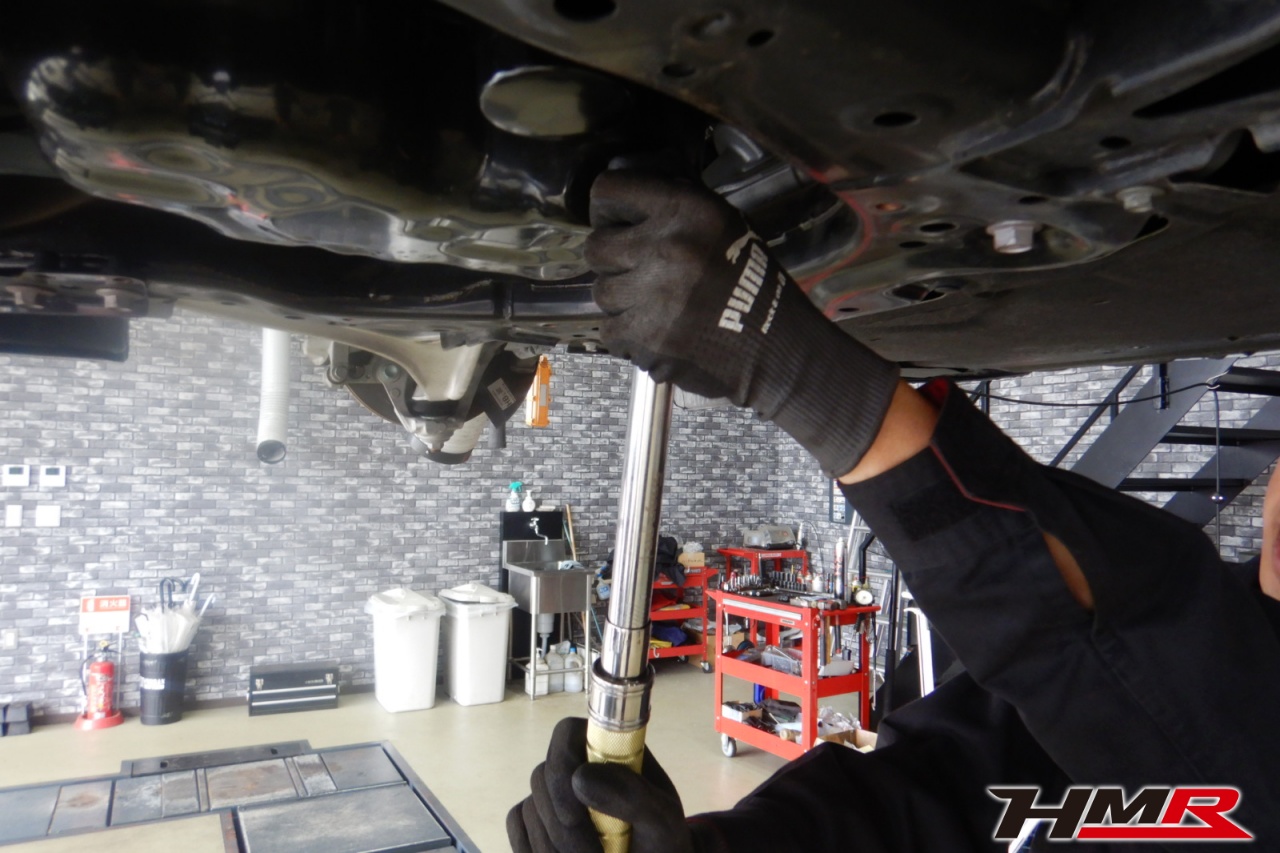 ハブベアリング・ボールジョイント、アーム・リンク類のガタ、ブッシュ・ブーツ類の劣化、エンジン・ミッション・デフからのオイル漏れと各マウント類、タイヤ溝の残量、空気圧の点検しました。特に問題ありませんでした。