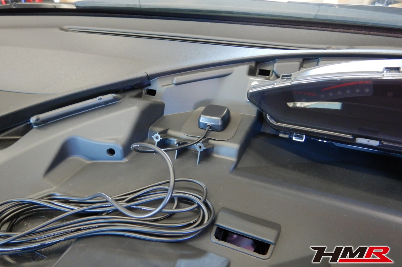 GPSアンテナはダッシュボード上の見える場所に設置することが多いですが、今回はこの位置に設置しました。メーターフードを取り付ければ見えなくなる位置なので、小さなこだわりですが嬉しいですね。