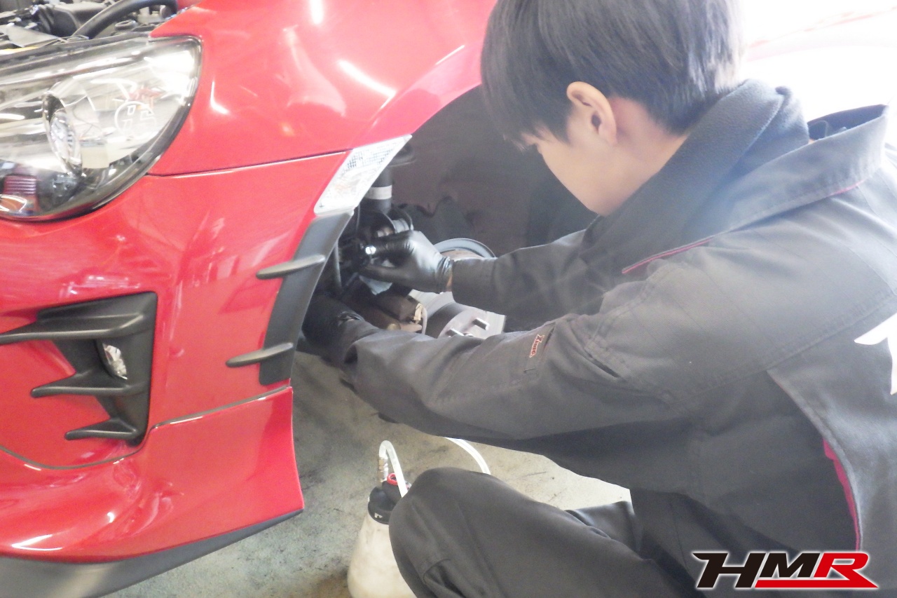 HMR(エイチエムアール)の秋山です。今回は1オーナー 6MT TRDフルエアロ装備のトヨタ86(ZN6)2.0GTリミテッドの納車前点検整備を行いました。担当メカニックは手代木です。