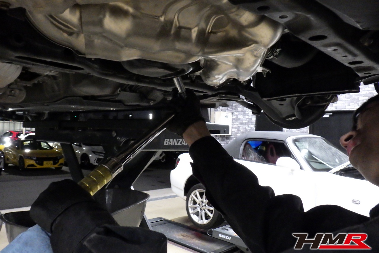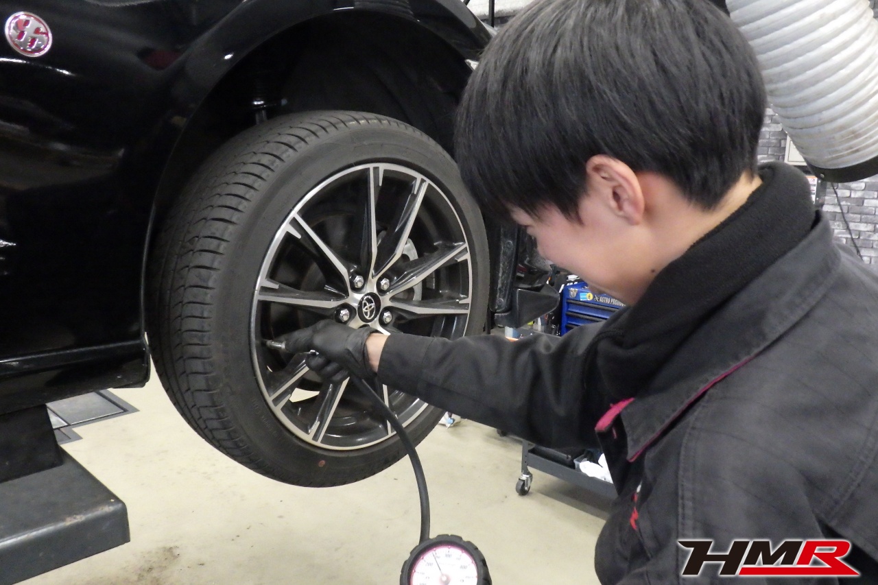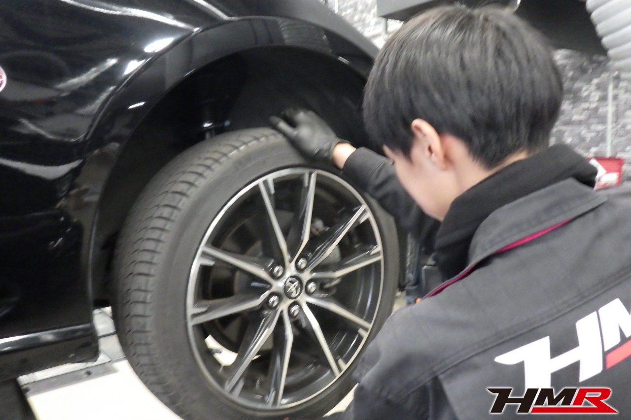 HMR(エイチエムアール)の秋山です。今回は6MT 社外フロントスポイラー 社外ナビ装備のトヨタ86(ZN6)2.0GTの納車前点検整備を行いました。担当メカニックは手代木です。