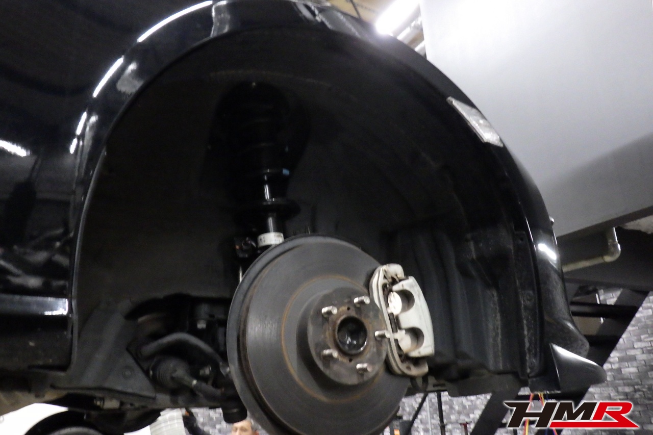 ハブベアリング・ボールジョイント、アーム・リンク類のガタ、ブッシュ・ブーツ類の劣化、エンジン・ミッション・デフからのオイル漏れと各マウント類、タイヤ溝の残量、空気圧の点検を行いましたが特に問題ありませんでした。