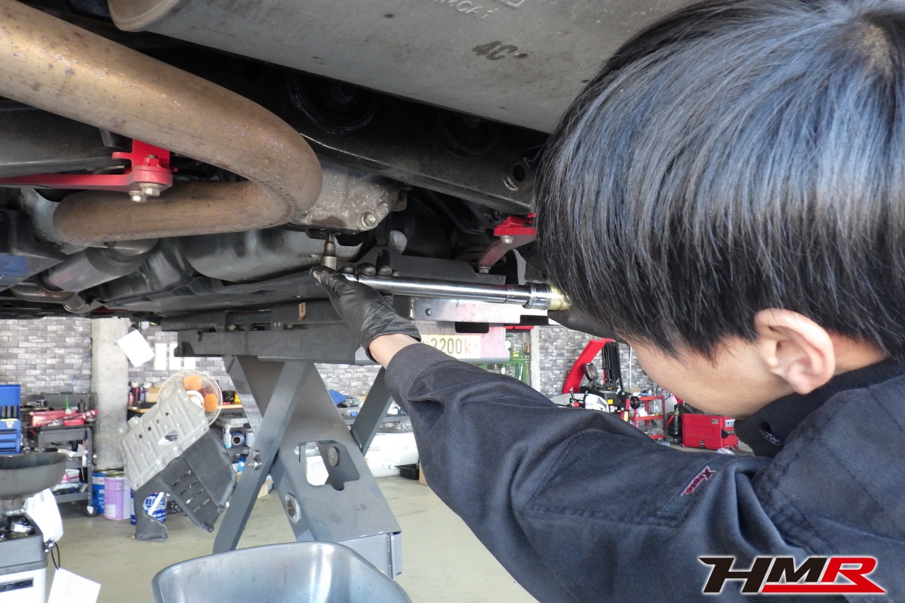 エンジンオイル、オイルフィルター、オイルフィルターセンターボルト、ミッションオイル、リアデフオイル、クーラント、ブレーキフルードを交換しました。エンジンオイルはWAKO’SプロステージS 10W-40、ミッションオイルはWAKO’Sギアオイル MT-75 リアデフオイルはWAKO’S ギアオイルMG-90に交換しています。