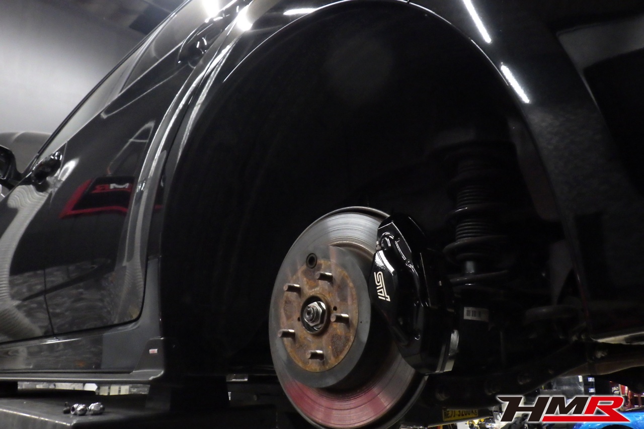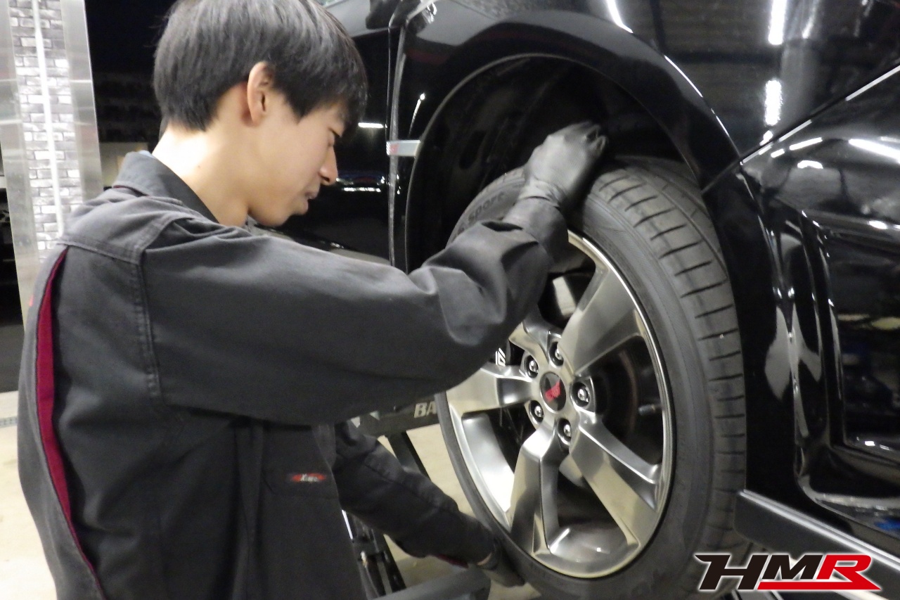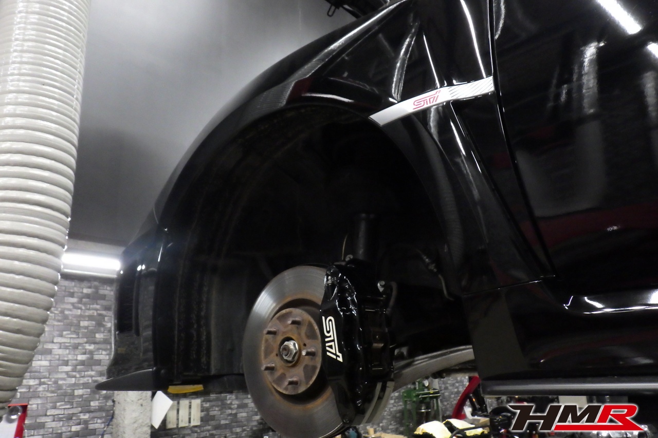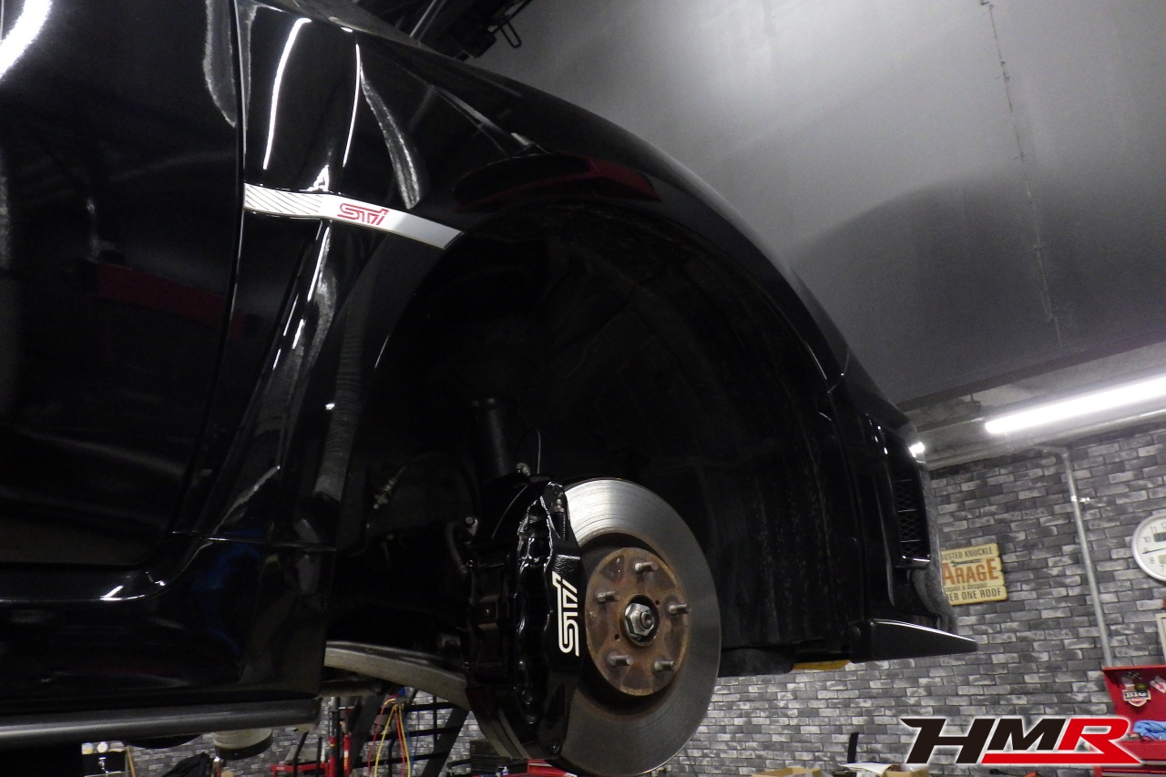 HMR(エイチエムアール)の秋山です。今回はSTIエアロ マフラー 純正18インチ装備のインプレッサWRX STI(GVB)の納車前点検整備を行いました。。担当メカニックは手代木です。