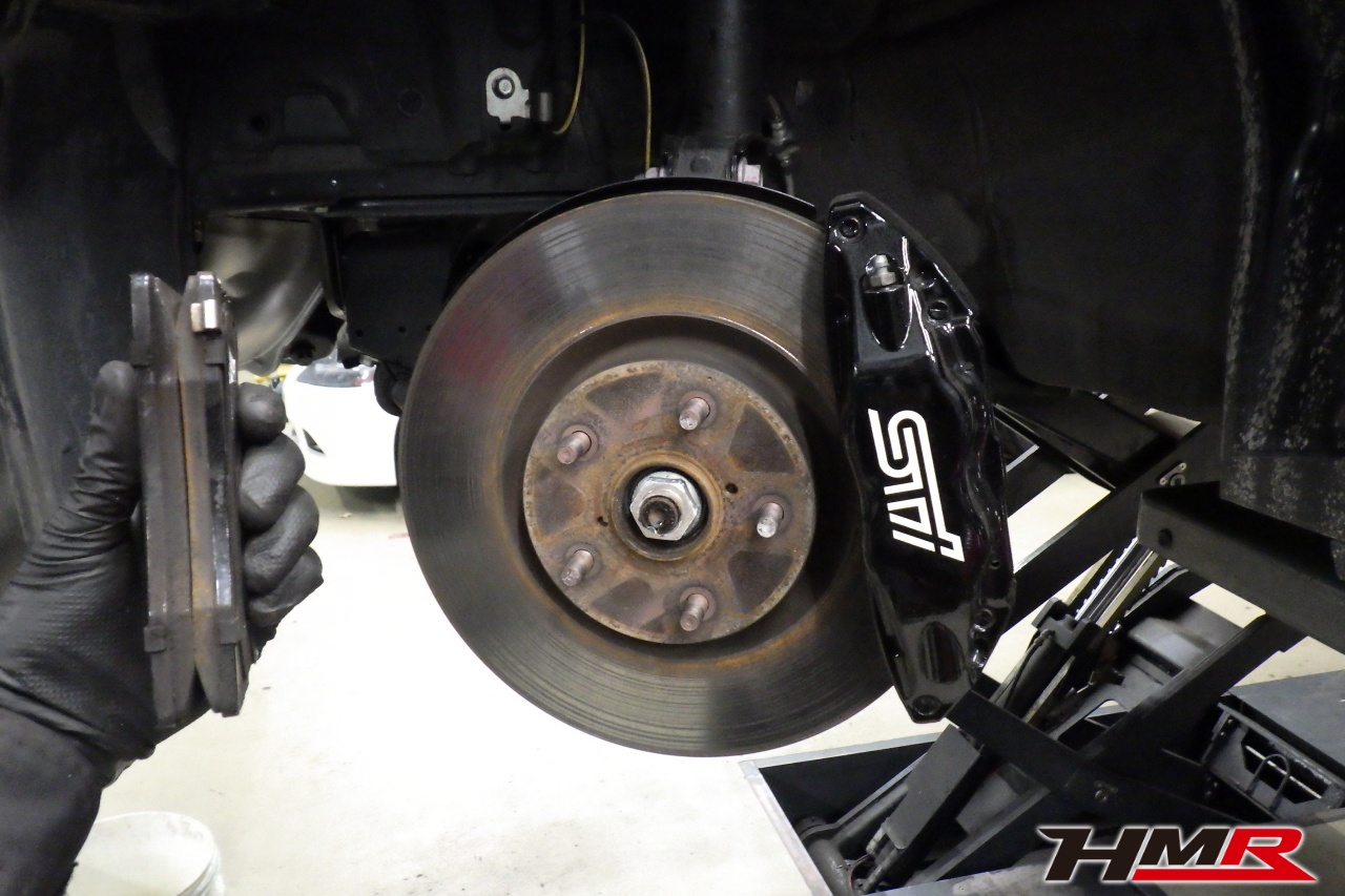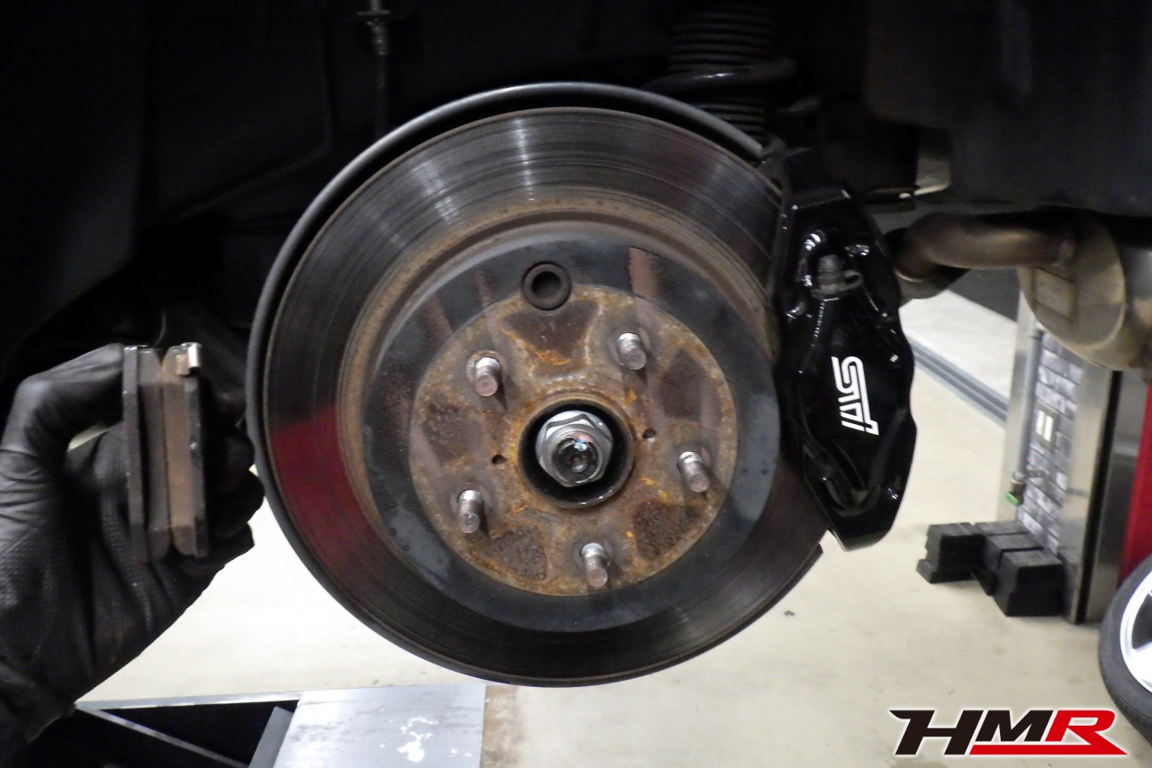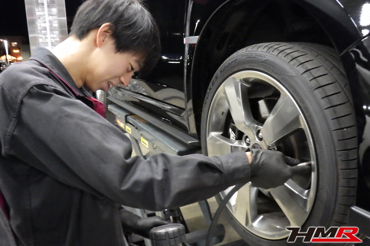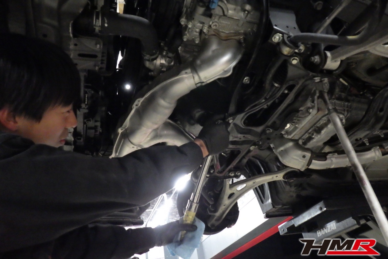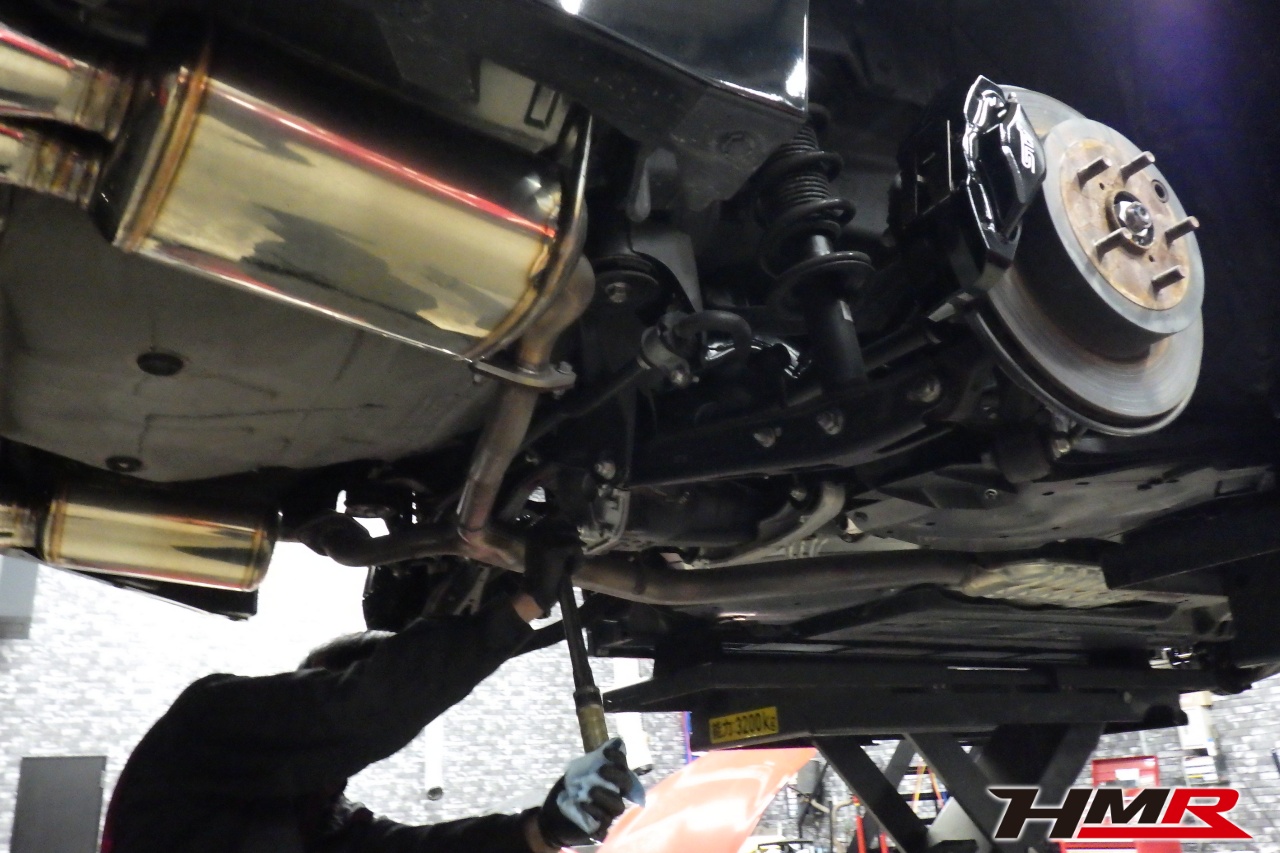 HMR(エイチエムアール)の秋山です。今回はSTIエアロ マフラー 純正18インチ装備のインプレッサWRX STI(GVB)の納車前点検整備を行いました。。担当メカニックは手代木です。