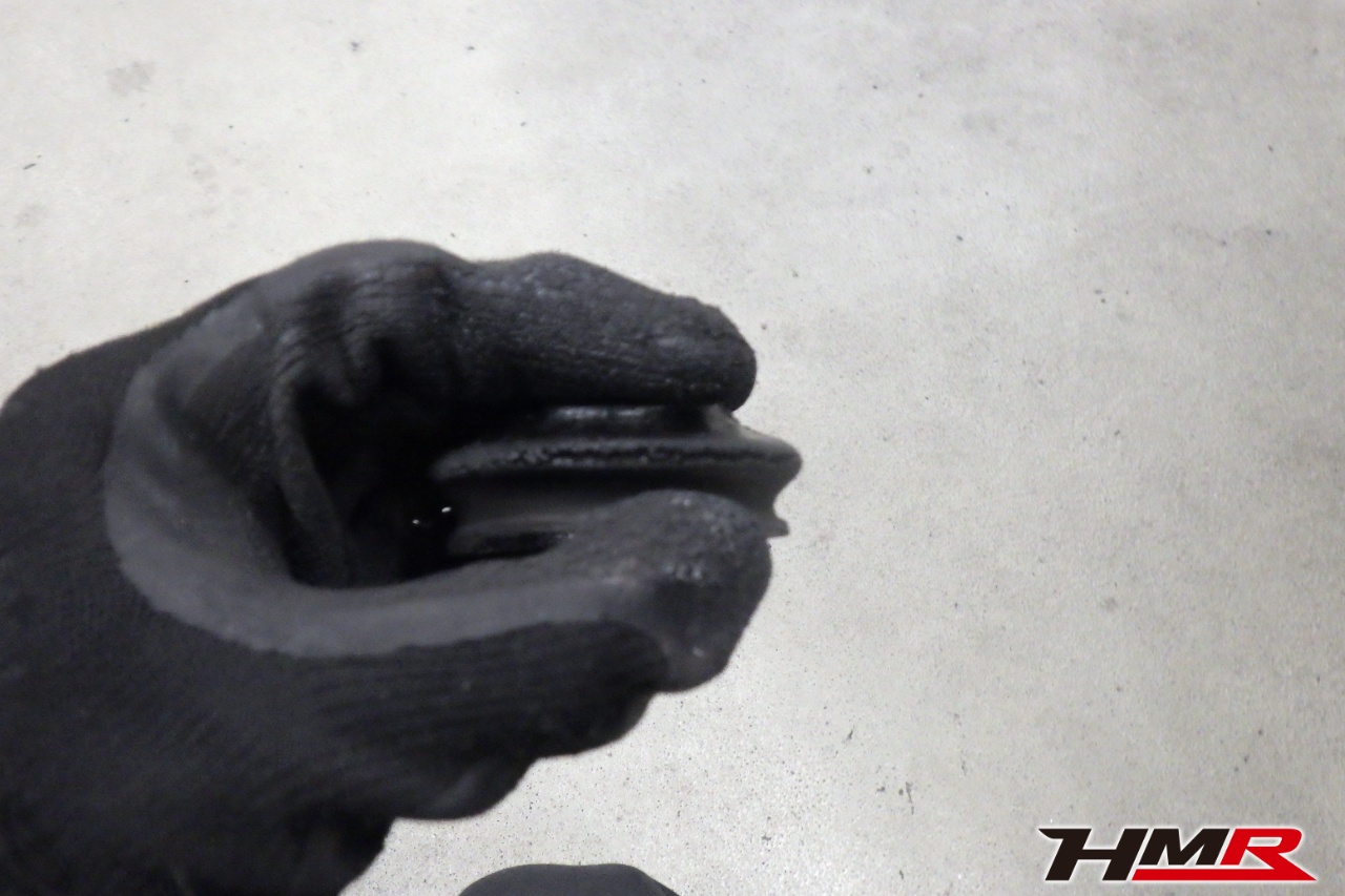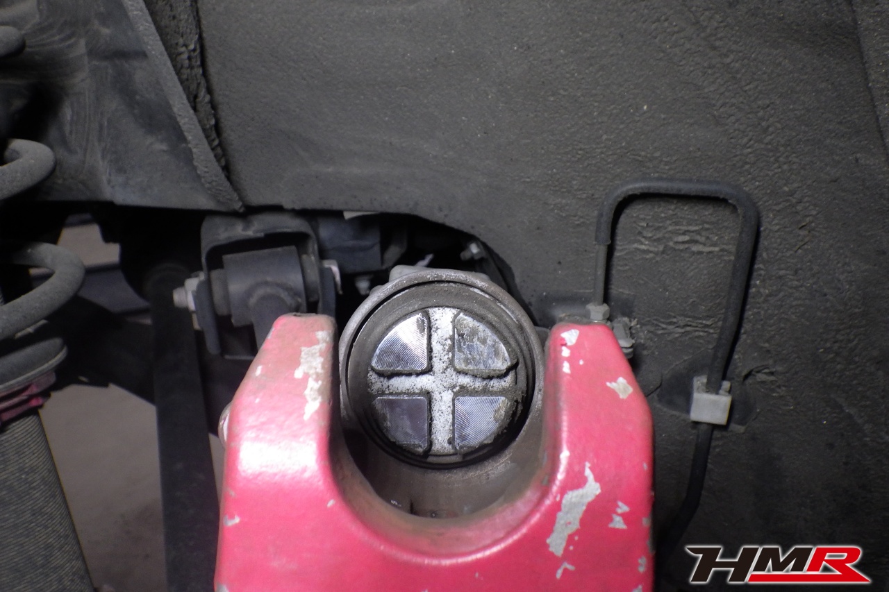 ハブベアリング・ボールジョイント、アーム・リンク類のガタ、ブッシュ・ブーツ類の劣化、エンジン・ミッション・デフからのオイル漏れと各マウント類、タイヤ溝の残量、空気圧の点検しました。フロントロアアームブーツが切れていましたので交換しました。タイヤの残り溝はおおよそフロント6.5mm・リア6.6mmでした。