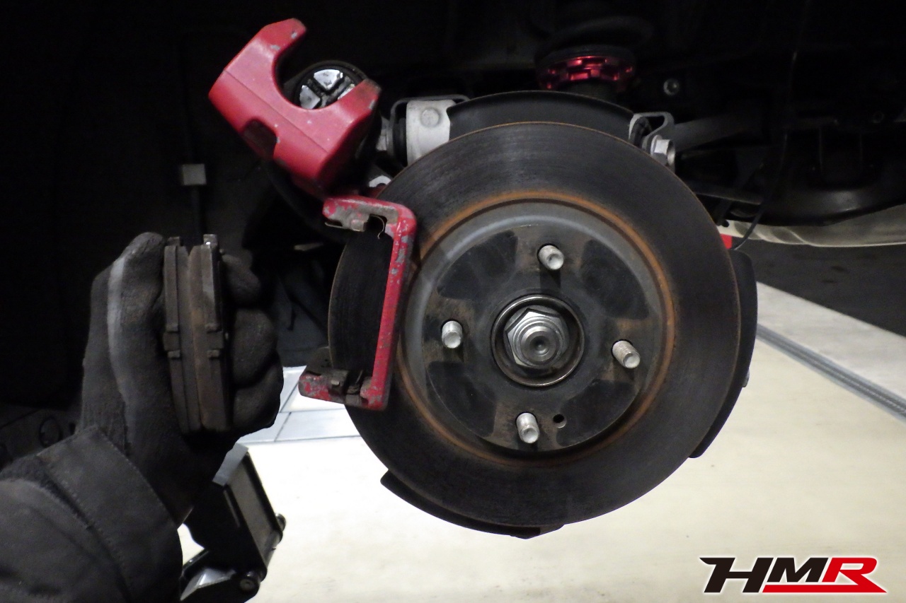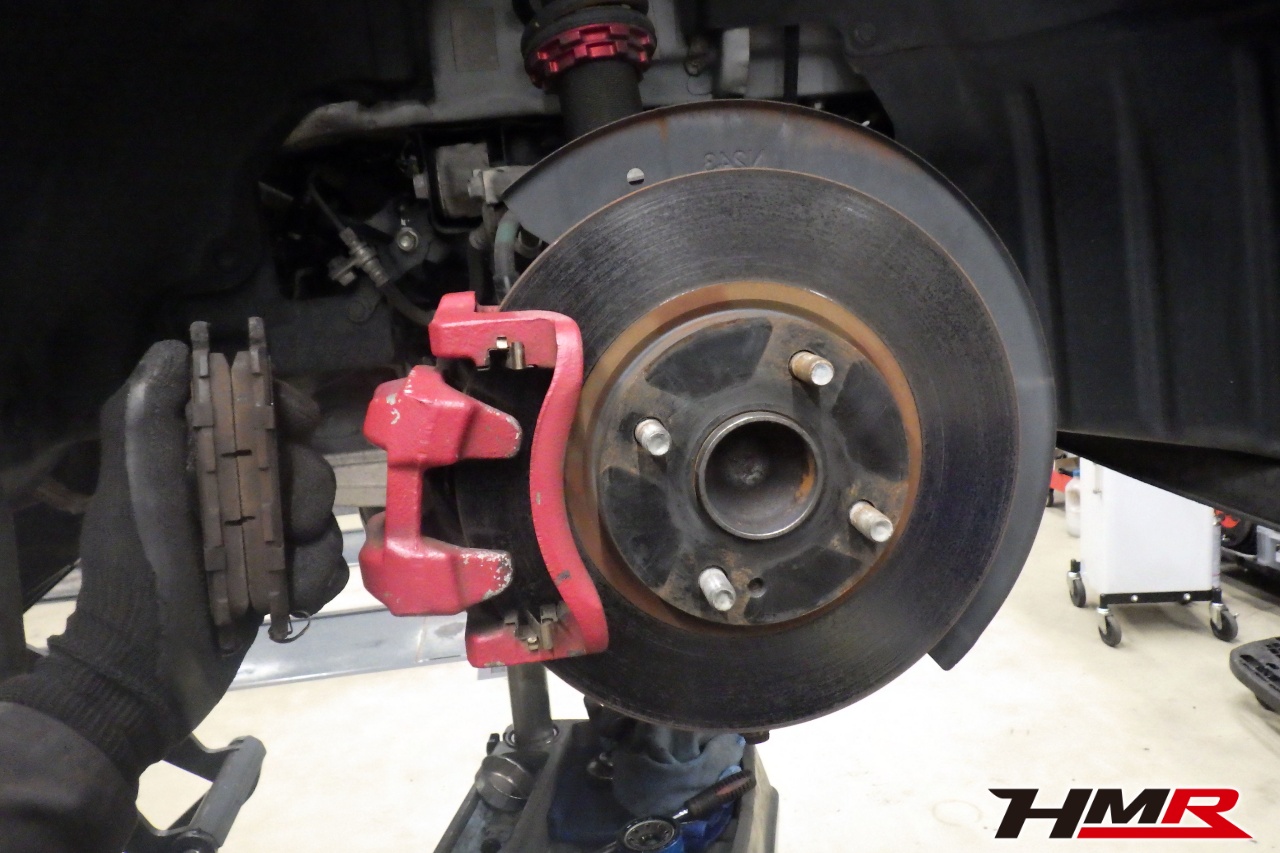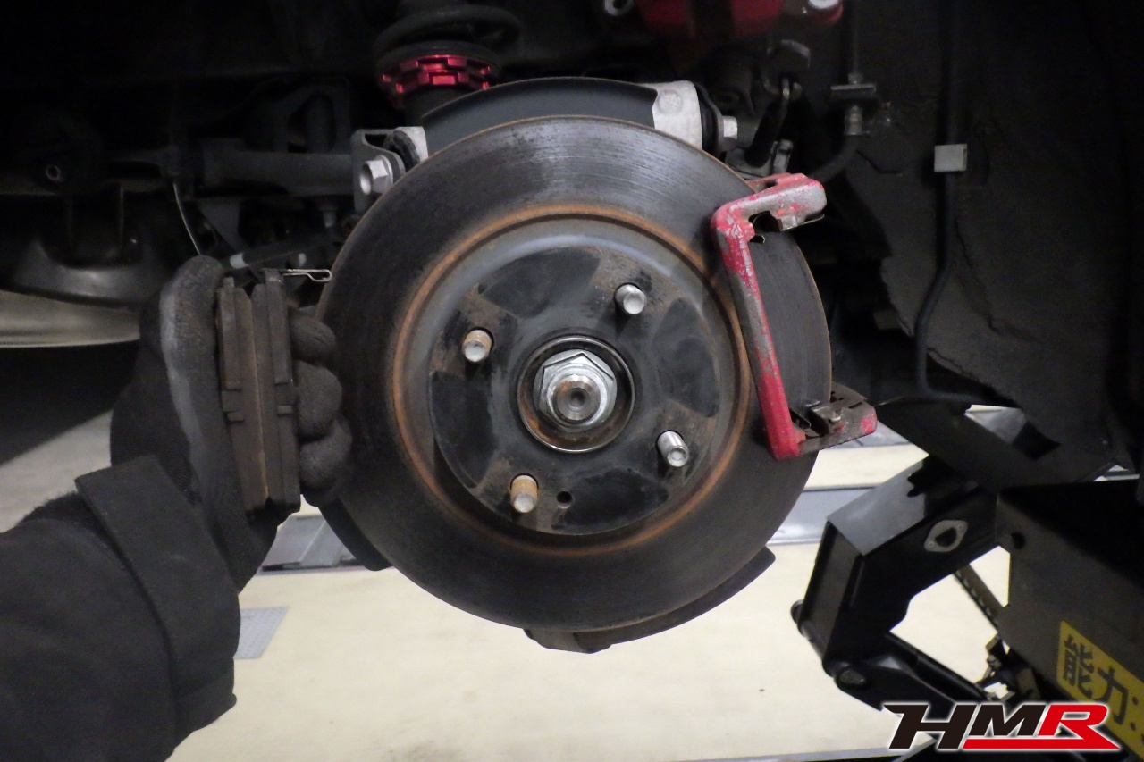 ブレーキキャリパーシール・キャリパーピストン、パッドの残量、ブレーキホースの劣化、ブレーキディスクローターの摩耗をチェックしました。特に問題ありませんでした。パッドの残量はおおよそフロント6.5mm・リア5.3mmでした。