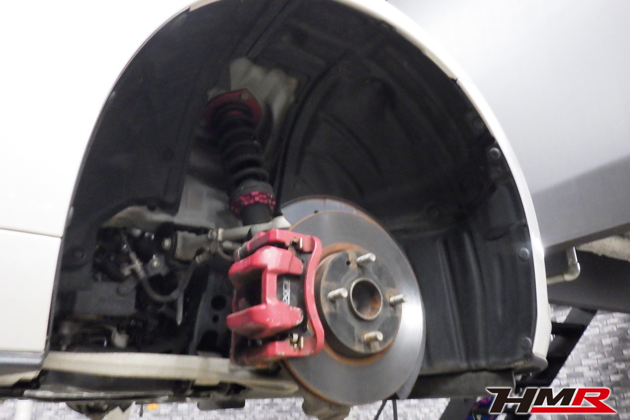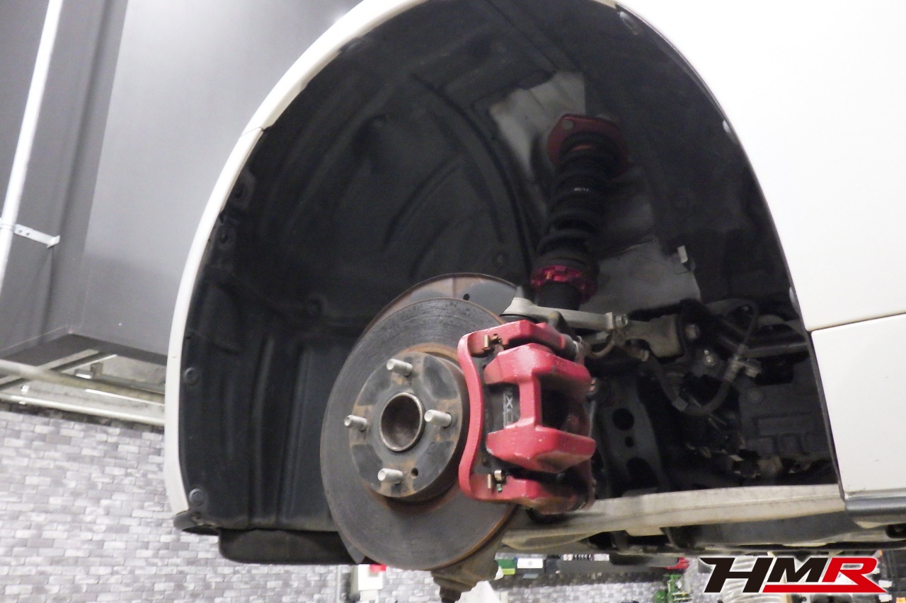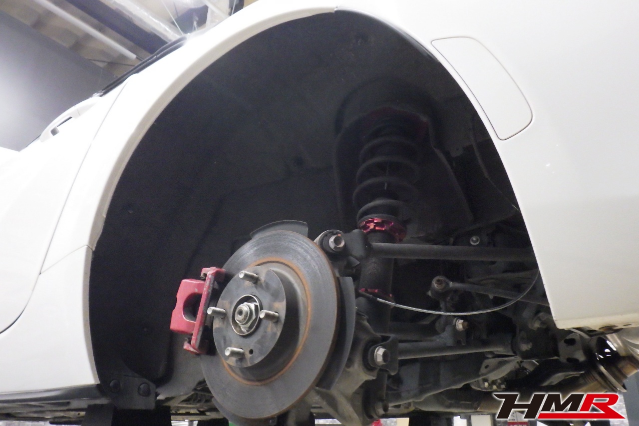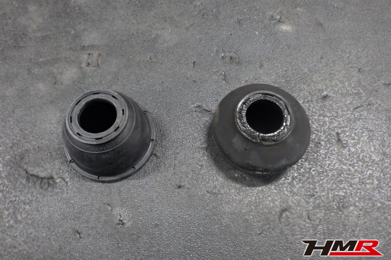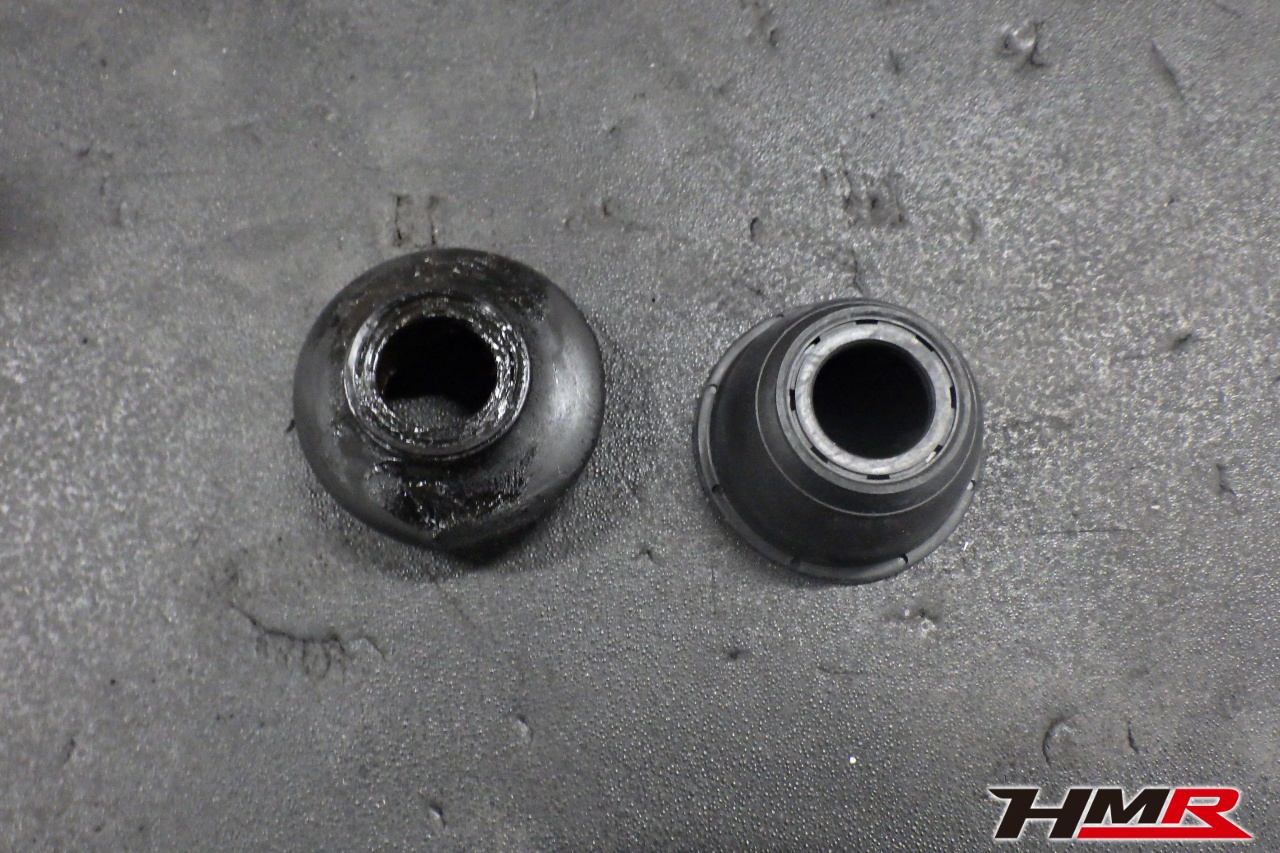 ハブベアリング・ボールジョイント、アーム・リンク類のガタ、ブッシュ・ブーツ類の劣化、エンジン・ミッション・デフからのオイル漏れと各マウント類、タイヤ溝の残量、空気圧の点検しました。フロントロアアームブーツが切れていましたので交換しました。タイヤの残り溝はおおよそフロント6.5mm・リア6.6mmでした。