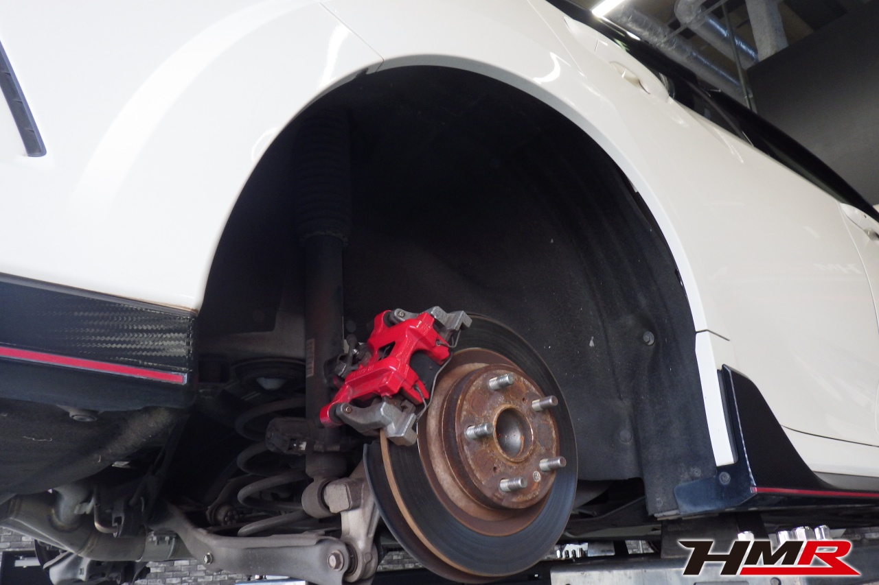 HMR(エイチエムアール)の秋山です。今回はフジツボマフラー 純正20インチ装備のシビックタイプR(FK8)の納車前点検整備を行いました。担当メカニックは手代木です。