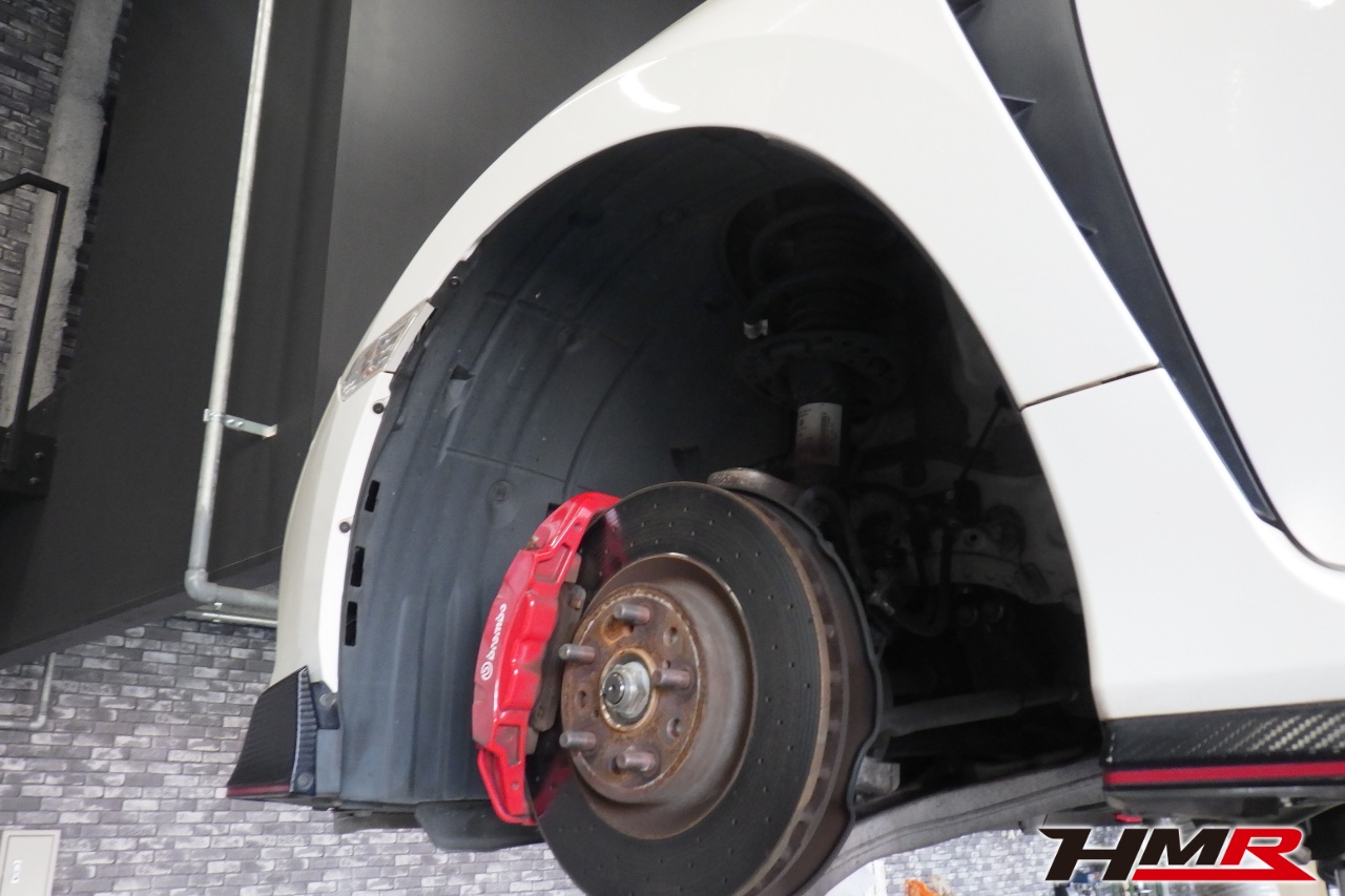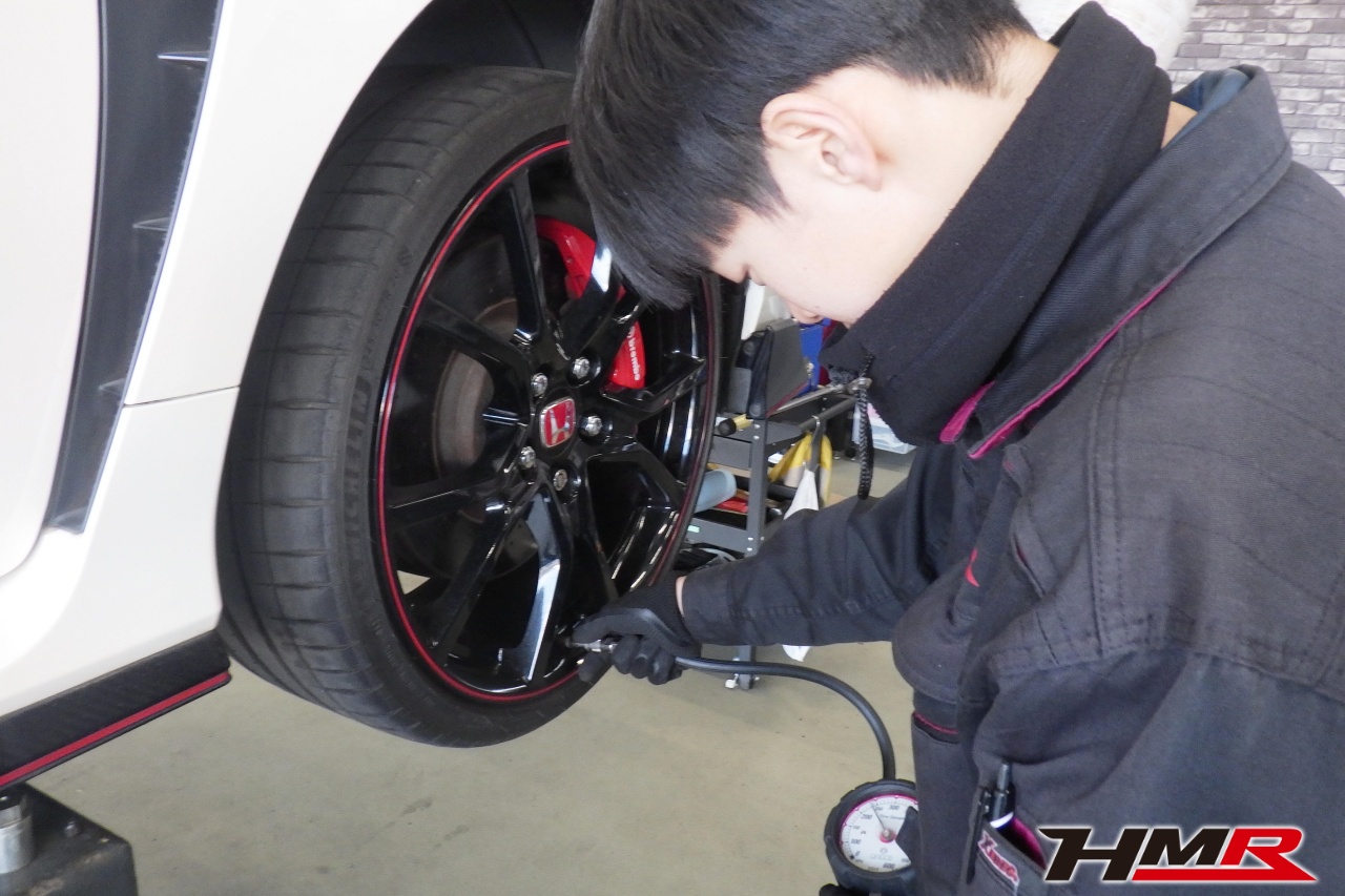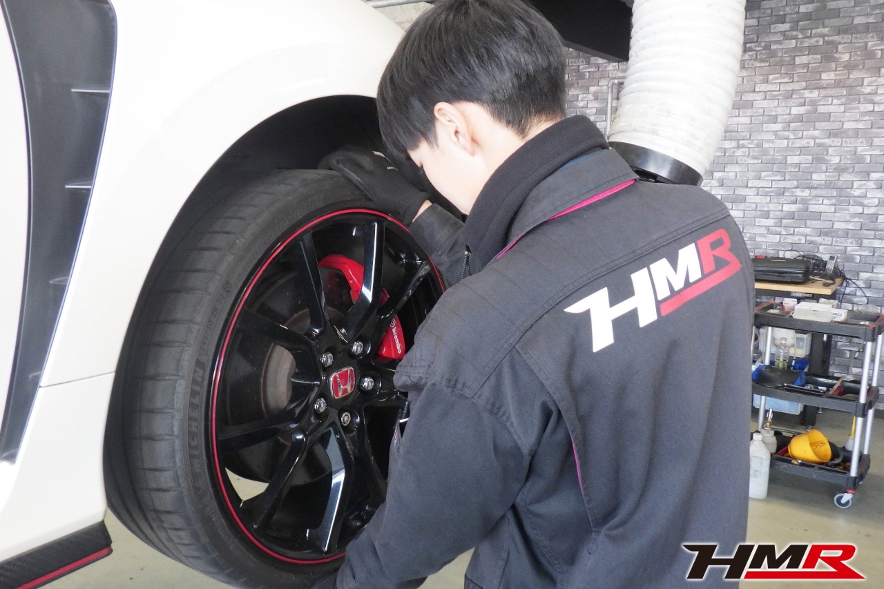 HMR(エイチエムアール)の秋山です。今回はフジツボマフラー 純正20インチ装備のシビックタイプR(FK8)の納車前点検整備を行いました。担当メカニックは手代木です。