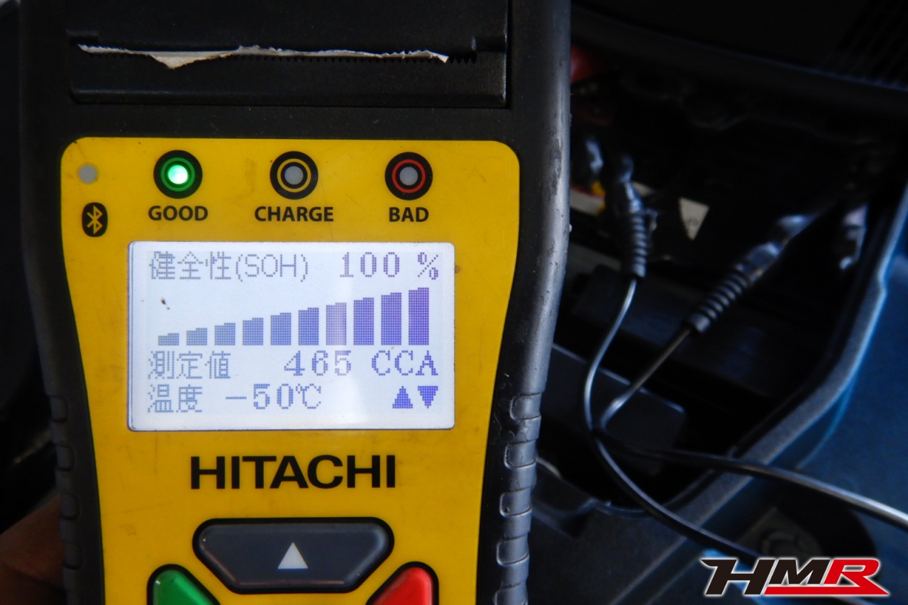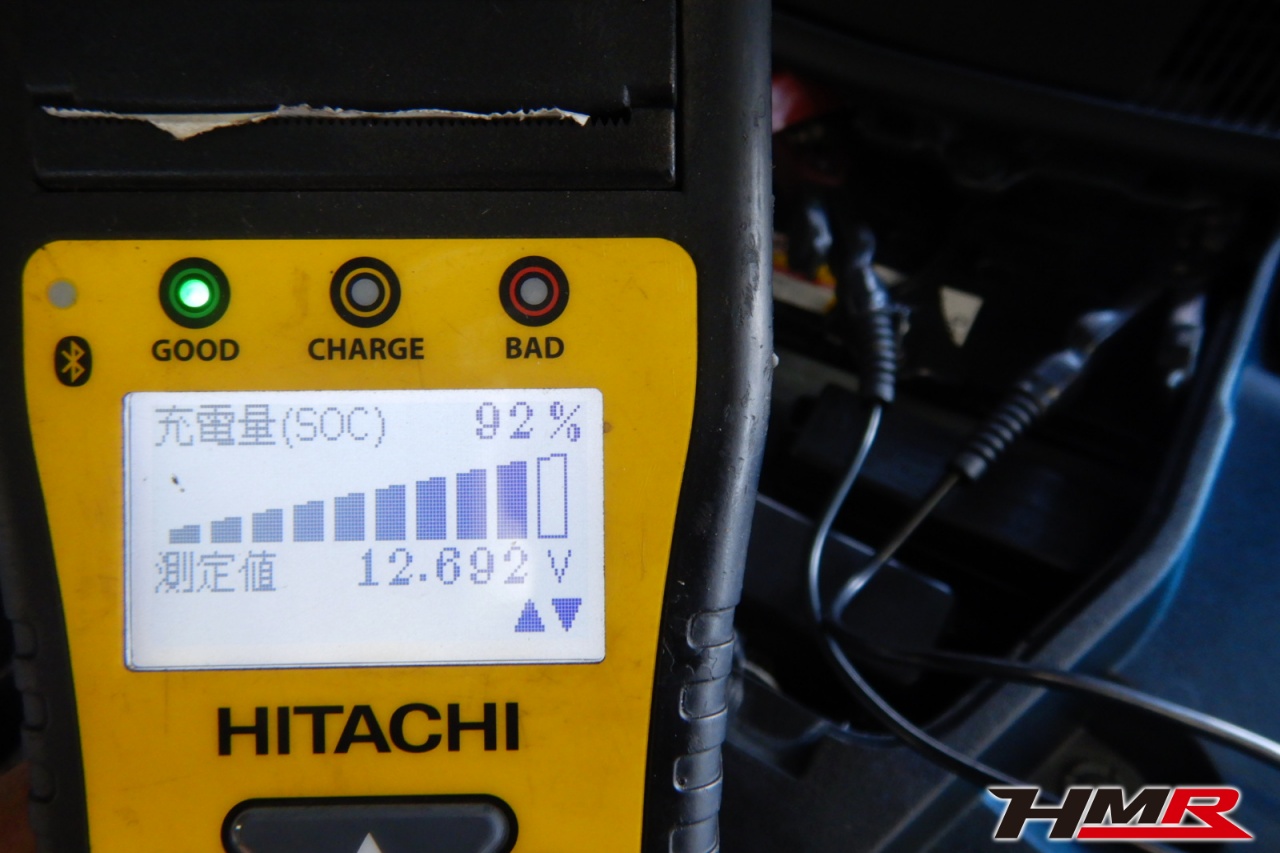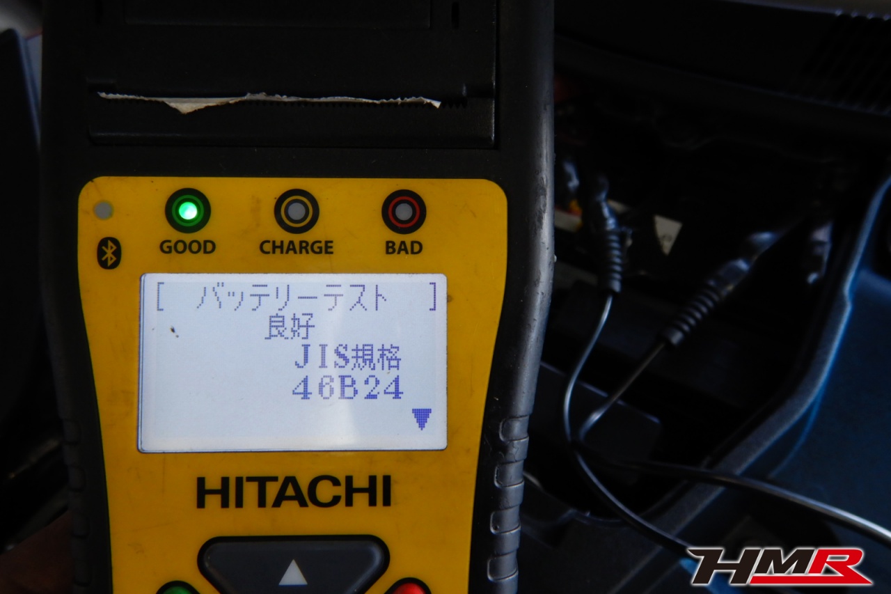バッテリー、インテークホース、エアクリーナー、補機ベルト、プラグ、ブレーキ・クラッチマスターシリンダー、各部ゴム類の劣化、パッキン類・シール類からのオイル滲み・漏れ、ラジエターの劣化、冷却水漏れ、その他異音などをチェックしました。バッテリーが弱っていましたので充電しました。