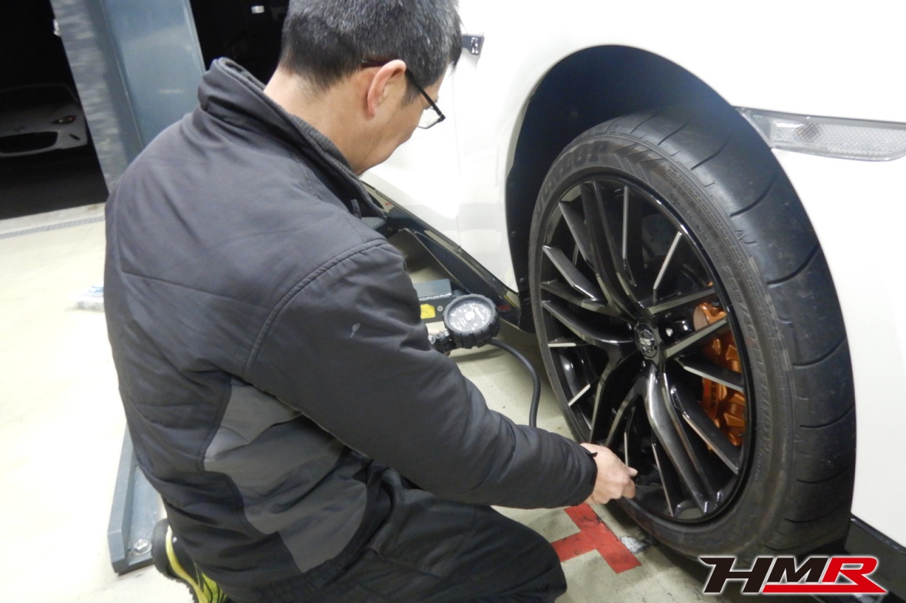 ハブベアリング・ボールジョイント、アーム・リンク類のガタ、ブッシュ・ブーツ類の劣化、エンジン・ミッション・デフからのオイル漏れと各マウント類、タイヤ溝の残量、空気圧の点検しました。特に問題ありませんでした。