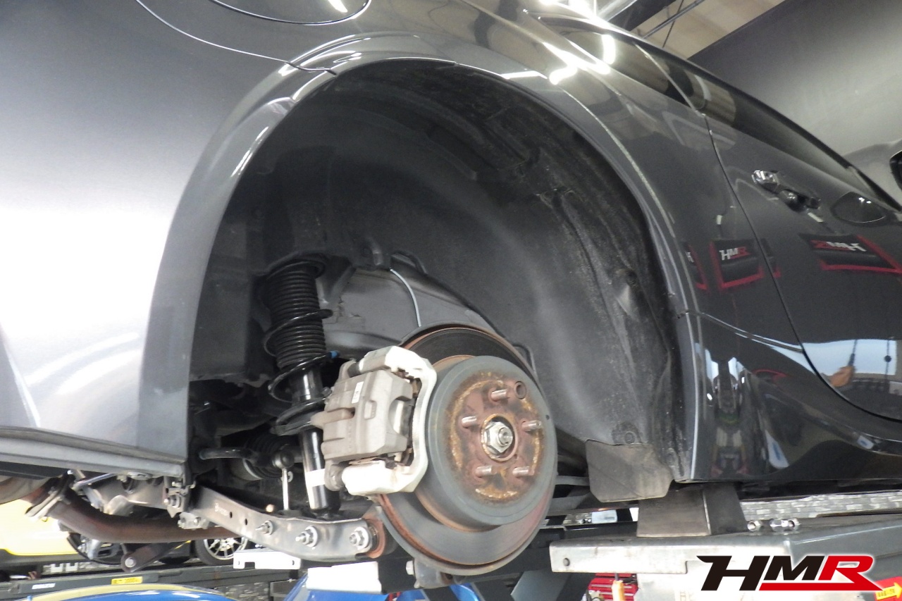 ハブベアリング・ボールジョイント、アーム・リンク類のガタ、ブッシュ・ブーツ類の劣化、エンジン・ミッション・デフからのオイル漏れと各マウント類、タイヤ溝の残量、空気圧の点検しました。特に問題ありませんでした。