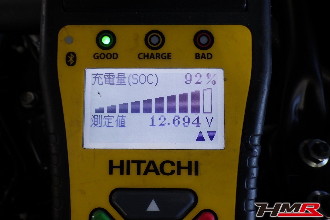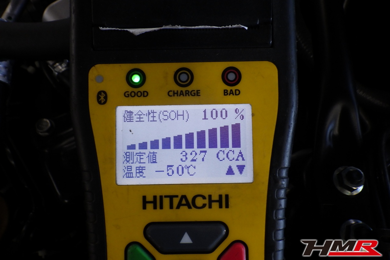 バッテリー、インテークホース、エアクリーナー、補機ベルト、プラグ、ブレーキ・クラッチマスターシリンダー、各部ゴム類の劣化、パッキン類・シール類からのオイル滲み・漏れ、ラジエターの劣化、冷却水漏れ、その他異音などをチェックしました。特に問題ありませんでした。
