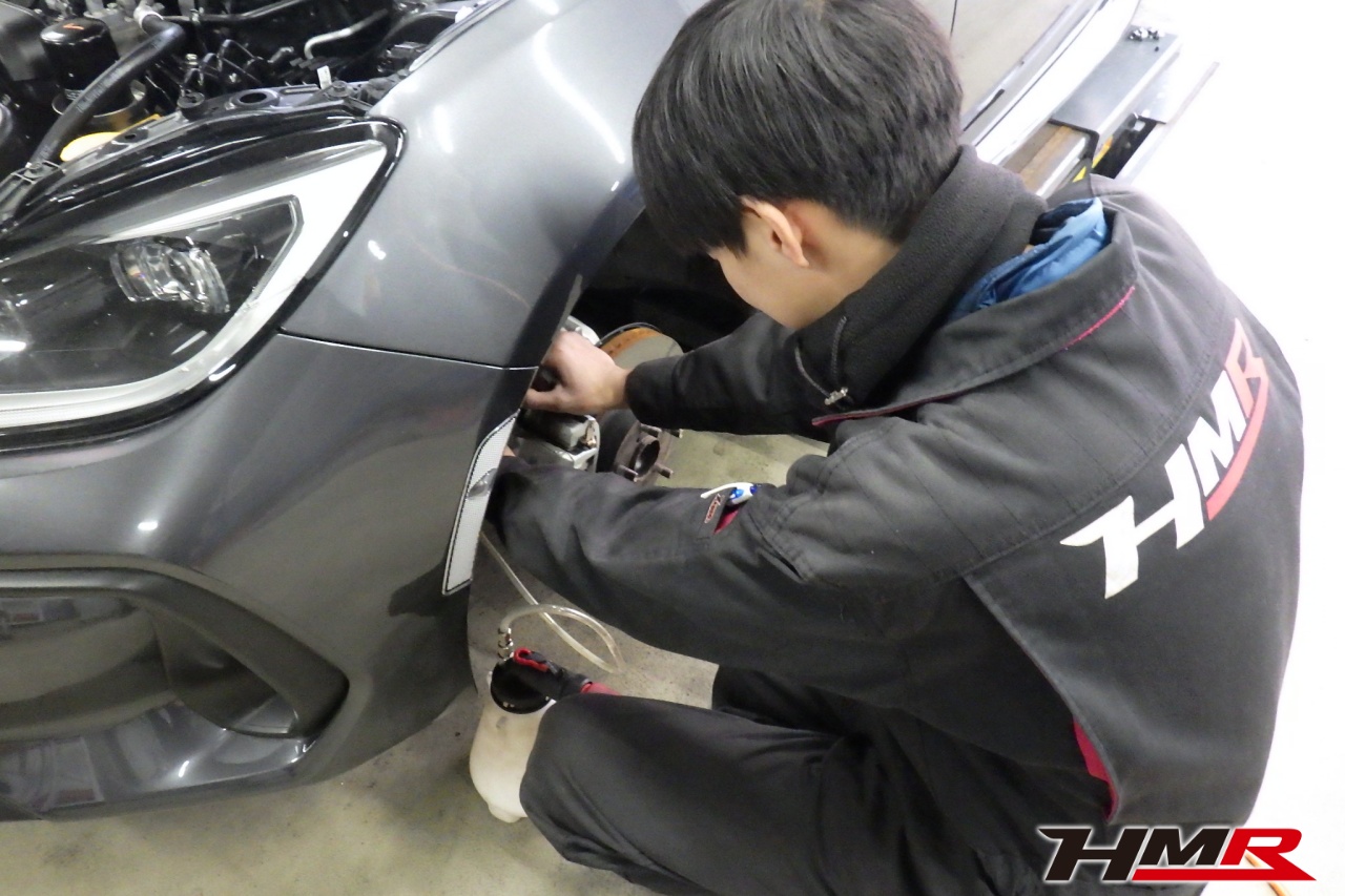 HMR(エイチエムアール)の秋山です。今回は1オーナー 6MT 純正17インチ ナビ装着のスバル BRZ2.4S(ZD8)の納車前点検整備を行いました。担当メカニックは手代木です。