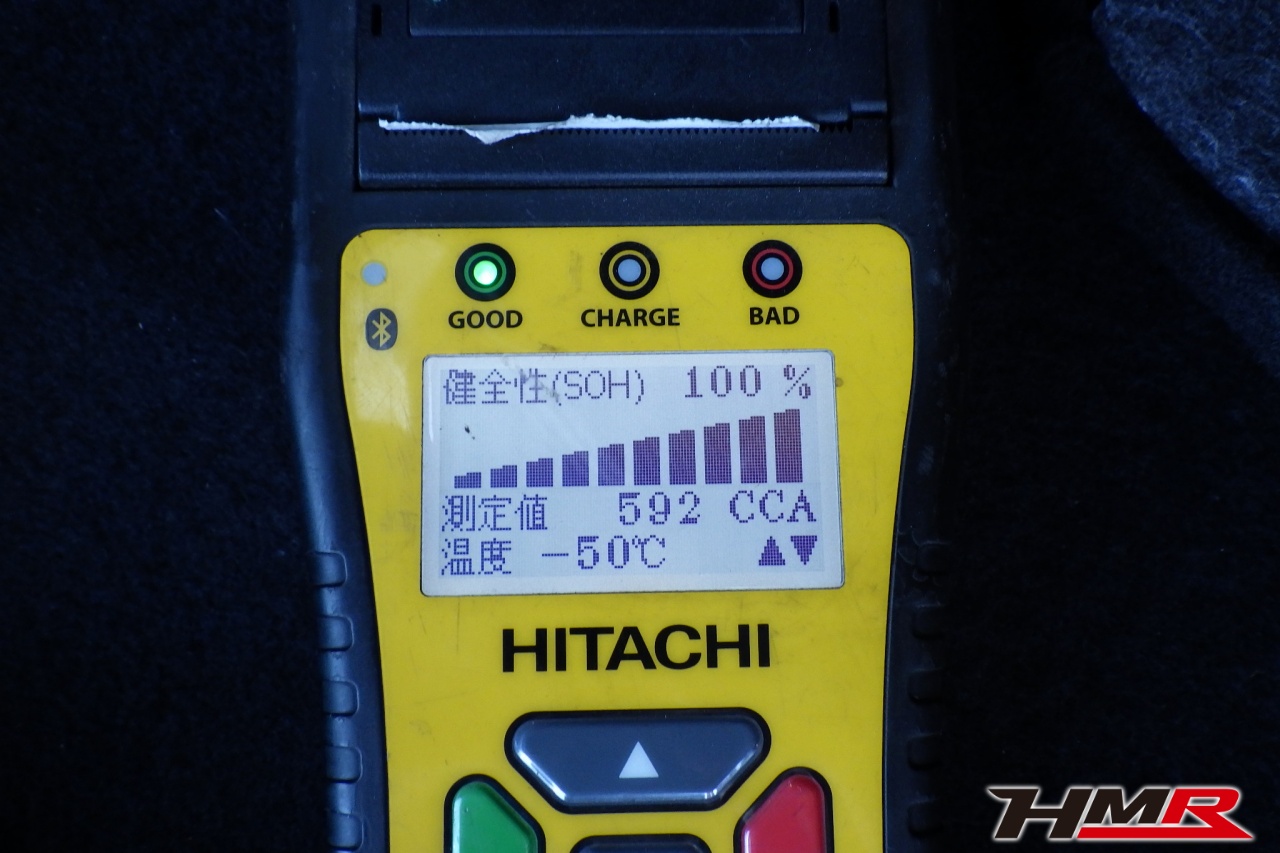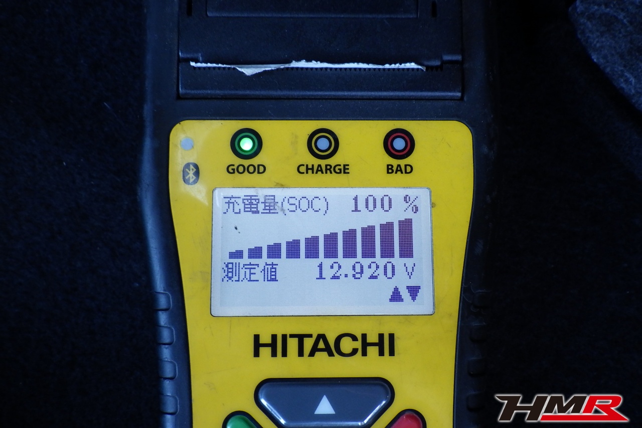 バッテリー、インテークホース、エアクリーナー、補機ベルト、プラグ、ブレーキ・クラッチマスターシリンダー、各部ゴム類の劣化、パッキン類・シール類からのオイル滲み・漏れ、ラジエターの劣化、冷却水漏れ、その他異音などをチェックしました。特に問題ありませんでした。