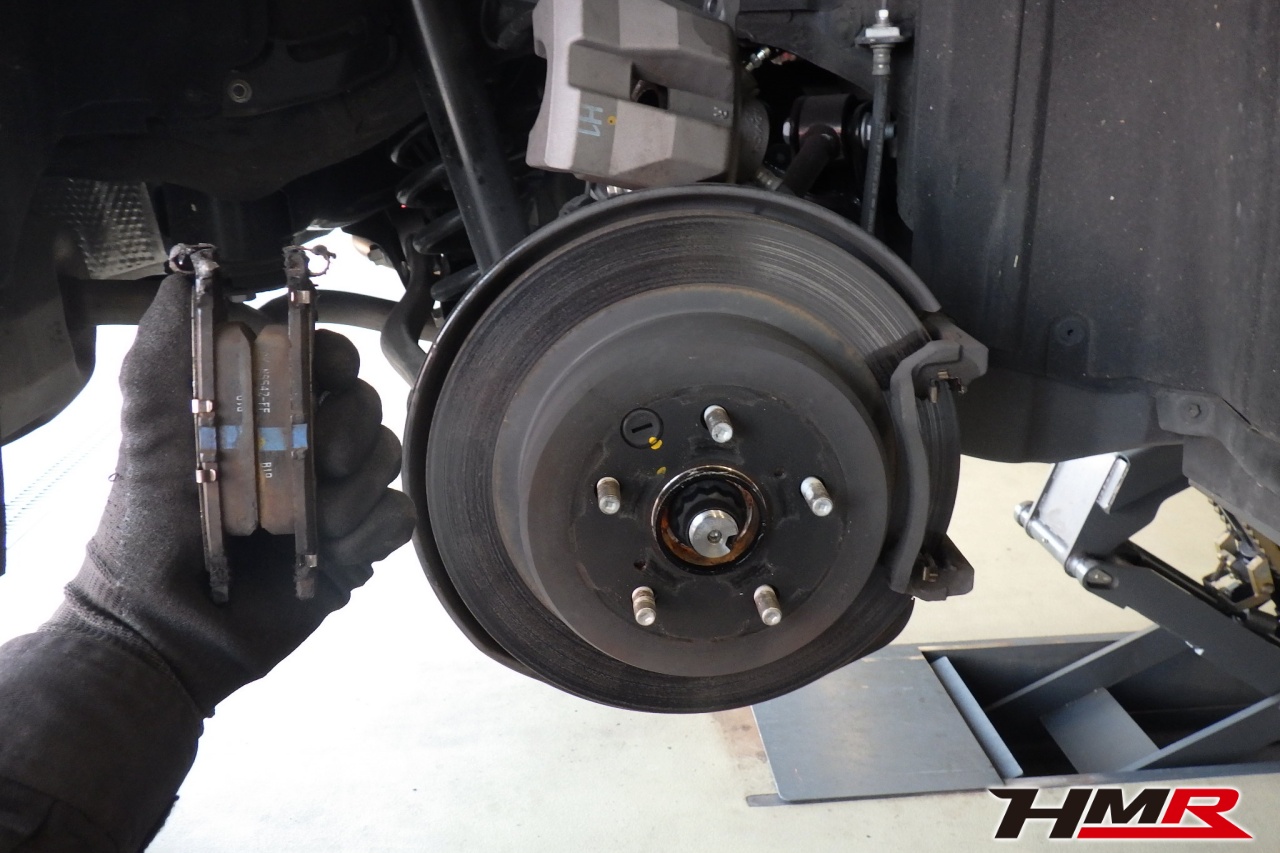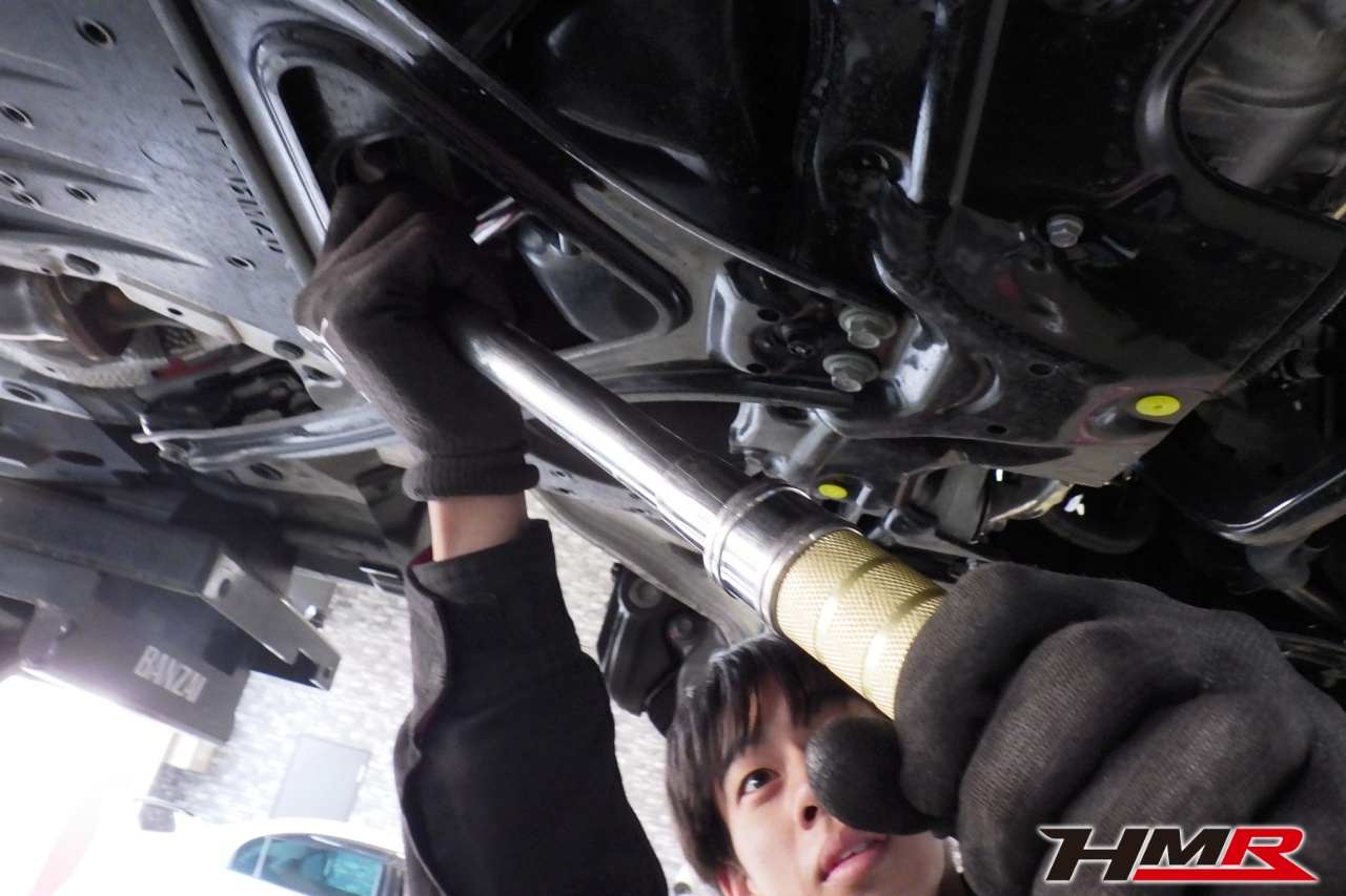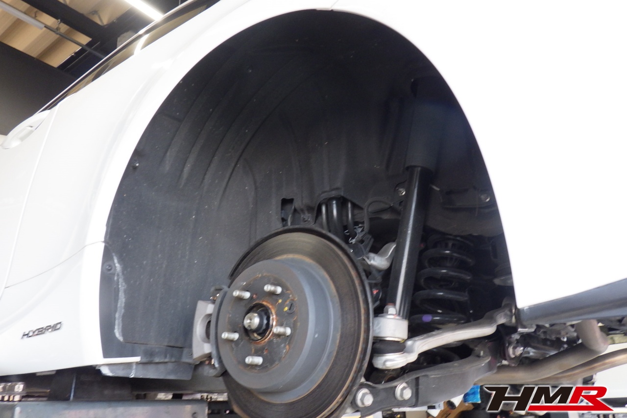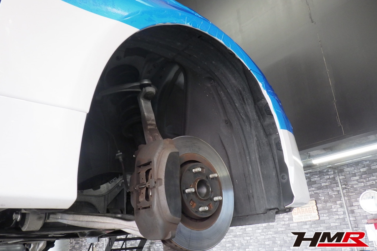 ハブベアリング・ボールジョイント、アーム・リンク類のガタ、ブッシュ・ブーツ類の劣化、エンジン・ミッション・デフからのオイル漏れと各マウント類、タイヤ溝の残量、空気圧の点検しました。特に問題ありませんでした。