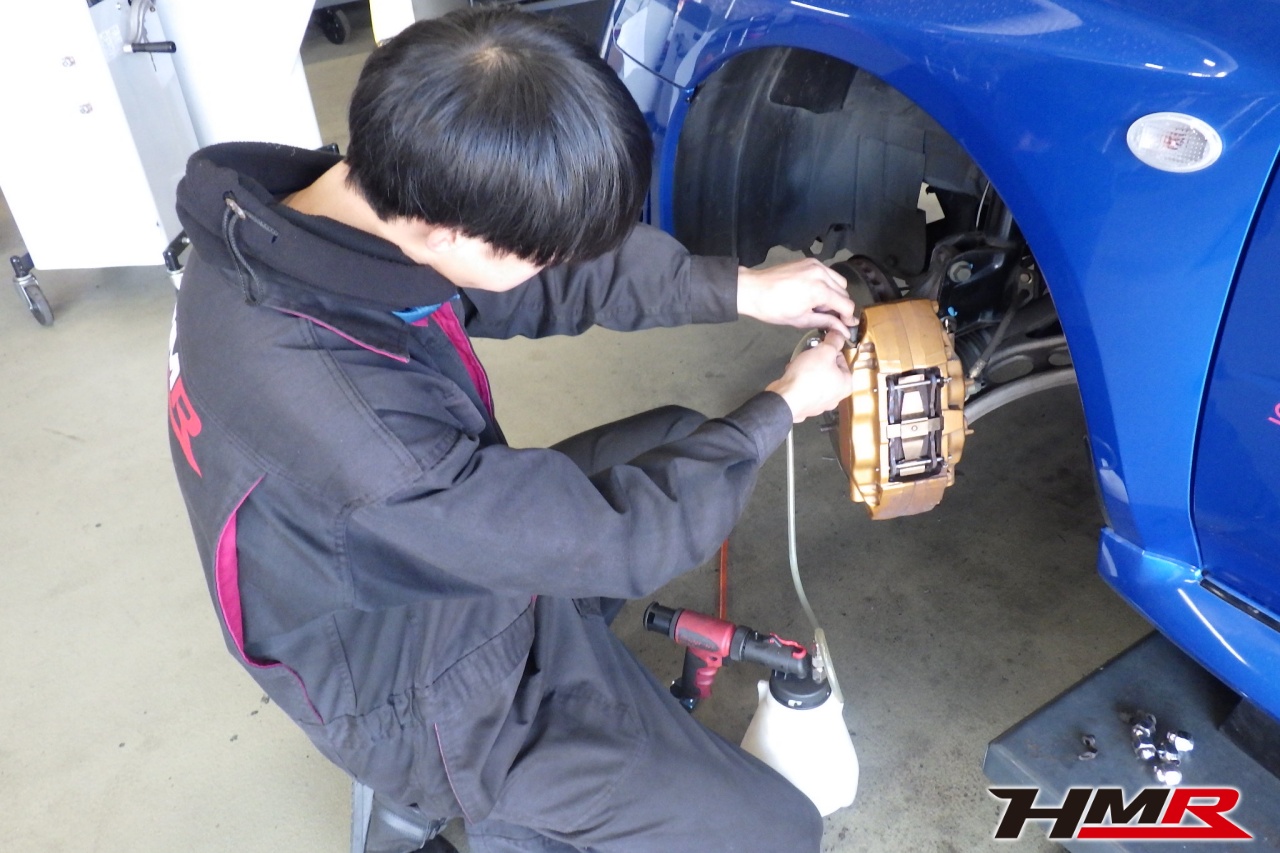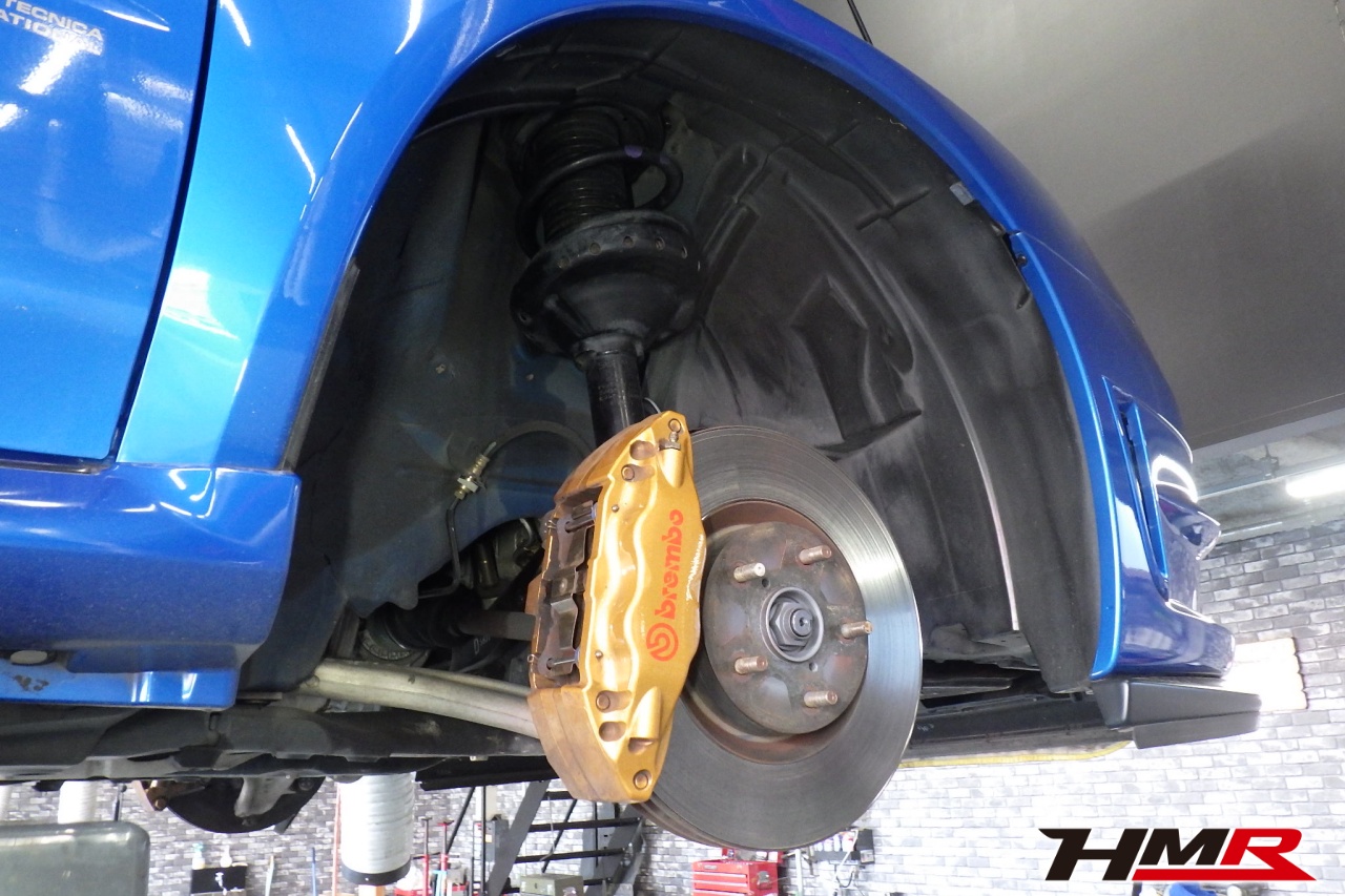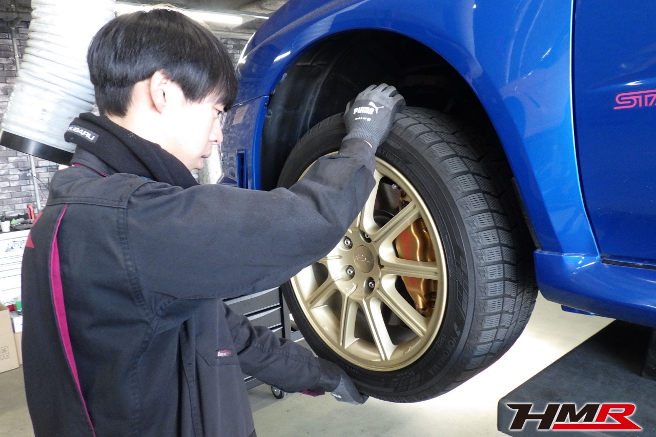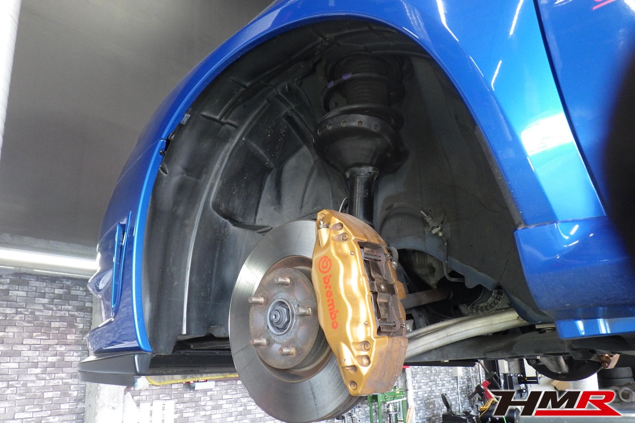 HMR(エイチエムアール)の秋山です。今回はSTIマフラー フロントスポイラー装備のインプレッサWRX STI (GDB)の納車前点検整備を行いました。担当メカニックは手代木です。