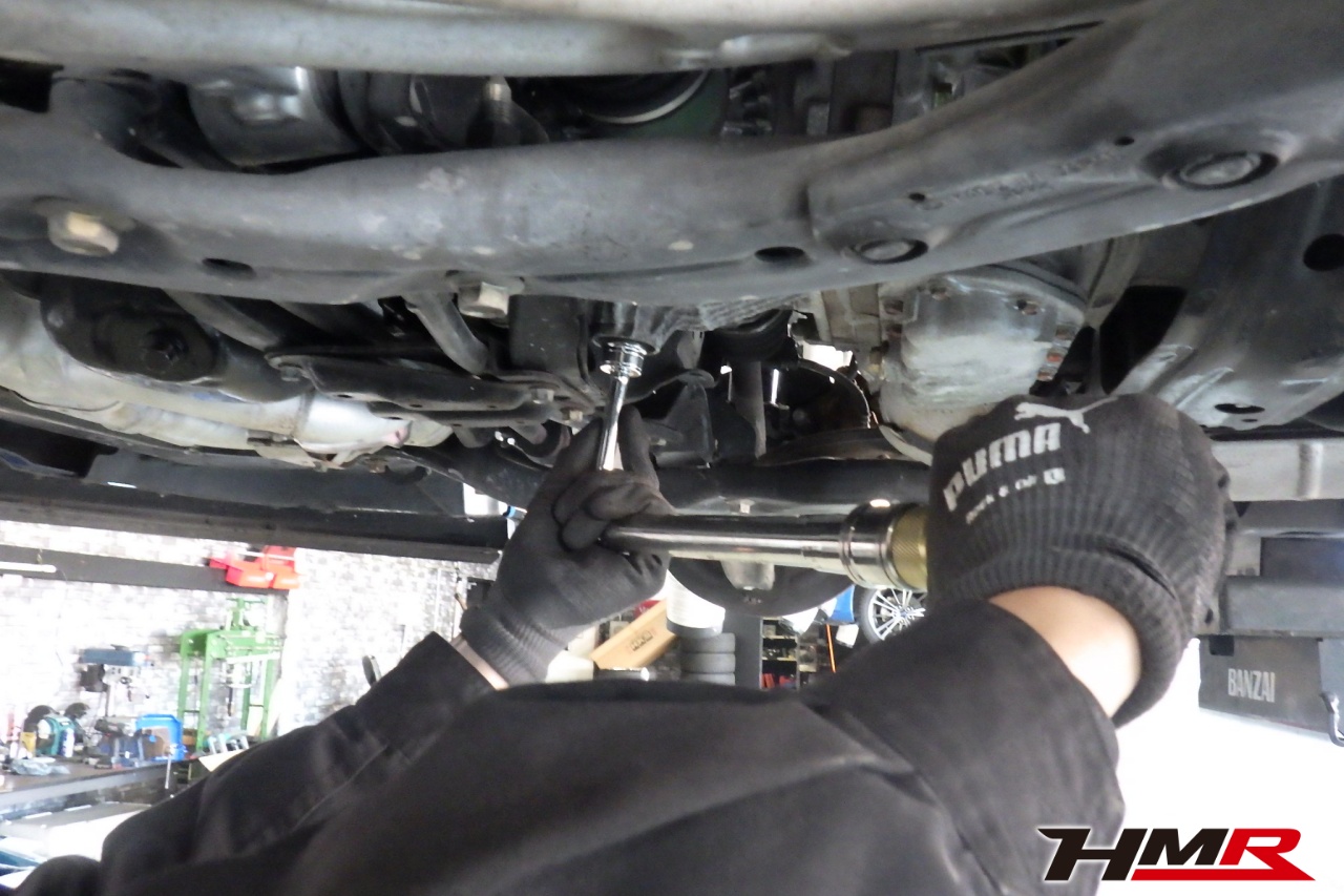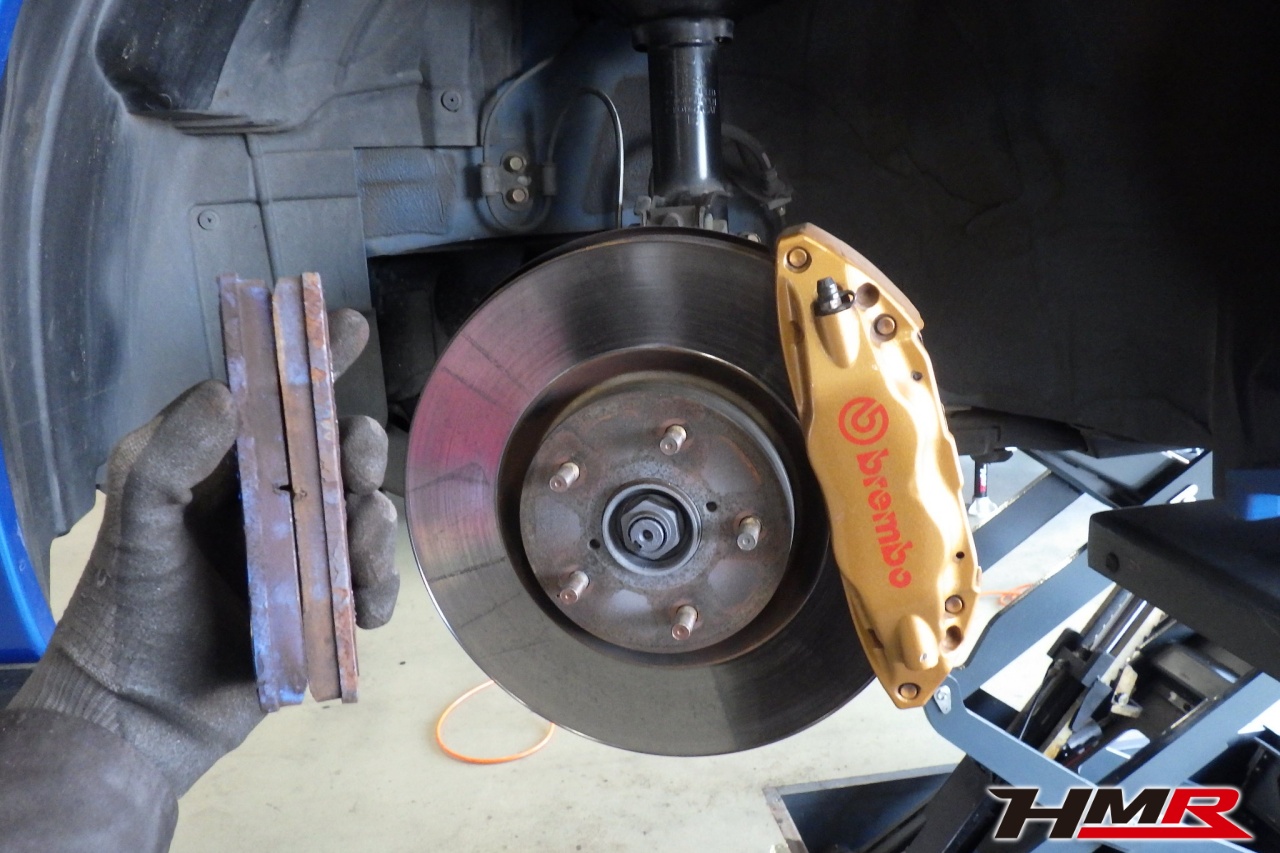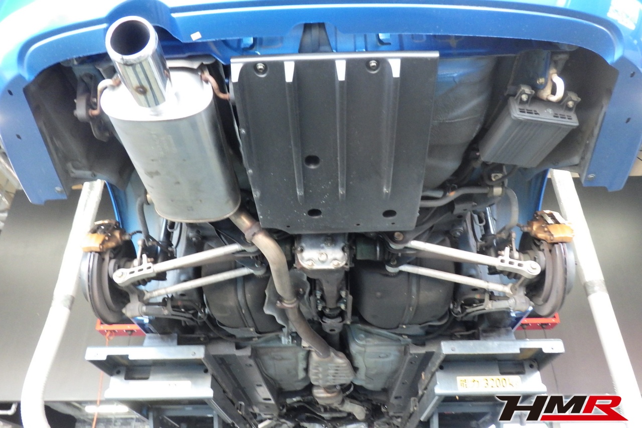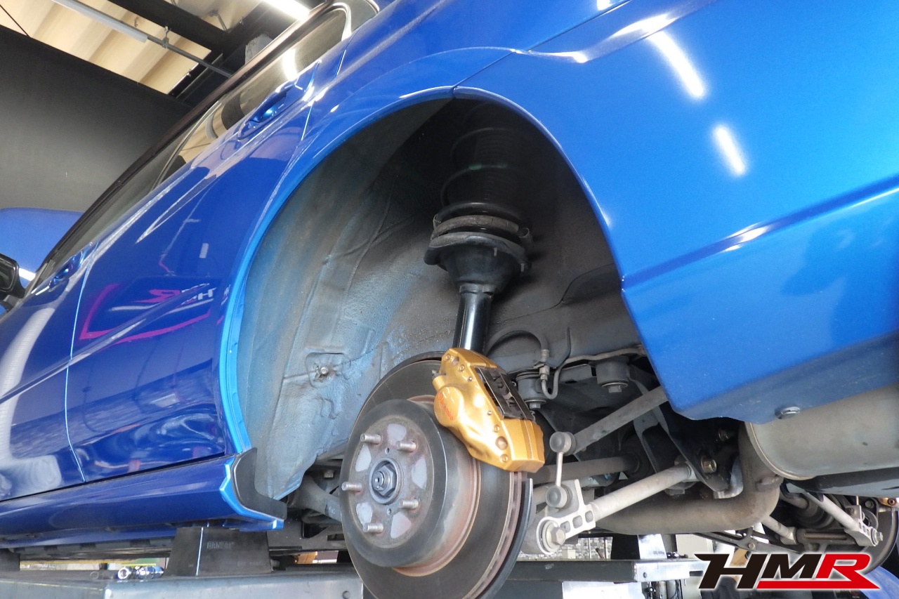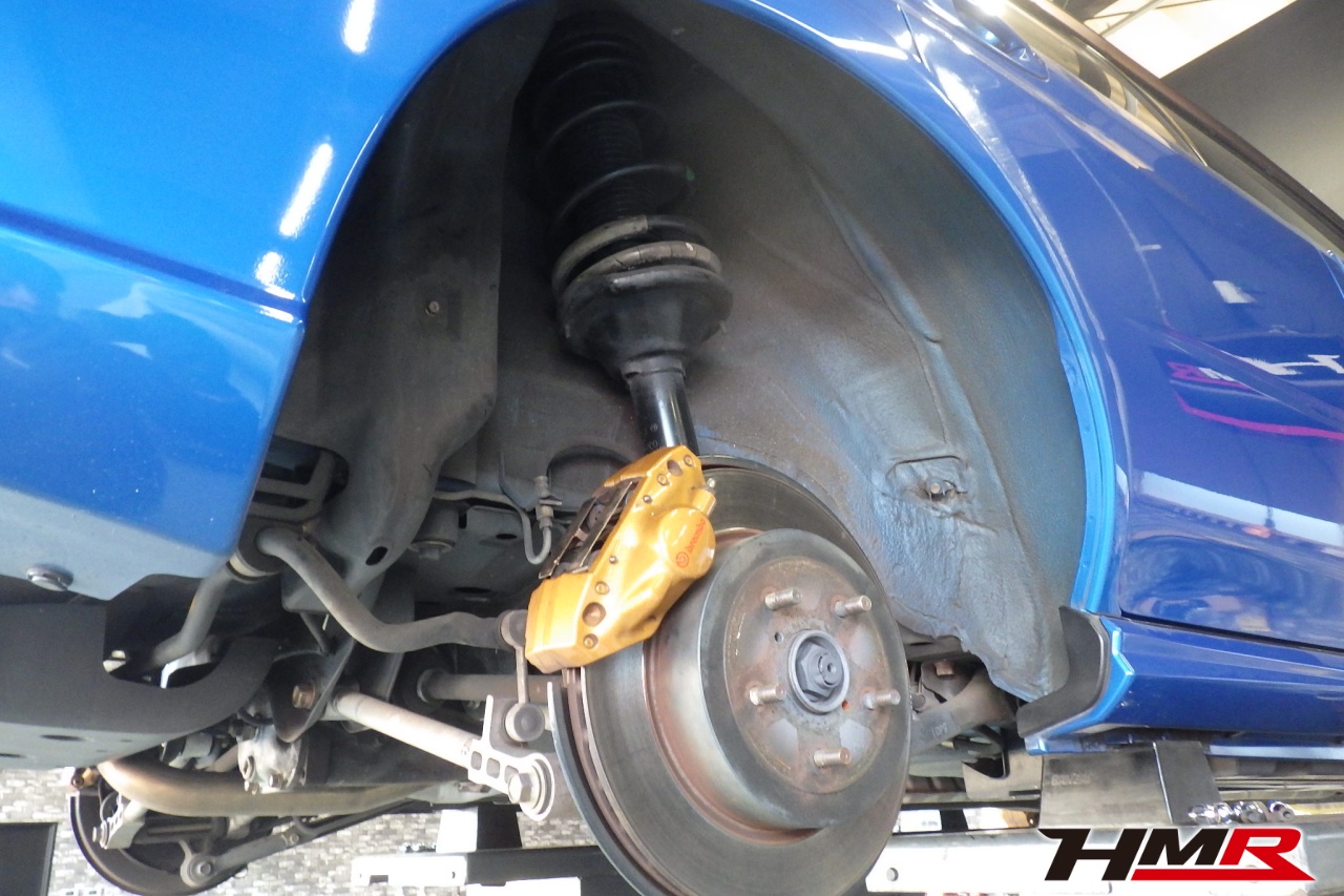 HMR(エイチエムアール)の秋山です。今回はSTIマフラー フロントスポイラー装備のインプレッサWRX STI (GDB)の納車前点検整備を行いました。担当メカニックは手代木です。