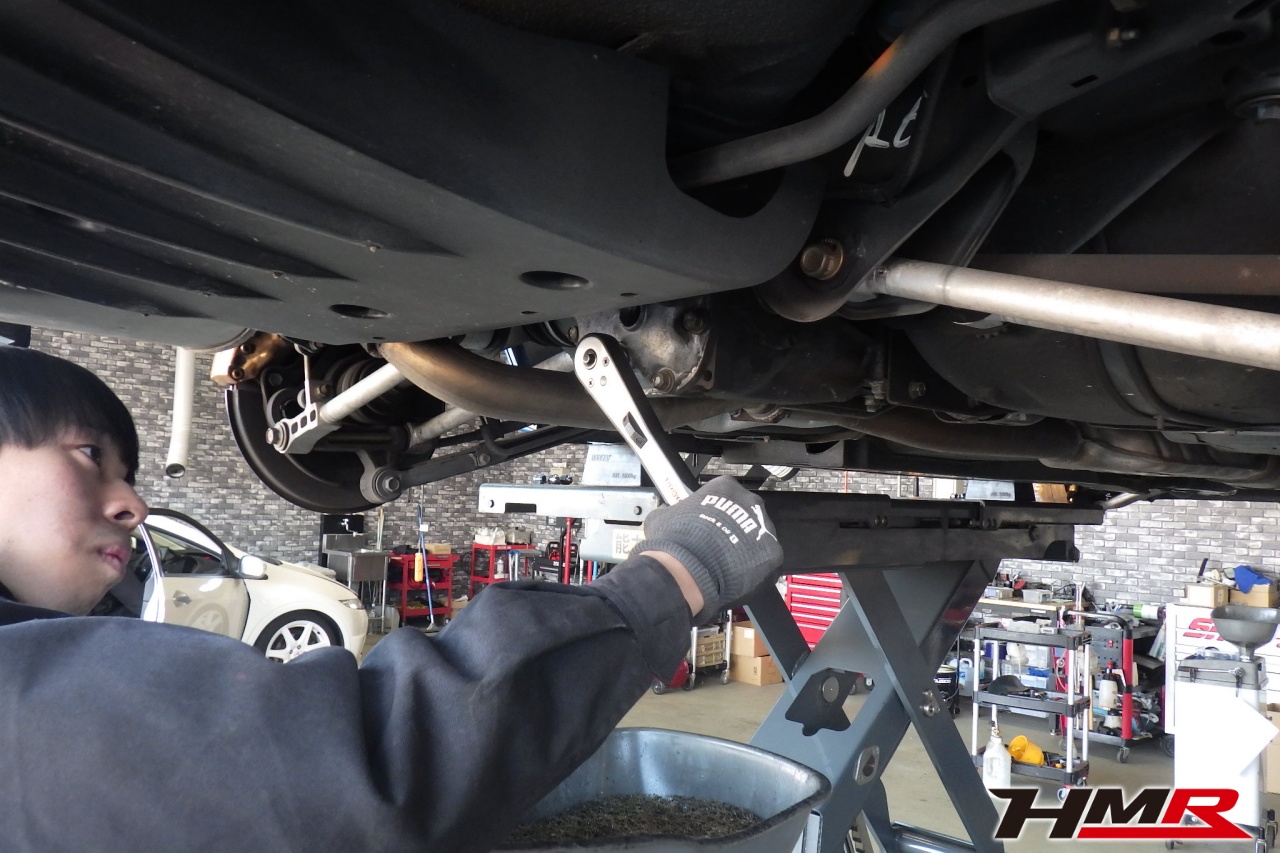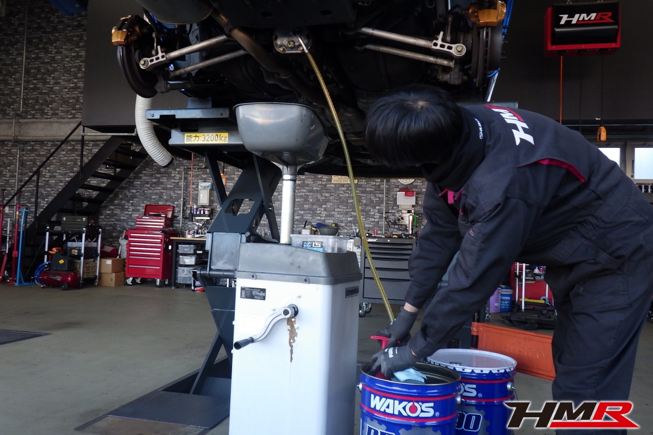 エンジンオイル、オイルフィルター、オイルフィルターセンターボルト、ミッションオイル、リアデフオイル、ブレーキフルード、冷却水を交換しました。エンジンオイルはWAKO’SプロステージS 0W-30、リアデフオイルはWAKO’S ギアオイルMG-90に交換しています。