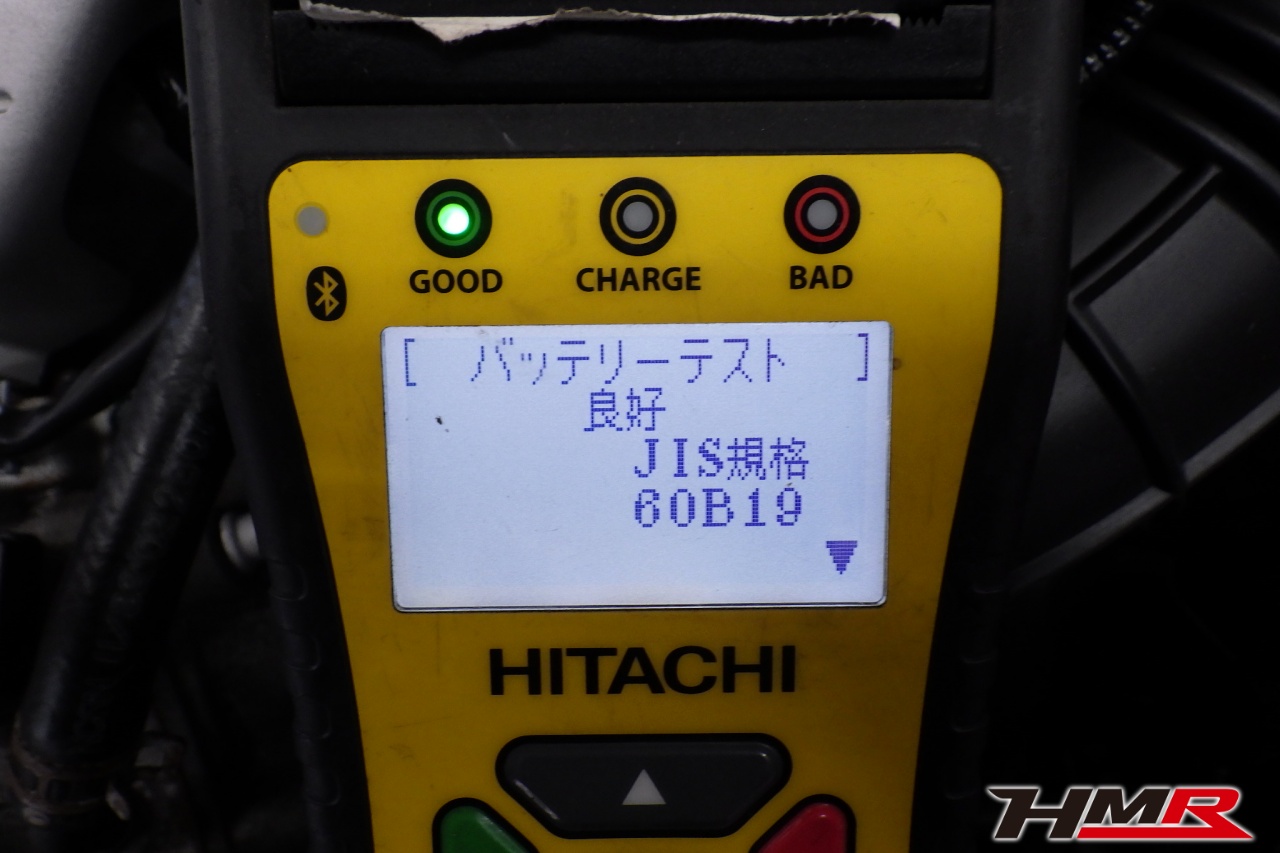 バッテリー、インテークホース、エアクリーナー、補機ベルト、プラグ、ブレーキ・クラッチマスターシリンダー、各部ゴム類の劣化、パッキン類・シール類からのオイル滲み・漏れ、ラジエターの劣化、冷却水漏れ、その他異音などをチェックしました。