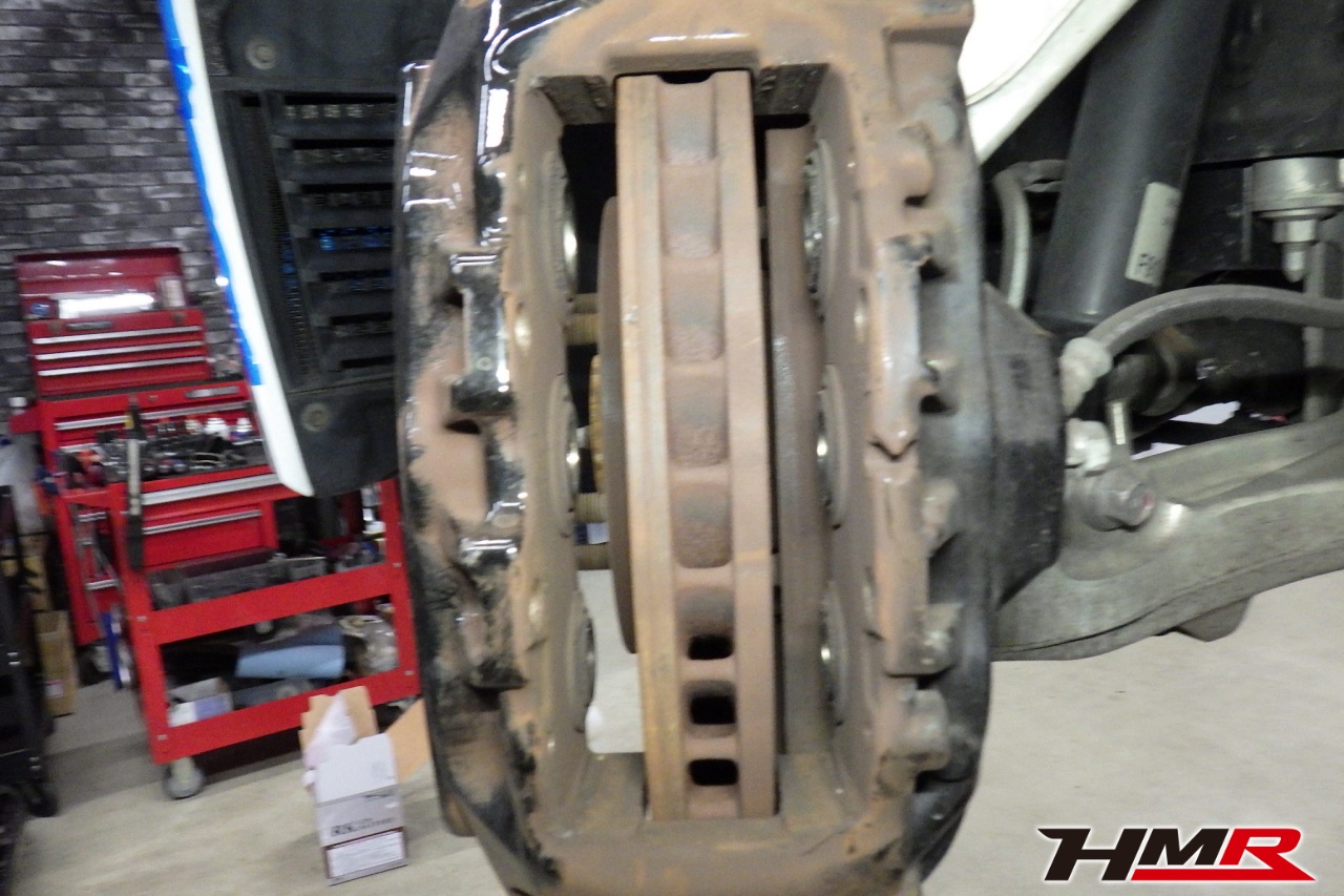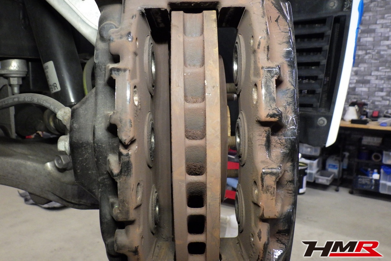 ブレーキキャリパーシール・キャリパーピストン、パッドの残量、ブレーキホースの劣化、ブレーキディスクローターの摩耗をチェックしました。特に問題ありませんでした。パッド残量はフロント8.6mm・リア7.5mmでした。