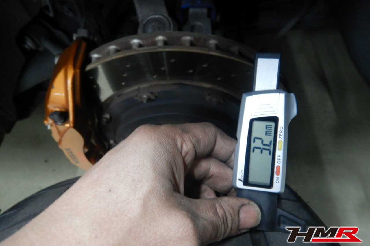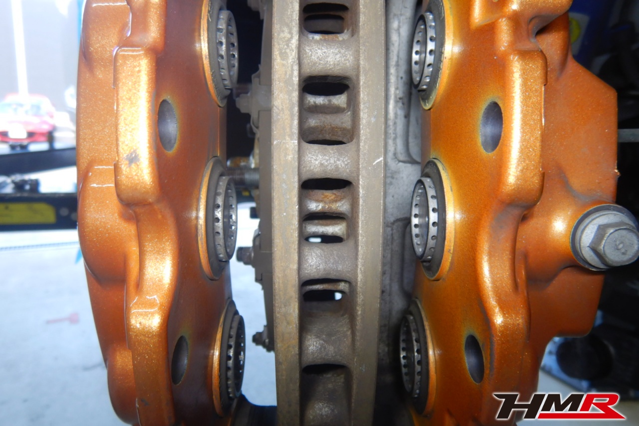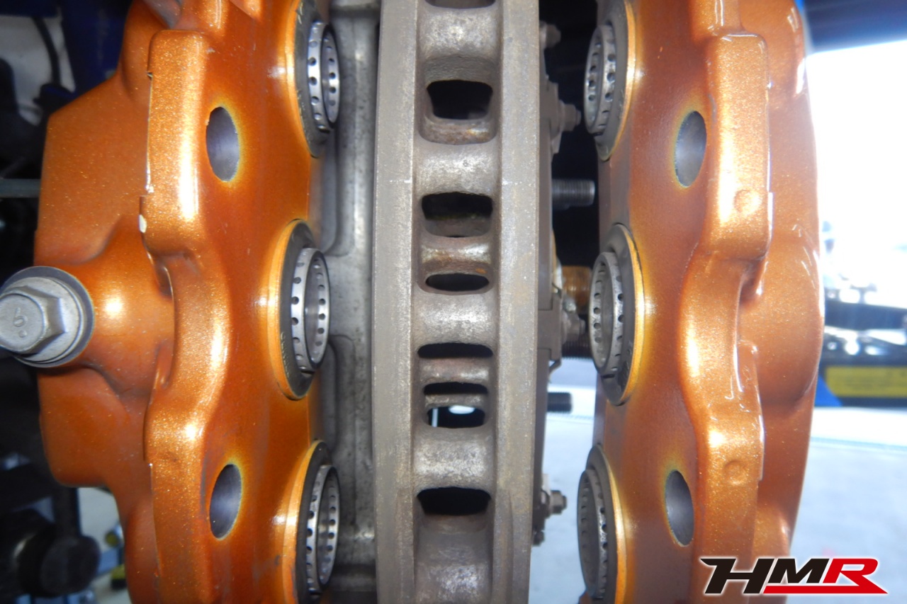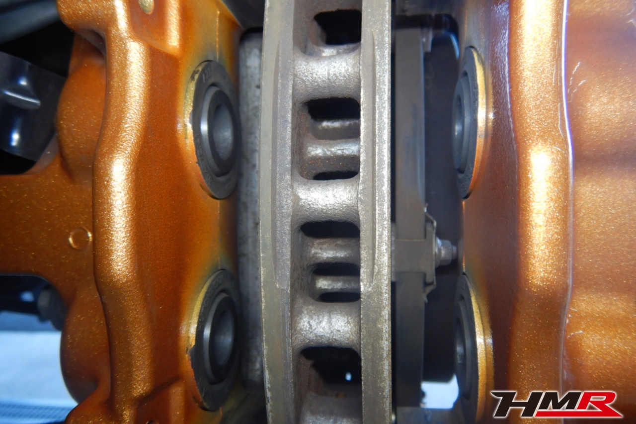 ブレーキキャリパーシール・キャリパーピストン、パッドの残量、ブレーキホースの劣化、ブレーキディスクローターの摩耗をチェックしました。特に問題ありませんでした。パッドの残量はおおよそフロント8.7mm・リア10.5mmでした。