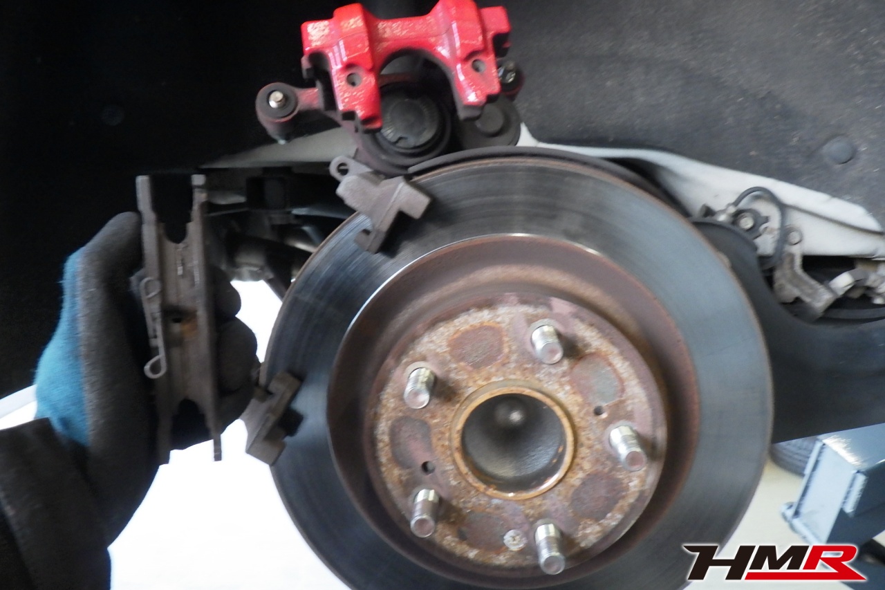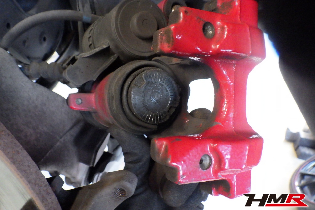 ブレーキキャリパーシール・キャリパーピストン、パッドの残量、ブレーキホースの劣化、ブレーキディスクローターの摩耗をチェックしました。リア左側ブレーキダストブーツが切れていましたので交換しました。