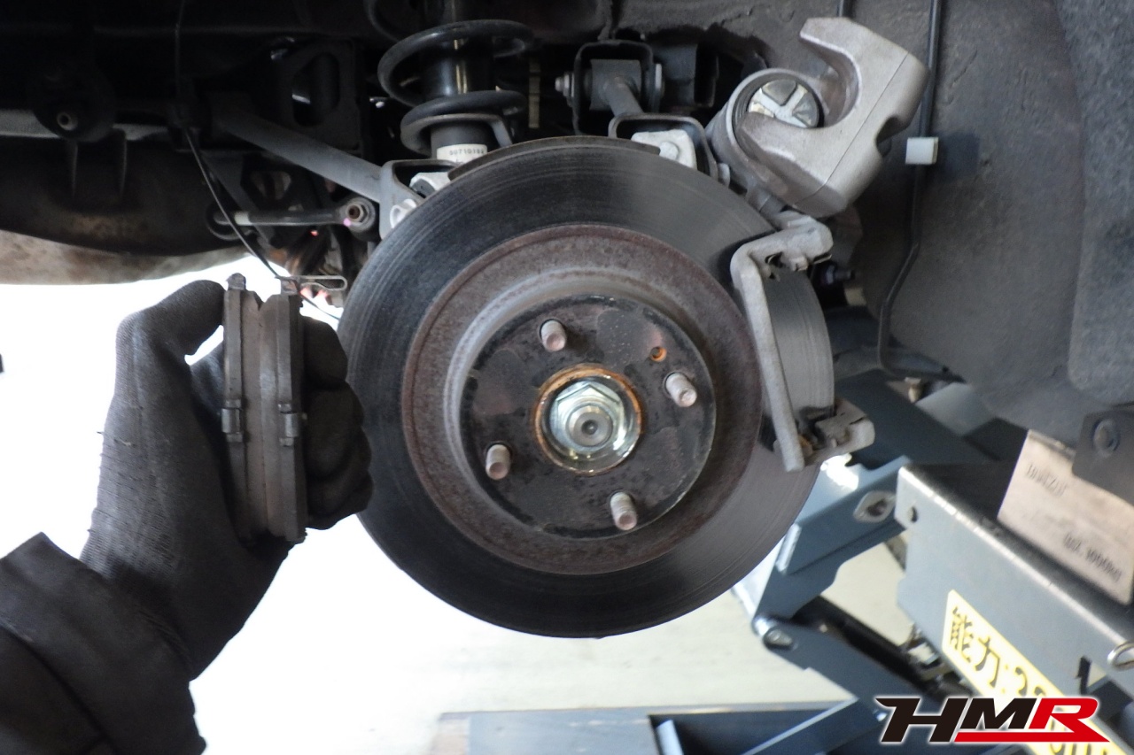 ブレーキキャリパーシール・キャリパーピストン、パッドの残量、ブレーキホースの劣化、ブレーキディスクローターの摩耗をチェックしました。パッドの残量はおおよそフロント3.9mm・リア5.6mmでした。