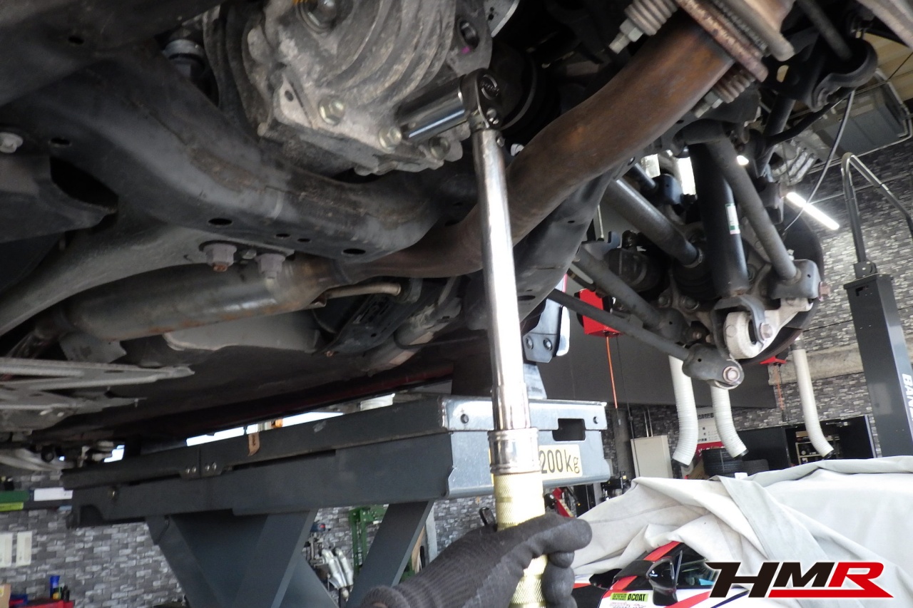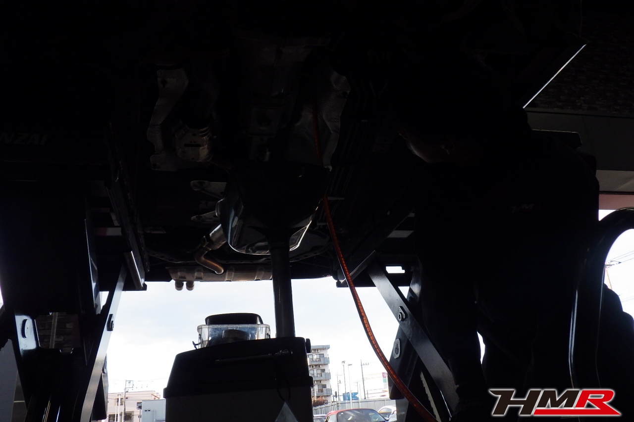 ハブベアリング・ボールジョイント、アーム・リンク類のガタ、ブッシュ・ブーツ類の劣化、エンジン・ミッション・デフからのオイル漏れと各マウント類、タイヤ溝の残量、空気圧の点検しました。特に問題ありませんでした。