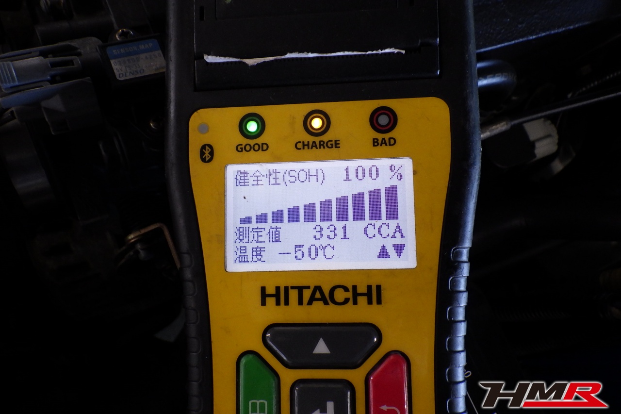 バッテリー、インテークホース、エアクリーナー、補機ベルト、プラグ、ブレーキ・クラッチマスターシリンダー、各部ゴム類の劣化、パッキン類・シール類からのオイル滲み・漏れ、ラジエターの劣化、冷却水漏れ、その他異音などをチェックしました。バッテリーが弱っていましたので充電しました。