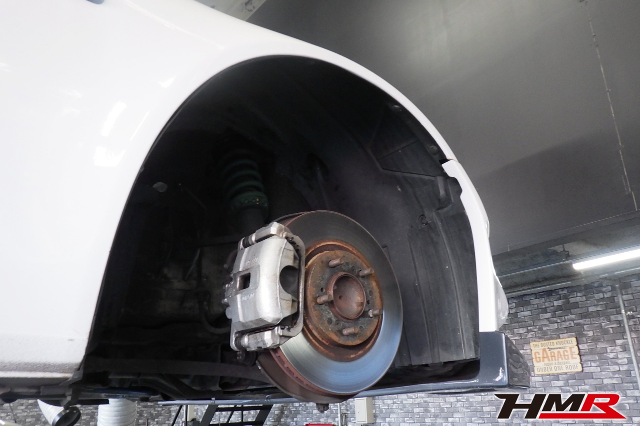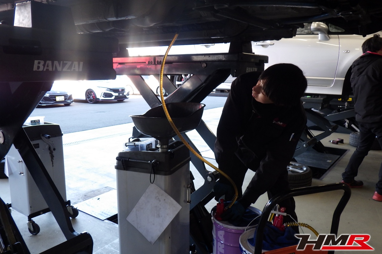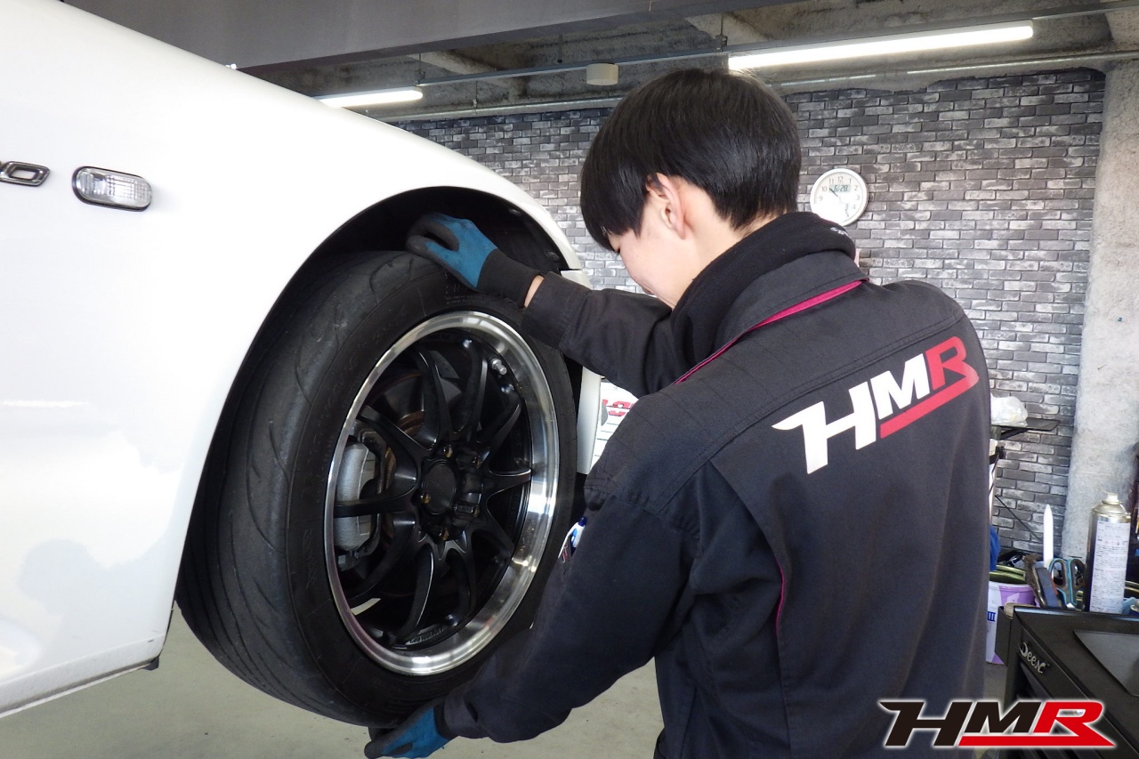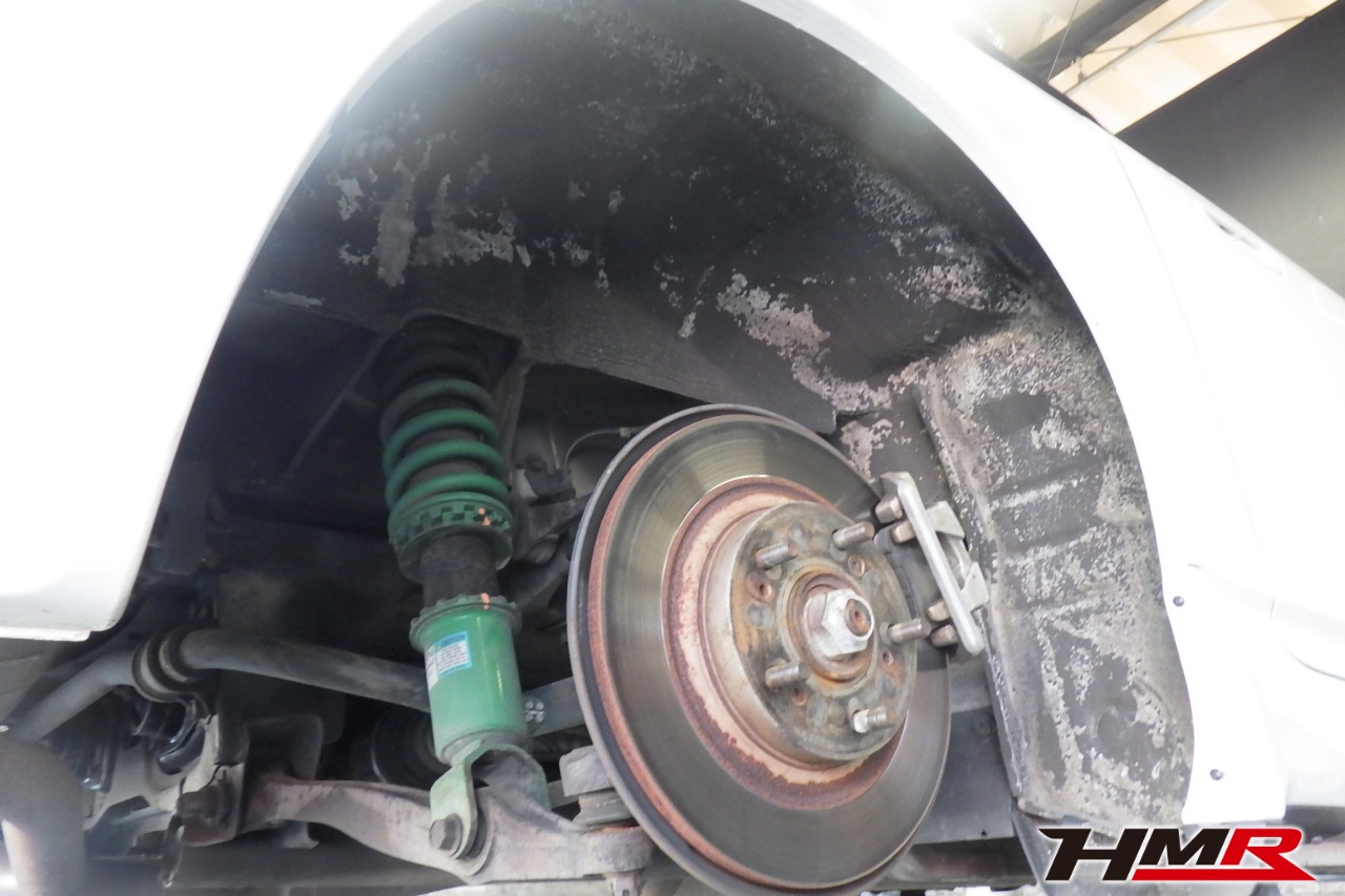 ハブベアリング・ボールジョイント、アーム・リンク類のガタ、ブッシュ・ブーツ類の劣化、エンジン・ミッション・デフからのオイル漏れと各マウント類、タイヤ溝の残量、空気圧の点検しました。