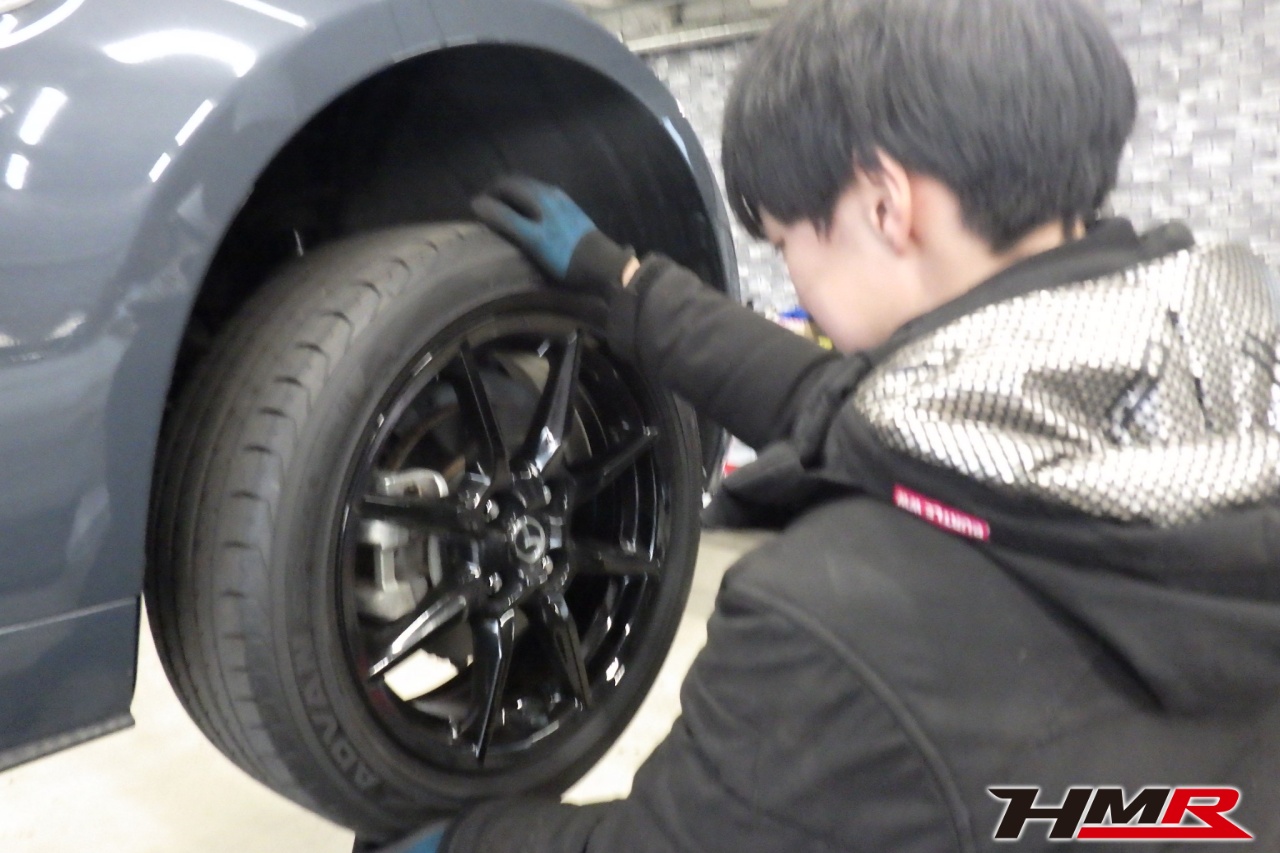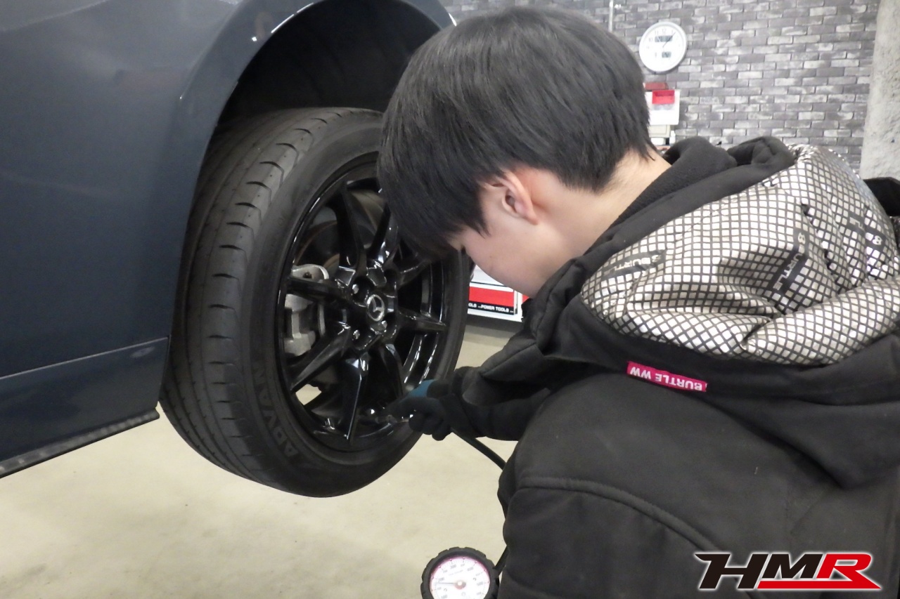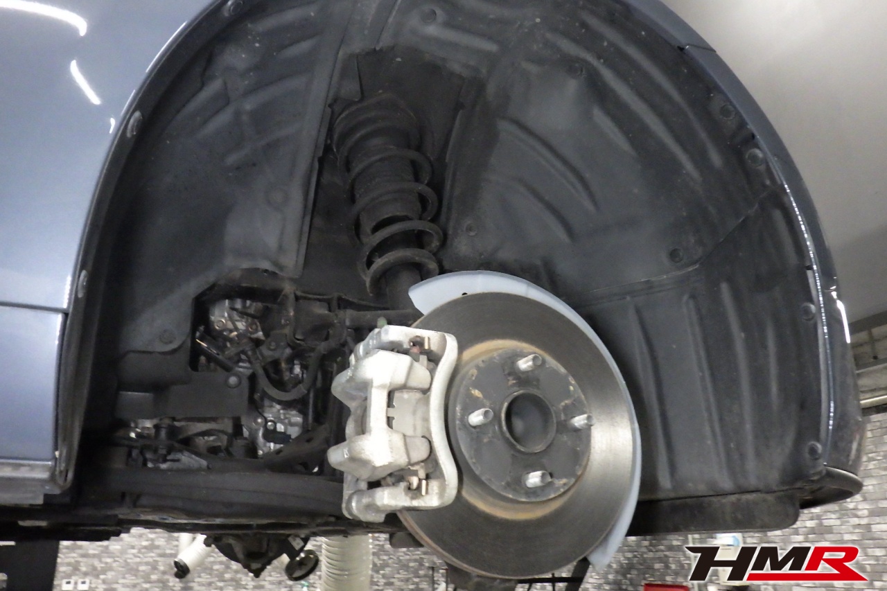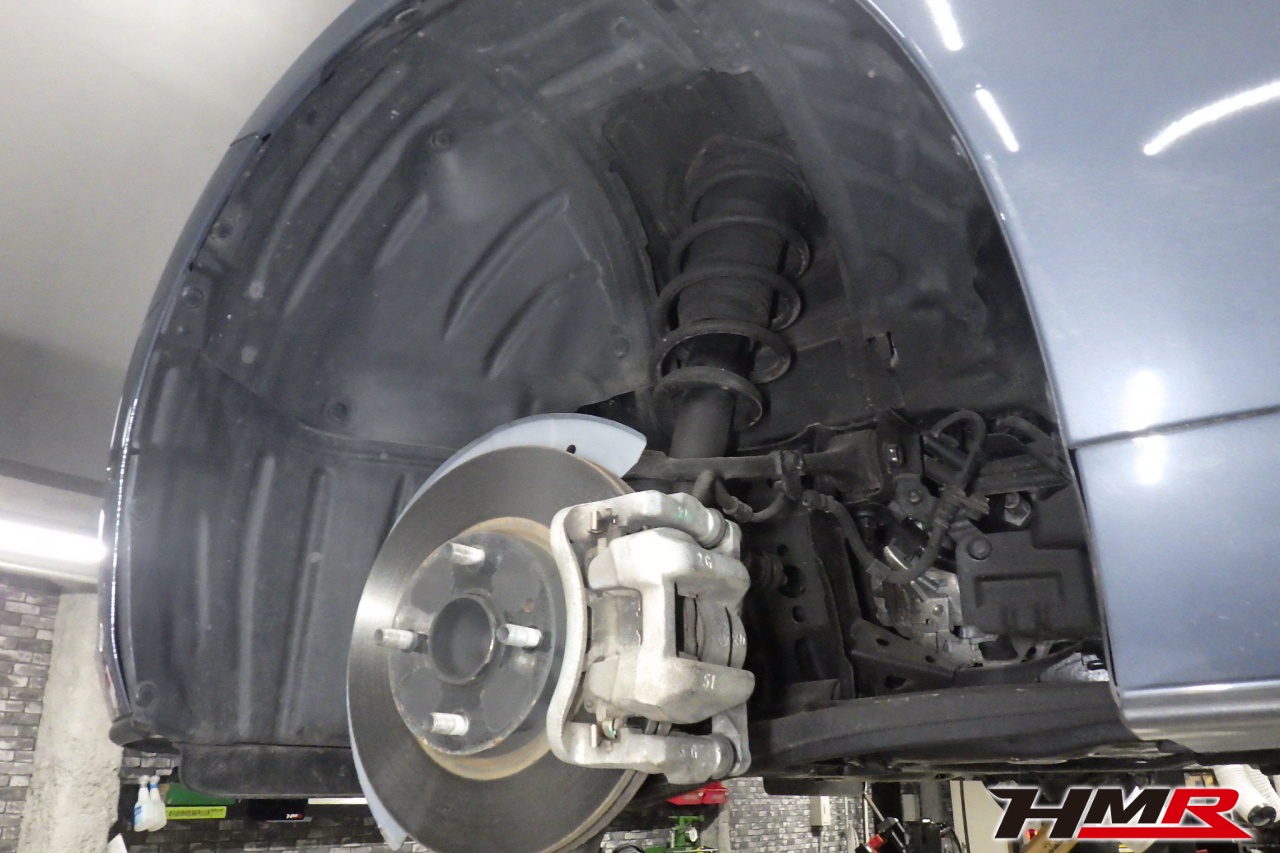 ハブベアリング・ボールジョイント、アーム・リンク類のガタ、ブッシュ・ブーツ類の劣化、エンジン・ミッション・デフからのオイル漏れと各マウント類、タイヤ溝の残量、空気圧の点検しました。特に問題ありませんでした。