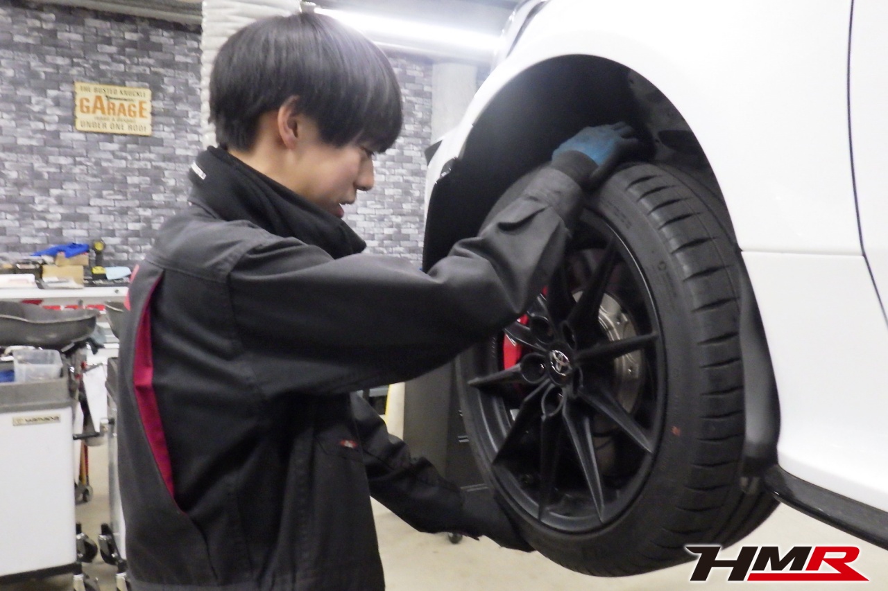 HMR(エイチエムアール)の秋山です。今回は 1オーナー TOM’sリアウィング装備のGRヤリスの納車前点検整備を行いました。担当メカニックは手代木です。