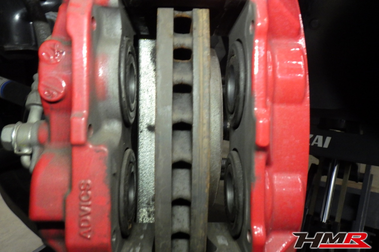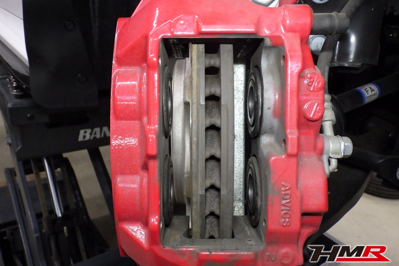 ブレーキキャリパーシール・キャリパーピストン、パッドの残量、ブレーキホースの劣化、ブレーキディスクローターの摩耗をチェックしました。パッドの残量はおおよそフロント7.7mm・リア8.8mmでした。